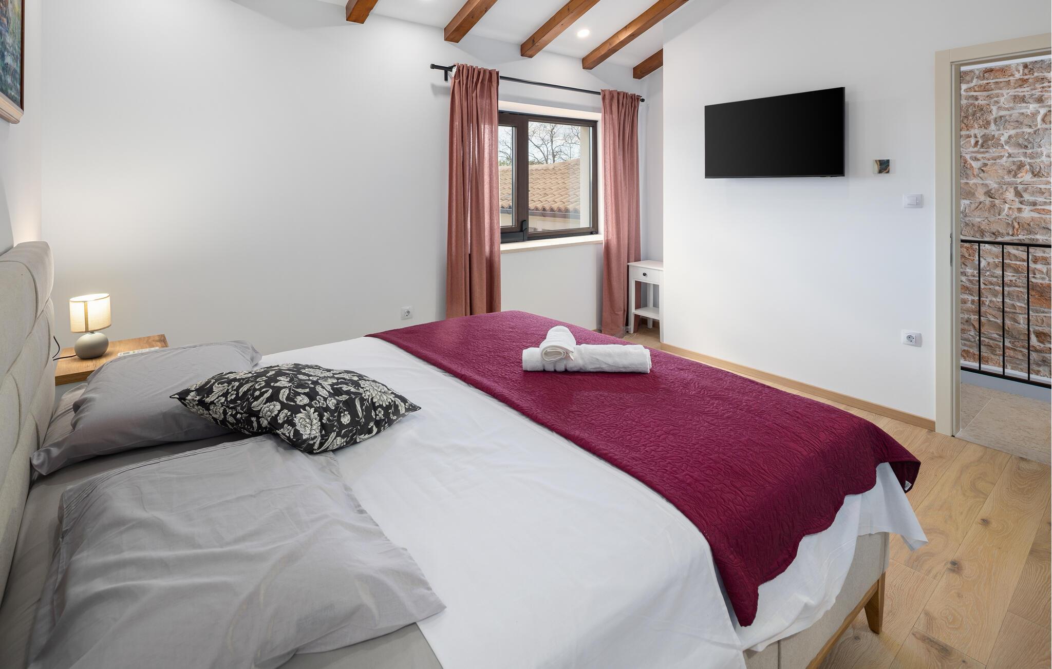 Bale, ein charmantes Dorf nahe Rovinj, bietet Ihnen Ruhe und authentisches Istrien-Flair. Schlendern Sie durch die schmalen Gassen mit historischen Gebäuden oder besuchen Sie die Strände der Adria, die nur eine kurze Autofahrt entfernt sind. Für Kulturfreunde bietet Rovinj beeindruckende Sehenswürdigkeiten wie die Basilika der Heiligen Euphemia, während Naturliebhaber den Limski-Kanal und die unberührten Landschaften Istriens erkunden können.