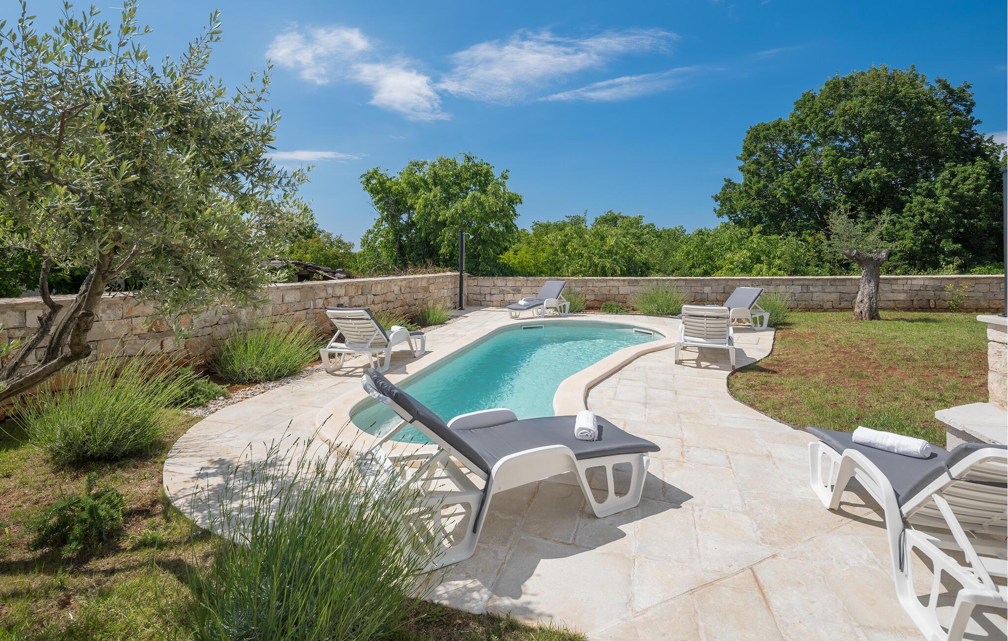 Erleben Sie mediterranen Charme und Entspannung in diesem einladenden Ferienhaus mit Pool.