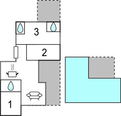 Badezimmer 7m2 (nr. 1) - WC. Warmes und kaltes Wasser. Dusche