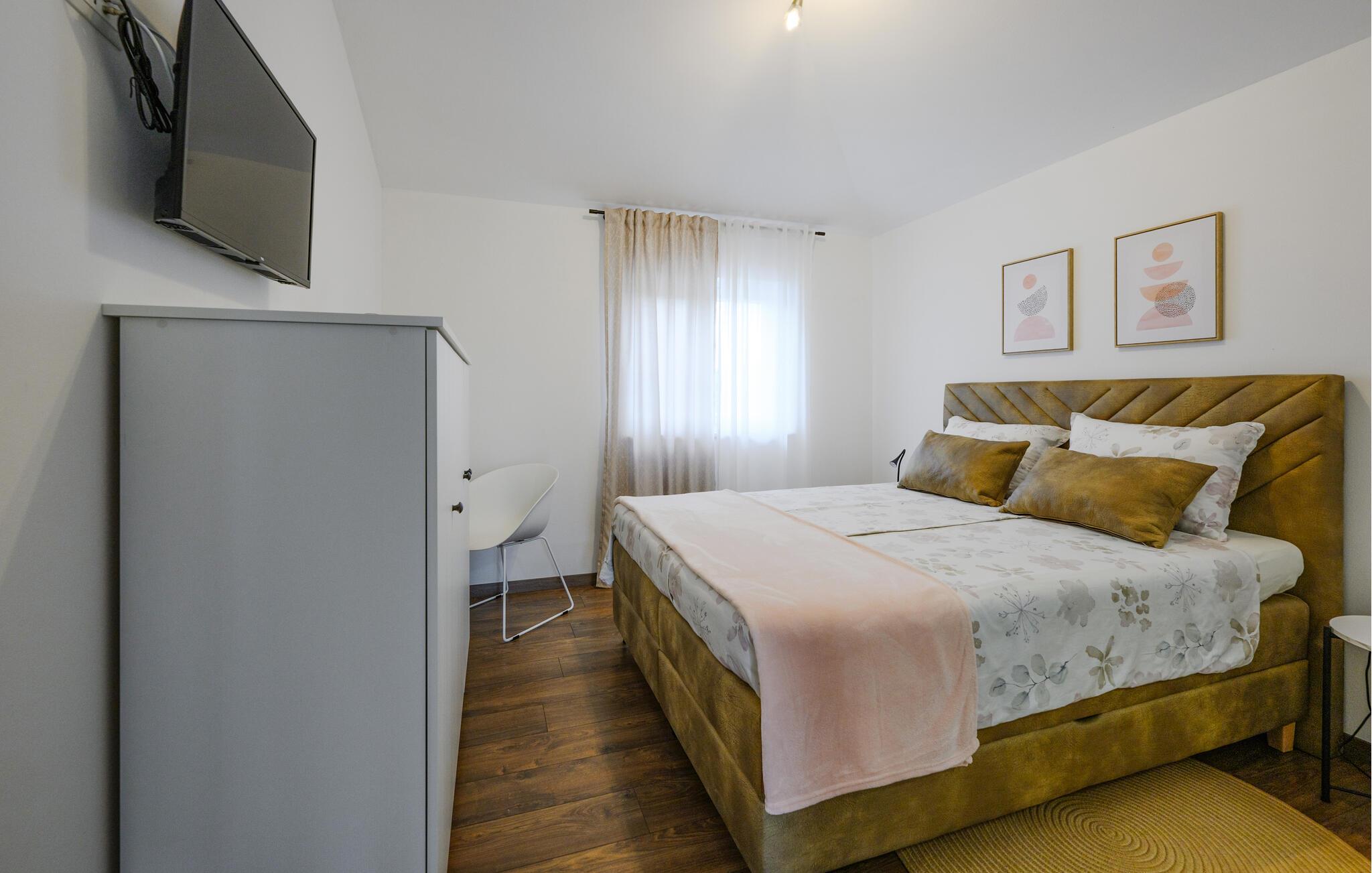 Erkunden Sie den nahegelegenen Limski-Fjord mit seinen beeindruckenden Felsformationen und kristallklarem Wasser. Die malerische Stadt Rovinj mit ihren verwinkelten Gassen und historischen Bauwerken ist ebenfalls nicht weit entfernt. Unternehmen Sie Wanderungen oder Fahrradtouren durch die wunderschöne istrische Landschaft oder besuchen Sie die örtlichen Weingüter und probieren Sie die regionalen Spezialitäten.