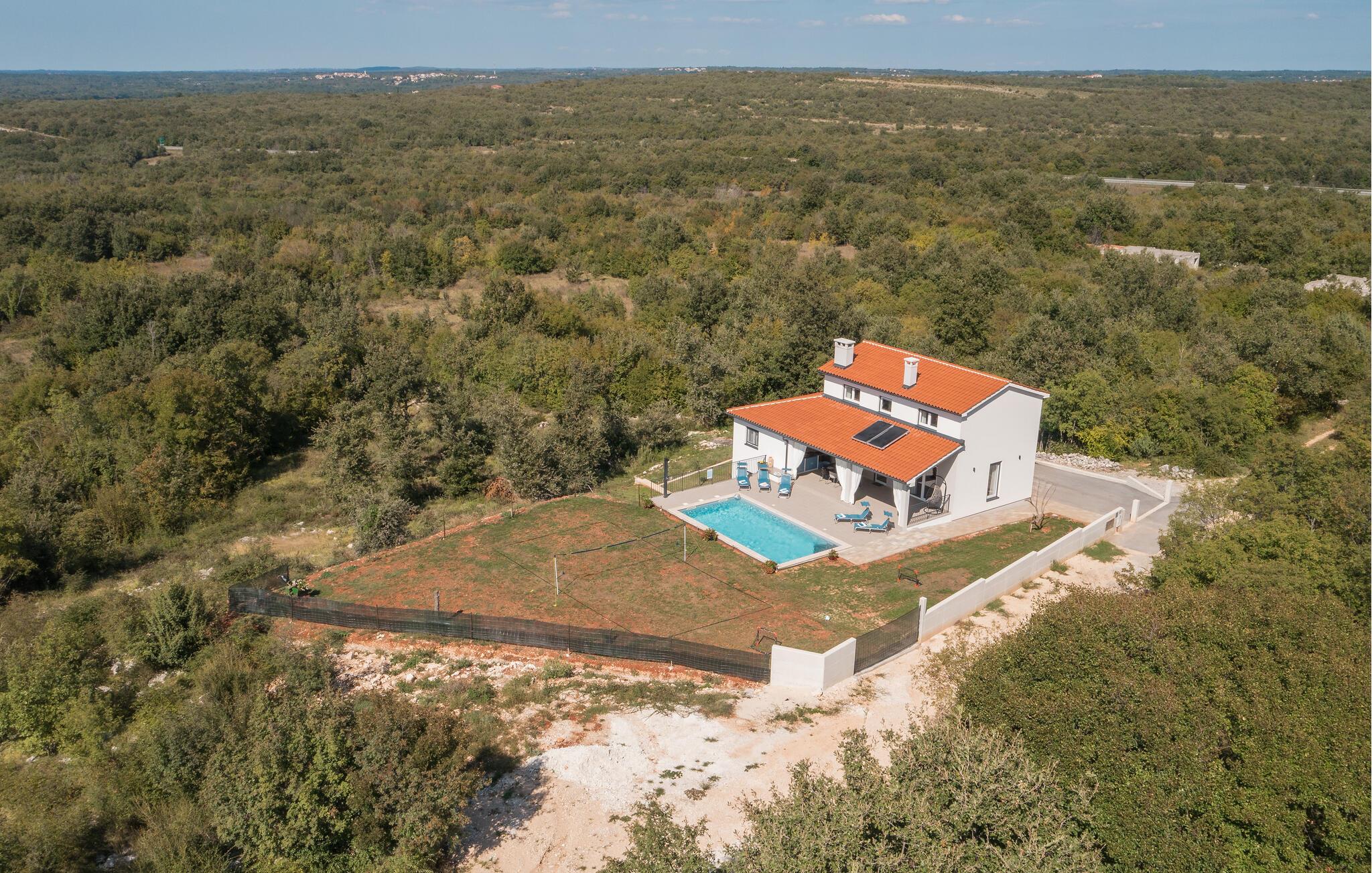Treten Sie hinaus auf die Veranda mit Sommerküche, die ideal ist für Ihre geselligen Abende im Freien. Im grünen Garten mit Pool können Sie die Sonne genießen, im Wasser spielen und sich in der ruhigen Umgebung erholen.