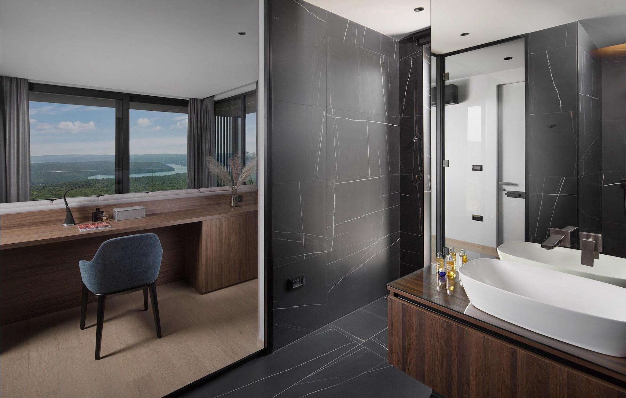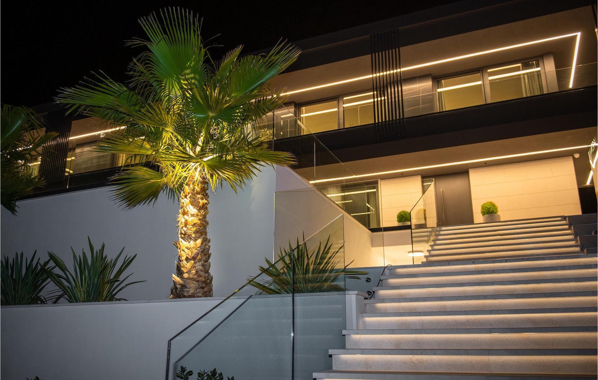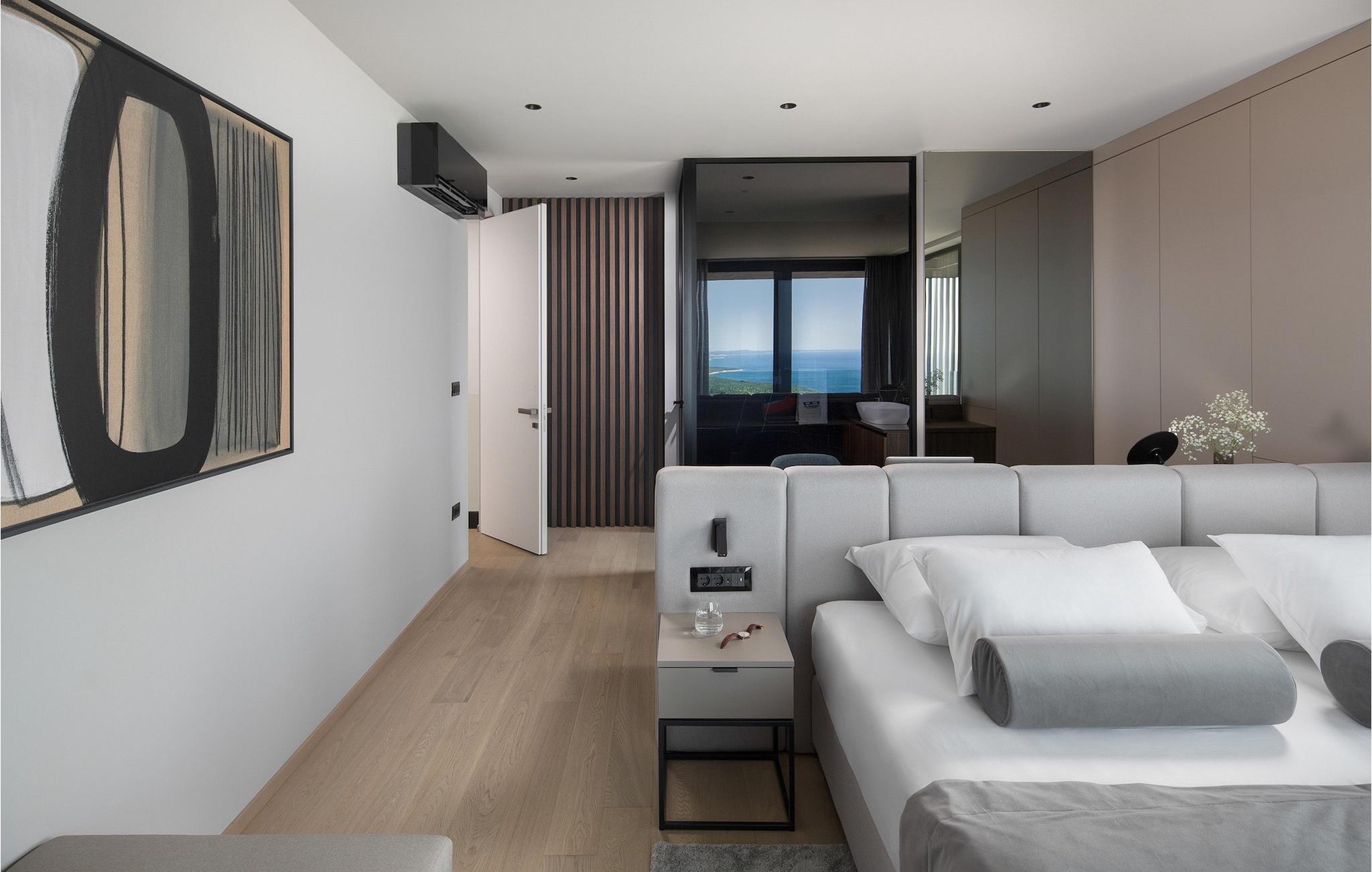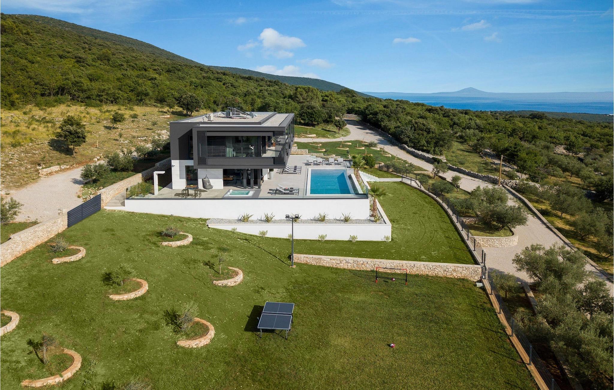 Die Tage auf dem Anwesen beginnen mit Düften und Geräuschen der Natur, mit dem atemberaubenden Panoramablick vom Bett. Auf dem geräumigen Grundstück steht Ihnen eine 300 m2 große Terasse mit einem großen Pool und einem Jacuzzi zur Verfügung, wo Sie einen atemberaubenden Panoramablick auf den Kvarner und den südlichen Teil Istriens genießen können. Im Außenbereich befindet sich auch eine Sommerküche und ein Loungebereich, in dem Sie ruhige Sommerabende mit Familie und Freunden verbringen können. Das Innere der Villa bietet ein modernes Design mit gedämpften Tönen und glatten Linien, die eine warme, entspannende Atmosphäre schaffen. Im Erdgeschoss der Villa stehen Ihnen ein geräumiges bezauberndes Wohnzimmer und eine voll ausgestattete Küche mit einem eleganten Esszimmer zur Verfügung. In der oberen Etage befinden sich 4 elegant eingerichtete Schlafzimmer mit eigenem Bad. Alle Zimmer bieten einen bezaubernden Meeresblick und haben Zugang zu einer gemeinsamen Terrasse mit einem Teleskop, wo Sie die istrische Küste erkunden können. Aber das ist noch nicht alles! Im Untergeschoss befindet sich ein Unterhaltungsbereich, in dem Sie einen Fitnessraum sowie einen Wellnessbereich mit einer finnischen Sauna finden, aber auch einen Billardraum sowie ein Spielzimmer. In der unteren Etage steht Ihnen auch eine Garage zur Verfügung.