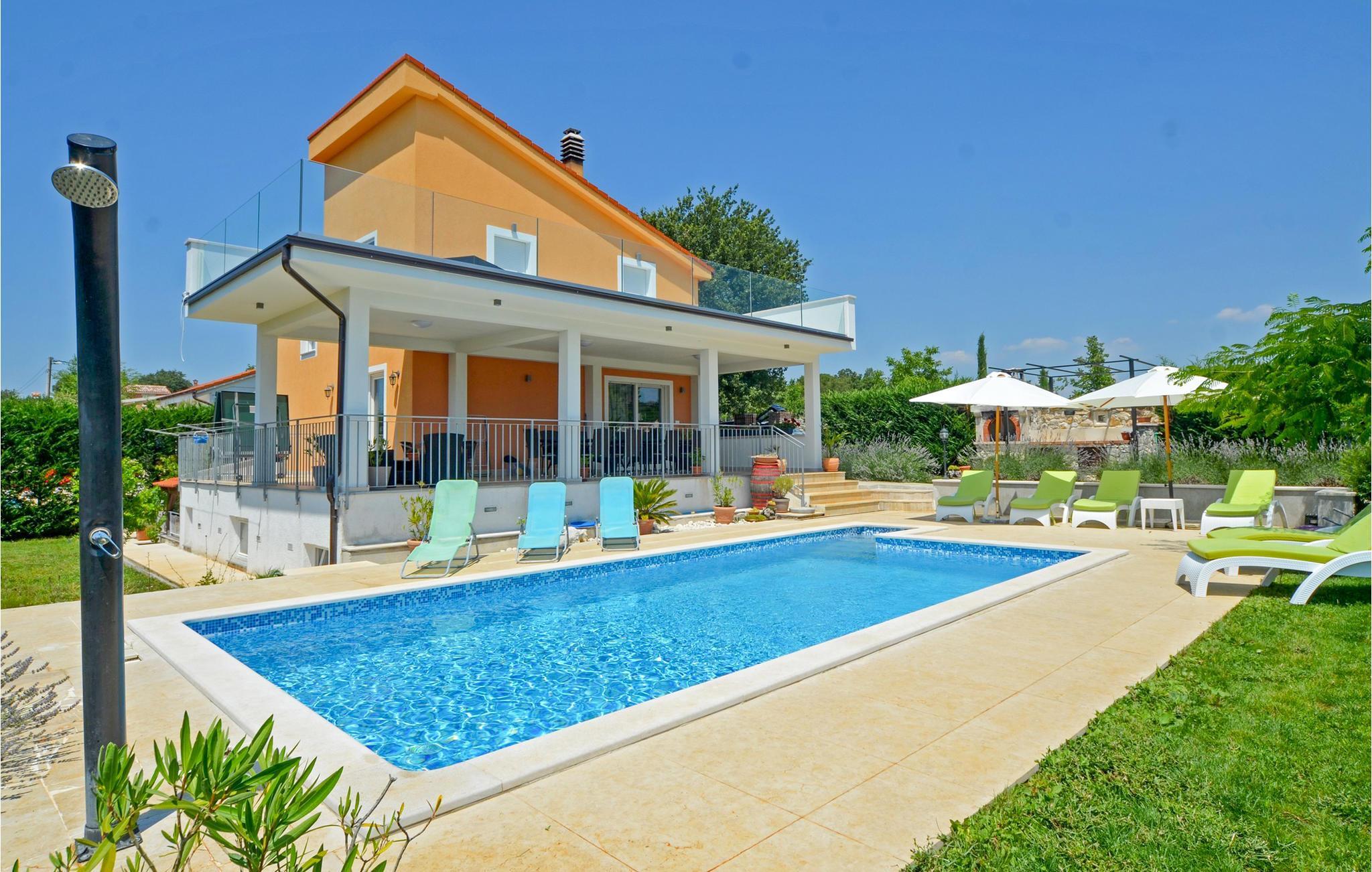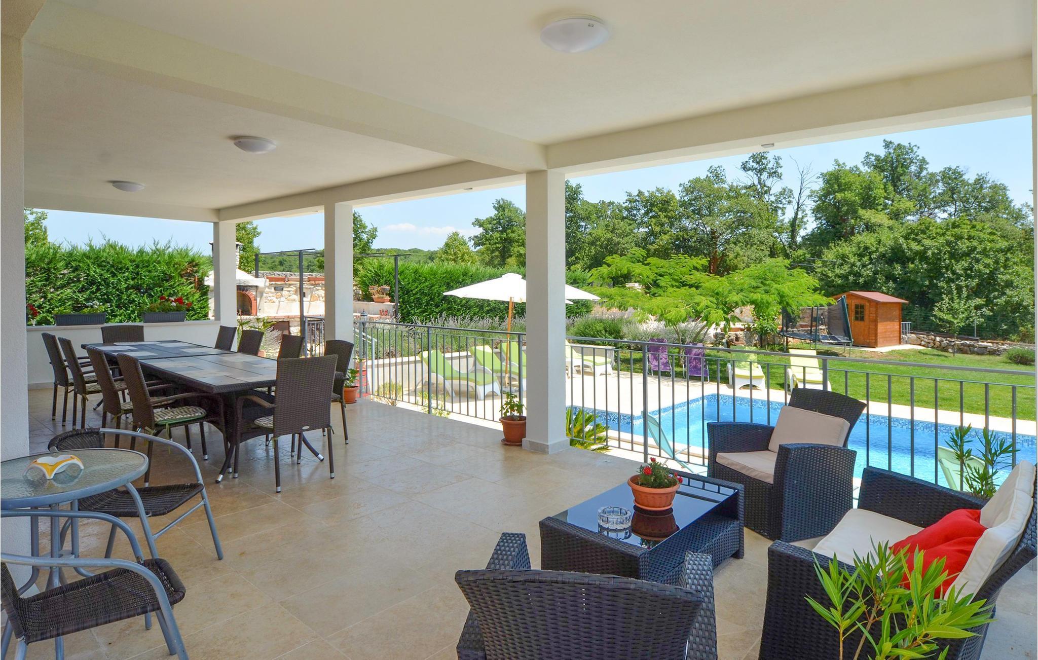 In einer schönen Umgebung, umgeben von wunderschönem Grün, befindet sich dieses Ferienhaus mit Pool. Das Haus befindet sich in dem kleinen Dorf Kurili, wo einigen traditionelle Steinhäusern zum idyllisches istrischen Ambiente beitragen. Das Haus liegt etwa 15 Autominuten von der romantischen Stadt Rovinj entfernt. Dank der hervorragenden Lage, nahe genug zur Stadt und doch weg vom Lärm und den üblichen Menschenmassen, können Sie sich vom Alltagsstress erholen. Eine große überdachte Terrasse mit Gartenmöbeln bietet einen Blick auf die Landschaft, so dass Sie sich auf der Terrasse entspannen können, während die Kinder im Pool ihren Spaß haben. Das Nachbarhaus (CIV397) wird ebenfalls vermietet, so dass Sie einen gemeinsamen Urlaub mit Freunden planen können.