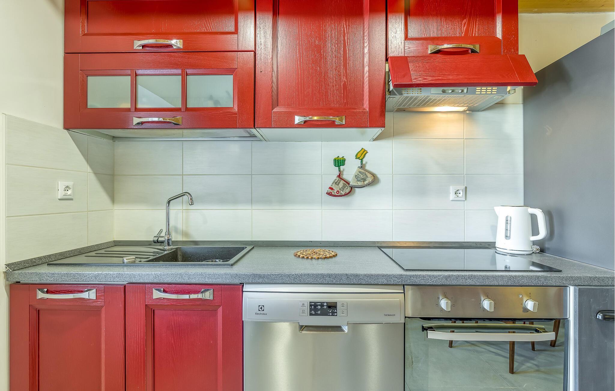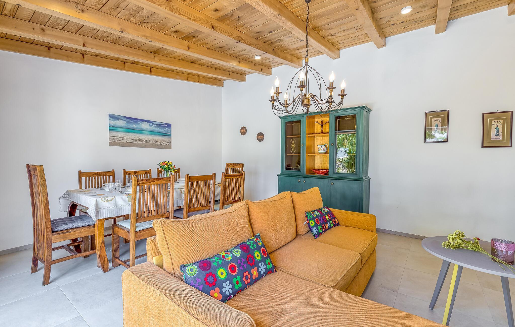 In diesem hellen und stilvoll eingerichteten Ferienhaus schaffen Holzbalkendecken, Natursteinwände und warme Farbakzente eine behagliche Atmosphäre. Bereiten Sie in der modernen Küche köstliche Spezialitäten zu und genießen Sie diese im gemütlichen Essbereich. Lassen Sie den Tag mit einem Filmabend auf dem komfortablen Sofa ausklingen oder verbringen Sie gesellige Stunden mit einem Gesellschaftsspiel.