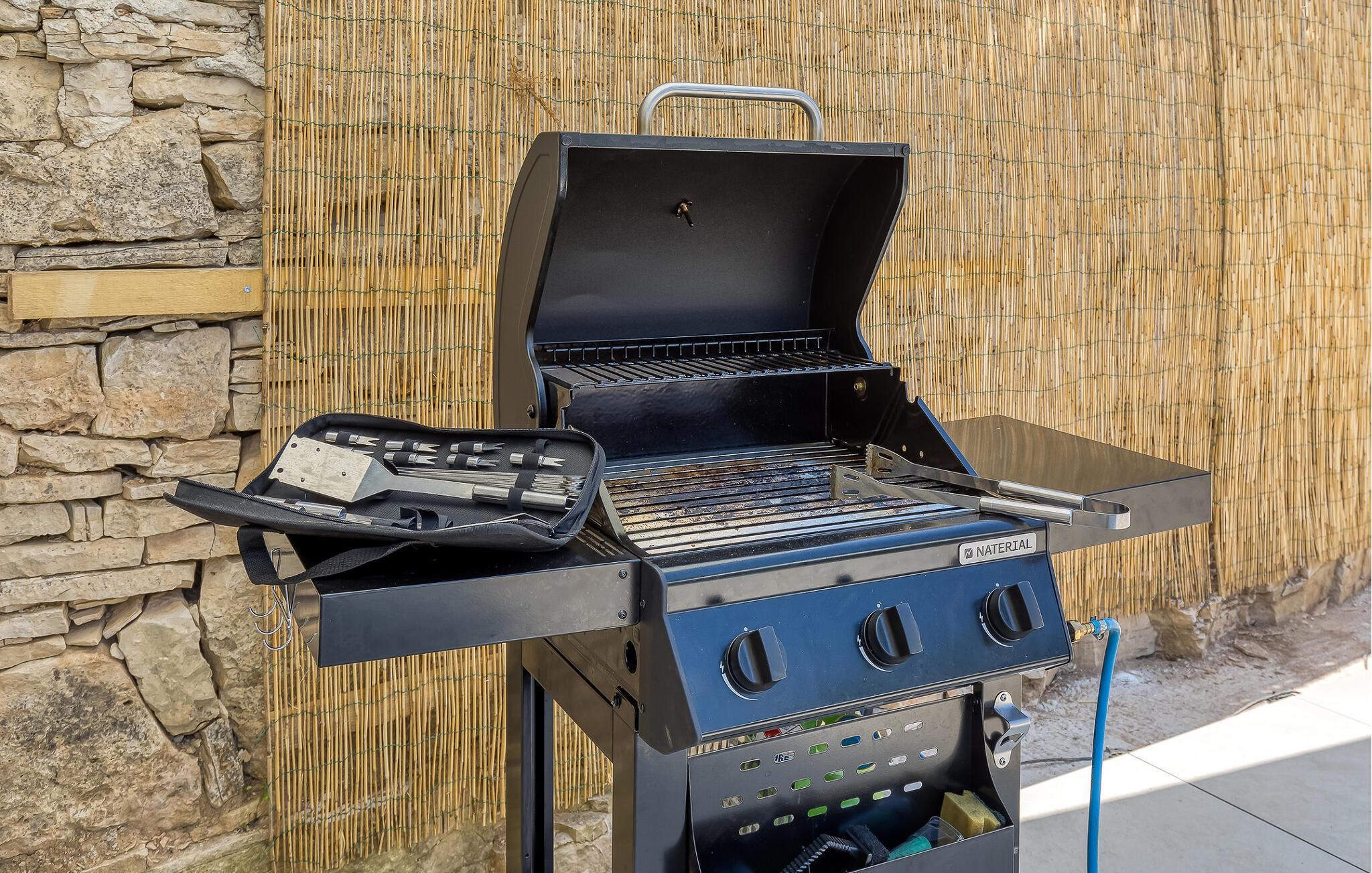 Der idyllische Außenbereich mit großzügiger Terrasse, Pool und Grillplatz lädt zum Entspannen ein. Starten Sie den Tag mit einem erfrischenden Bad im Pool und genießen Sie Ihr Frühstück unter schattigen Bäumen. Sonnen Sie sich auf den Liegestühlen, vertiefen Sie sich in ein gutes Buch oder lassen Sie den Abend mit einem stimmungsvollen Barbecue ausklingen.