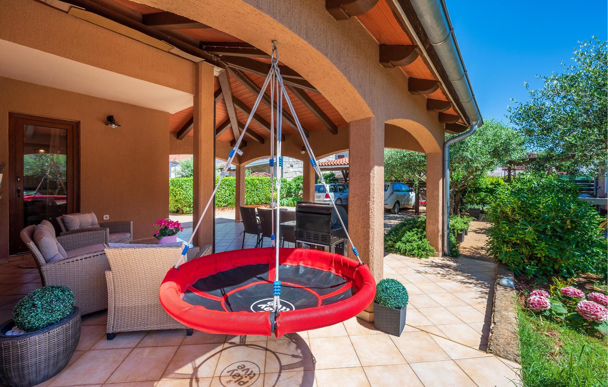 In nur wenigen Autominuten gelangen Sie zu den schönen Stränden an der Adriaküste, von denen Sie aus in das klare, blaue Wasser springen können. Schlendern Sie durch die sehenswerte Stadt Rovinj und entdecken Sie die guten Restaurants und Cafés. An der Hafenpromenade können Sie einen Kaffee trinken und das geschäftige Treiben der Menschen beobachten.