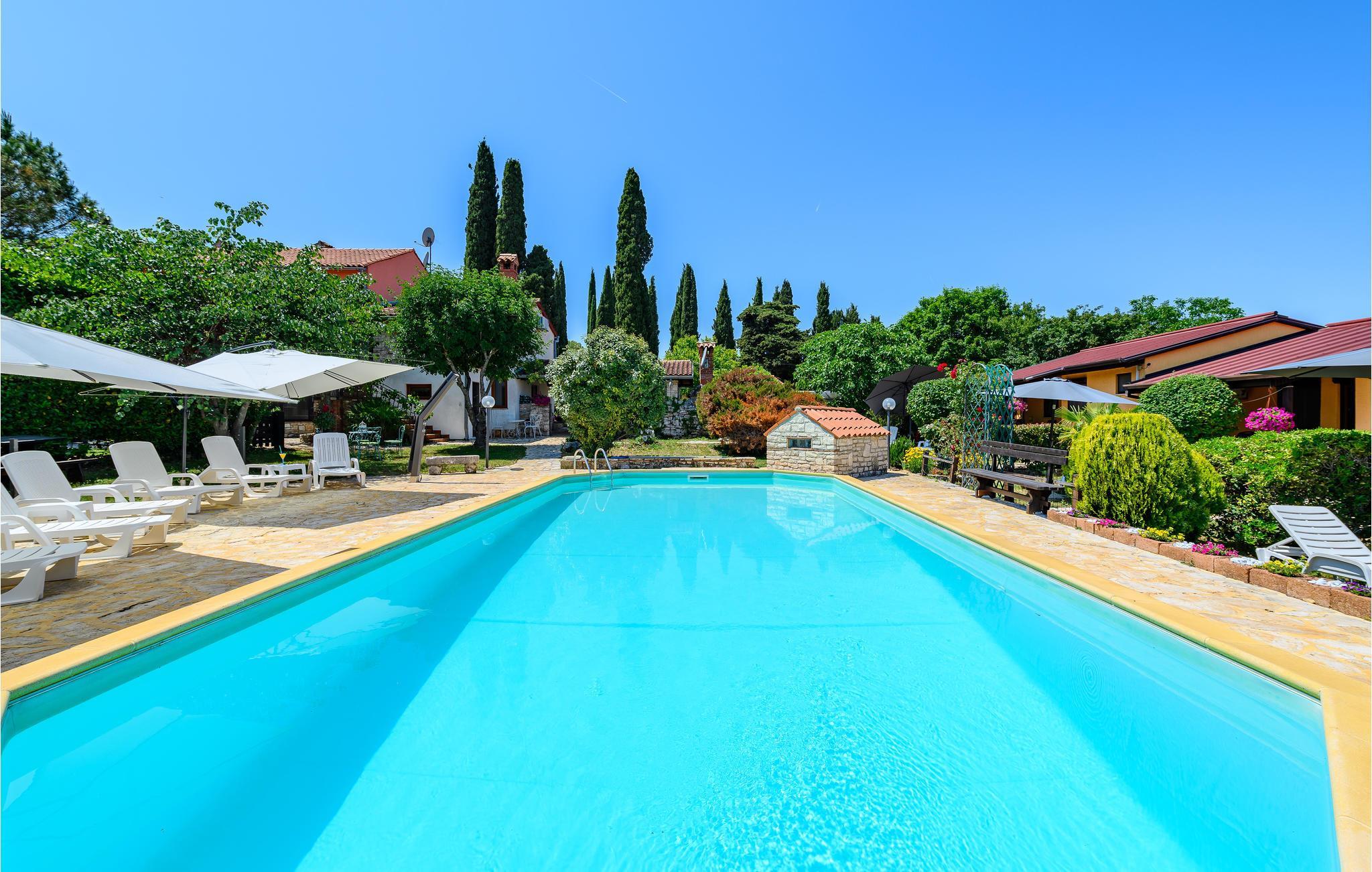 Kommen Sie mit Ihren Liebsten nach Istrien in dieses schöne Ferienapartment in Istrien und genießen Sie eine wunderbare Zeit voller Ruhe, Sonne und Entspannung. Machen Sie es sich in den liebevoll eingerichteten Zimmern bequem und erholen Sie sich von allem Alltagsstress. Nutzen Sie vor allem den wunderschönen Außenbereich. Hier können Sie sich am großen Gemeinschaftspool erfrischen und anschließend auf den Liegen sonnen und ein kühles Getränk genießen. Der grüne Garten um das Anwesen herum ist eine Augenweide, die Sie stundenlang genießen können. Am Abend bereiten Sie sich ein leckeres Barbecue zu, wofür Sie den Steingrill nutzen können.