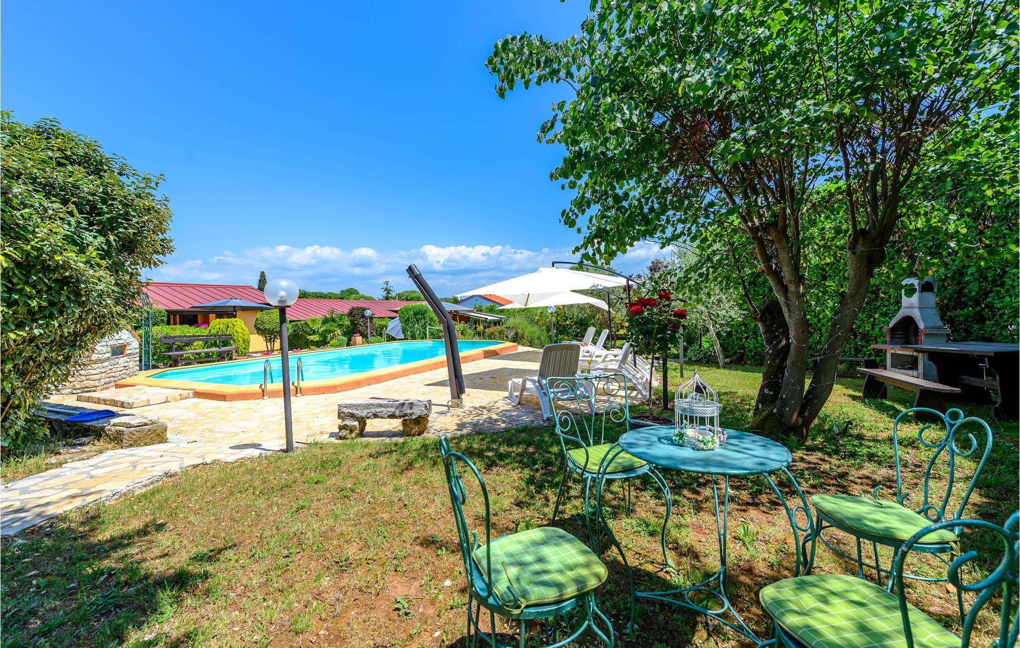 Kommen Sie mit Ihren Liebsten nach Istrien in dieses schöne Ferienapartment in Istrien und genießen Sie eine wunderbare Zeit voller Ruhe, Sonne und Entspannung. Machen Sie es sich in den liebevoll eingerichteten Zimmern bequem und erholen Sie sich von allem Alltagsstress. Nutzen Sie vor allem den wunderschönen Außenbereich. Hier können Sie sich am großen Gemeinschaftspool erfrischen und anschließend auf den Liegen sonnen und ein kühles Getränk genießen. Der grüne Garten um das Anwesen herum ist eine Augenweide, die Sie stundenlang genießen können. Am Abend bereiten Sie sich ein leckeres Barbecue zu, wofür Sie den Steingrill nutzen können.
