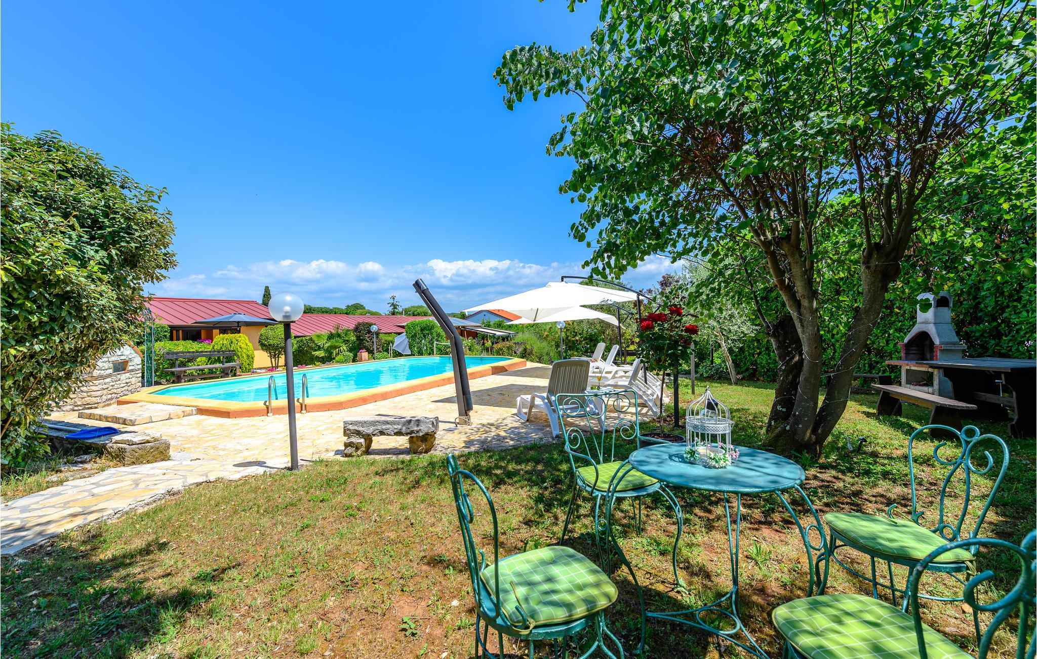 Kommen Sie mit Ihren Liebsten nach Istrien in dieses schöne Ferienapartment in Istrien und genießen Sie eine wunderbare Zeit voller Ruhe, Sonne und Entspannung. Machen Sie es sich in den liebevoll eingerichteten Zimmern bequem und erholen Sie sich von allem Alltagsstress. Nutzen Sie vor allem den wunderschönen Außenbereich. Hier können Sie sich am großen Gemeinschaftspool erfrischen und anschließend auf den Liegen sonnen und ein kühles Getränk genießen. Der grüne Garten um das Anwesen herum ist eine Augenweide, die Sie stundenlang genießen können. Am Abend bereiten Sie sich ein leckeres Barbecue zu, wofür Sie den Steingrill nutzen können.