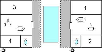 Dieses familienfreundliche Ferienhaus besteht aus zwei Häusern und eignet sich ideal für zwei Familien oder eine Gruppe von Freunden, die ihren Urlaub zusammen verbringen und gleichzeitig die Privatspäre wahren möchten. Jedes Haus ist komplett mit Badezimmer, Küche, Wohnzimmer und zwei Schlafzimmern eingerichtet und hat je seine eigene Terrasse.