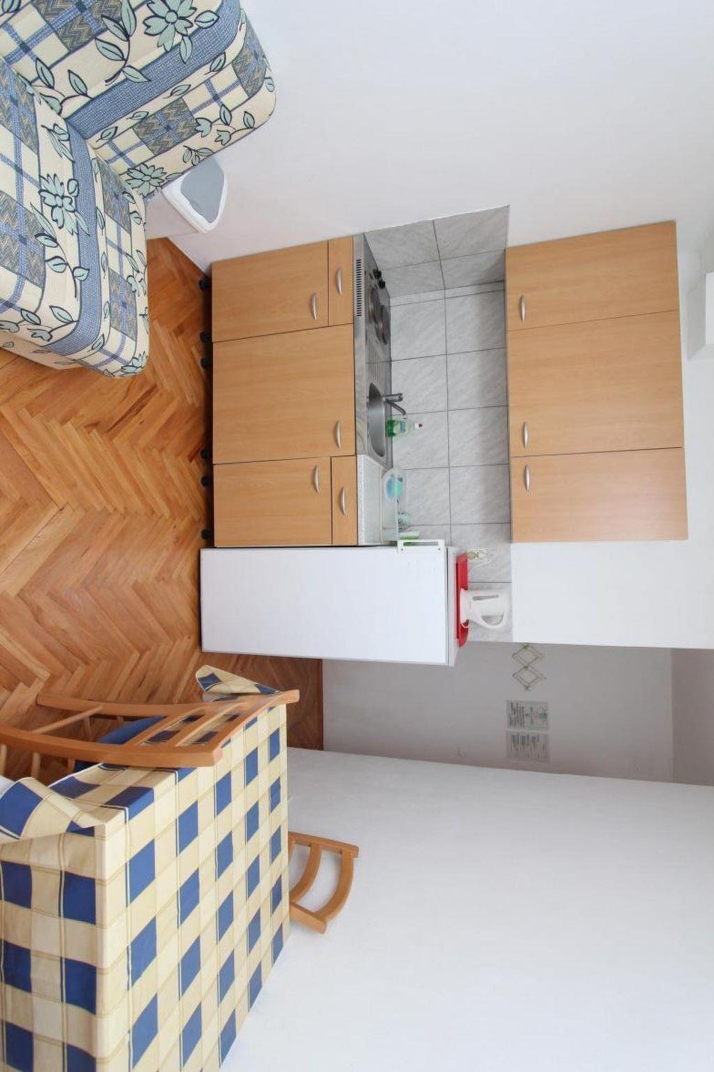 In der Wohnung, gelegen auf der ersten Etage, finden Sie ein einladendes Schlafzimmer mit einem komfortablen Doppelbett, welches Ruhe und Erholung verspricht. Die Wohnküche, Herzstück der Wohnung, präsentiert sich mit einer komfortablen Couchgarnitur, einem Fernseher und einem Esstisch mit Stühlen - ideal, um gemeinsame Momente zu genießen oder sich nach einem Tag voller Entdeckungen zu entspannen. Die Küchenzeile ist mit einem 2-Platten-Herd, Kühlschrank mit Gefrierfach, kleinem Backofen, Kaffeemaschine und Wasserkocher praktisch ausgestattet. Eine Klimaanlage sorgt an warmen Tagen für angenehme Kühle.