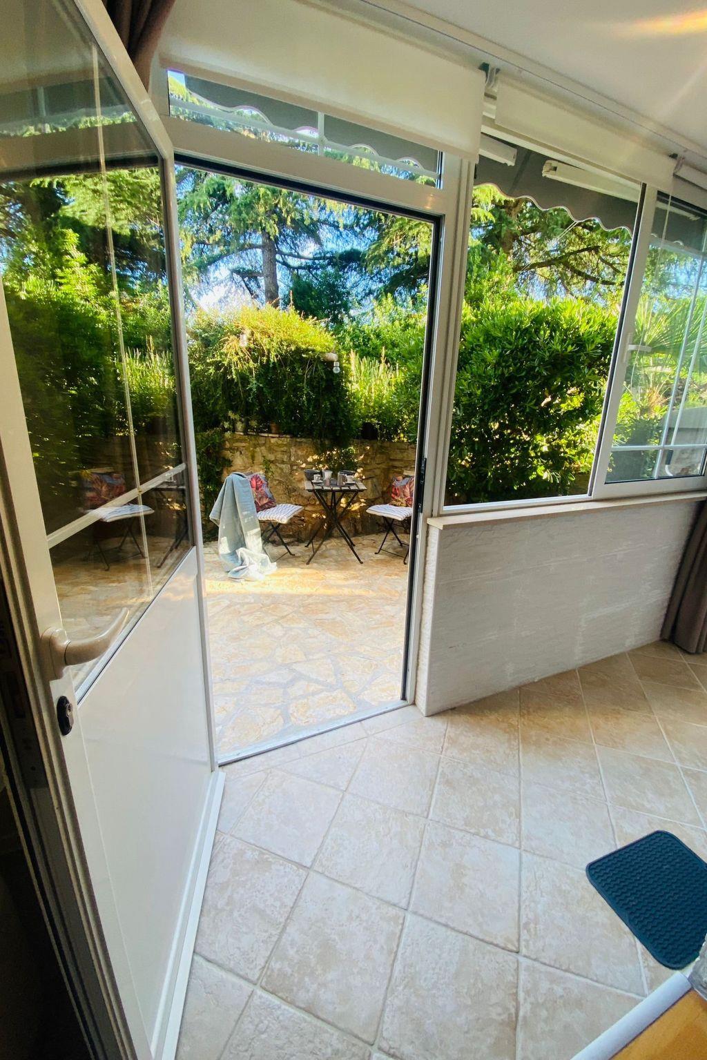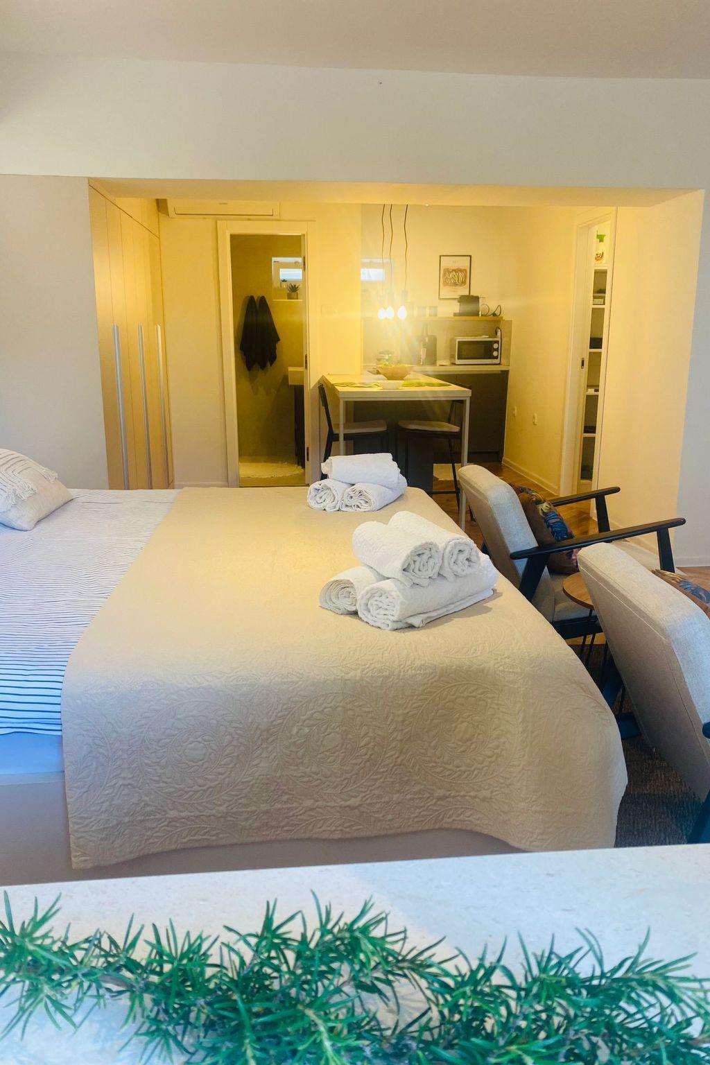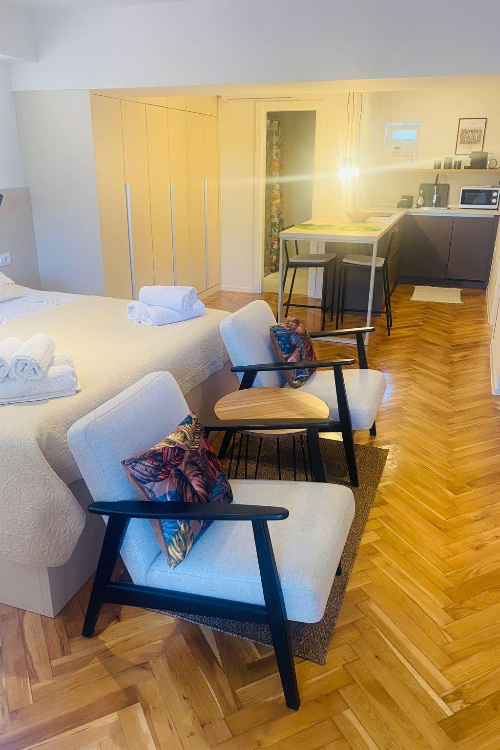 Im Inneren erwarten Sie ein komfortables Schlafzimmer, ein modernes Bad mit Dusche, eine gut ausgestattete Küche mit allen Annehmlichkeiten und ein Wohnbereich mit Satellitenfernsehen und Platz zum Entspannen nach einem Tag am Strand oder einem Bummel durch die Straßen der Altstadt. Der private Balkon ist der perfekte Ort, um den Tag mit einem Kaffee zu beginnen, während der umliegende Garten für ruhige Momente im Grünen sorgt.