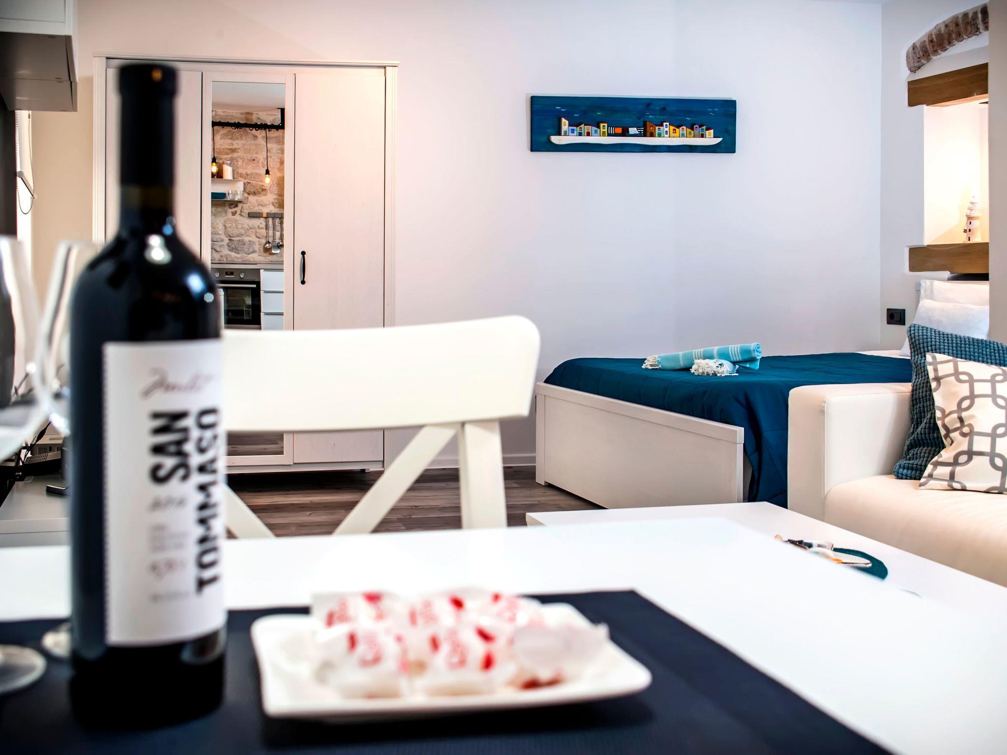 Das Meer ist in nur 50 Metern zu erreichen. Ein Lebensmittelgeschäft, Restaurants, Bars und Cafés befinden sich nur 50 m von den Wohnungen entfernt. Das Apartmet liegt 5 Gehminuten vom barocken Busbahnhof entfernt. Die Basilika der Heiligen Euphemia ist 100 m entfernt, während der nächste Flughafen in Pula 35 km entfernt ist.