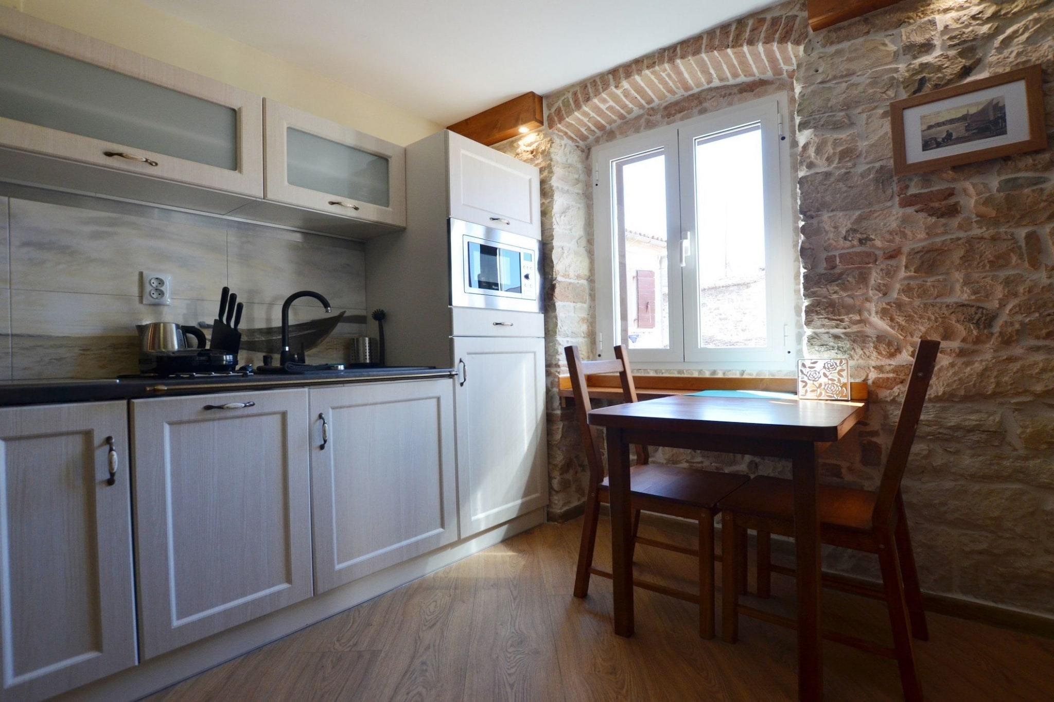Urban and upscale homes in Rovinj Old Town, Istria County, Croatia, offer a blend of historical charm and modern luxury. Rovinj, a picturesque coastal town on the Istrian peninsula, is renowned for its vibrant history, Venetian-style architecture, and a maze of cobblestone streets. asy access to waterfront promenades, beaches, and nearby islands makes it ideal for lovers of nature and the sea. Note: Pets are allowed with notice. Parking is not available. Wi-Fi is available throughout the property. This Standard One Bedroom Apartment can accommodate up to four guests. It features a Flat screen TV, Satellite TV and is combined with a living room . The private bathroom is equipped with a shower and toilet. Thanks to its excellent location, everything you'll need for your vacation is just a short walk away from the property. cafes and restaurants—50.00 m. The beach is 700.00 m away from the property. The airport is 40 km away from the property.
