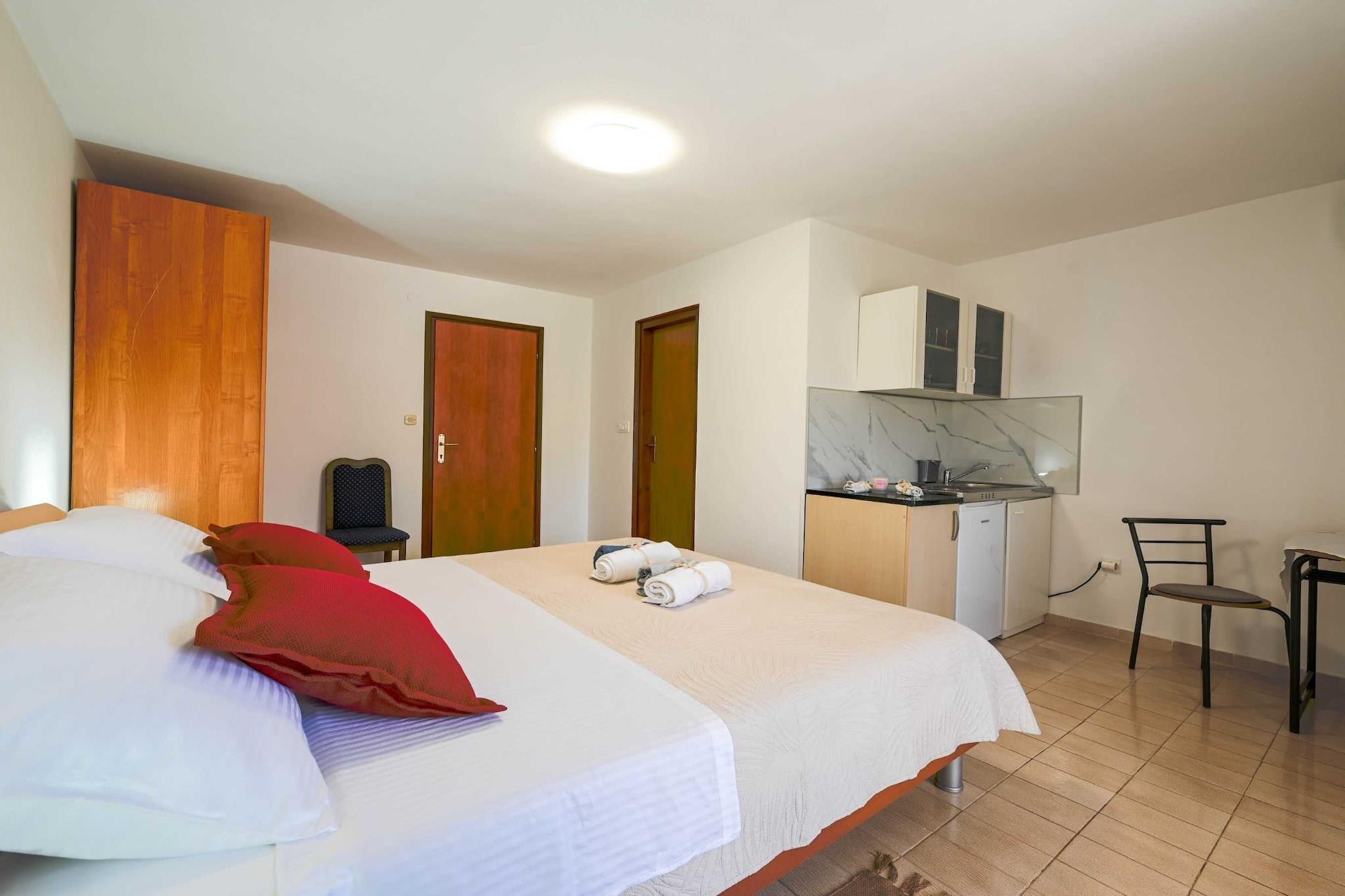 The "Calm and Stylish Rooms with Balcony" in Rovinj, Istria County, Croatia, offers a serene accommodation experience ideal for travelers seeking a blend of comfort and elegance. Located in this picturesque coastal town, the rooms typically feature modern decor, private balconies with lovely views, and essential amenities such as air conditioning and free Wi-Fi. Some properties in Rovinj also provide access to spa facilities, pools, and on-site dining options with local and international cuisine. Many accommodations in Rovinj are close to attractions such as the historic Old Town, local beaches, and scenic nature parks like Zlatni Rt. For example, some hotels even offer boat transfers to nearby islands, enhancing the tranquil, Mediterranean experience. Note: Pets are not allowed. Public parking is available. Wi-Fi is available throughout the property. This Studio Apartment with Balcony can accommodate up to two guests. It features a Satellite TV and is combined with a living room and kitchen. The private bathroom is equipped with a shower and toilet. Thanks to its excellent location, everything you'll need for your vacation is just a short walk away from the property. Cafes and restaurants— is within a 100 m radius. The beach is 400.00 m away from the property. The airport is 40 km away from the property.