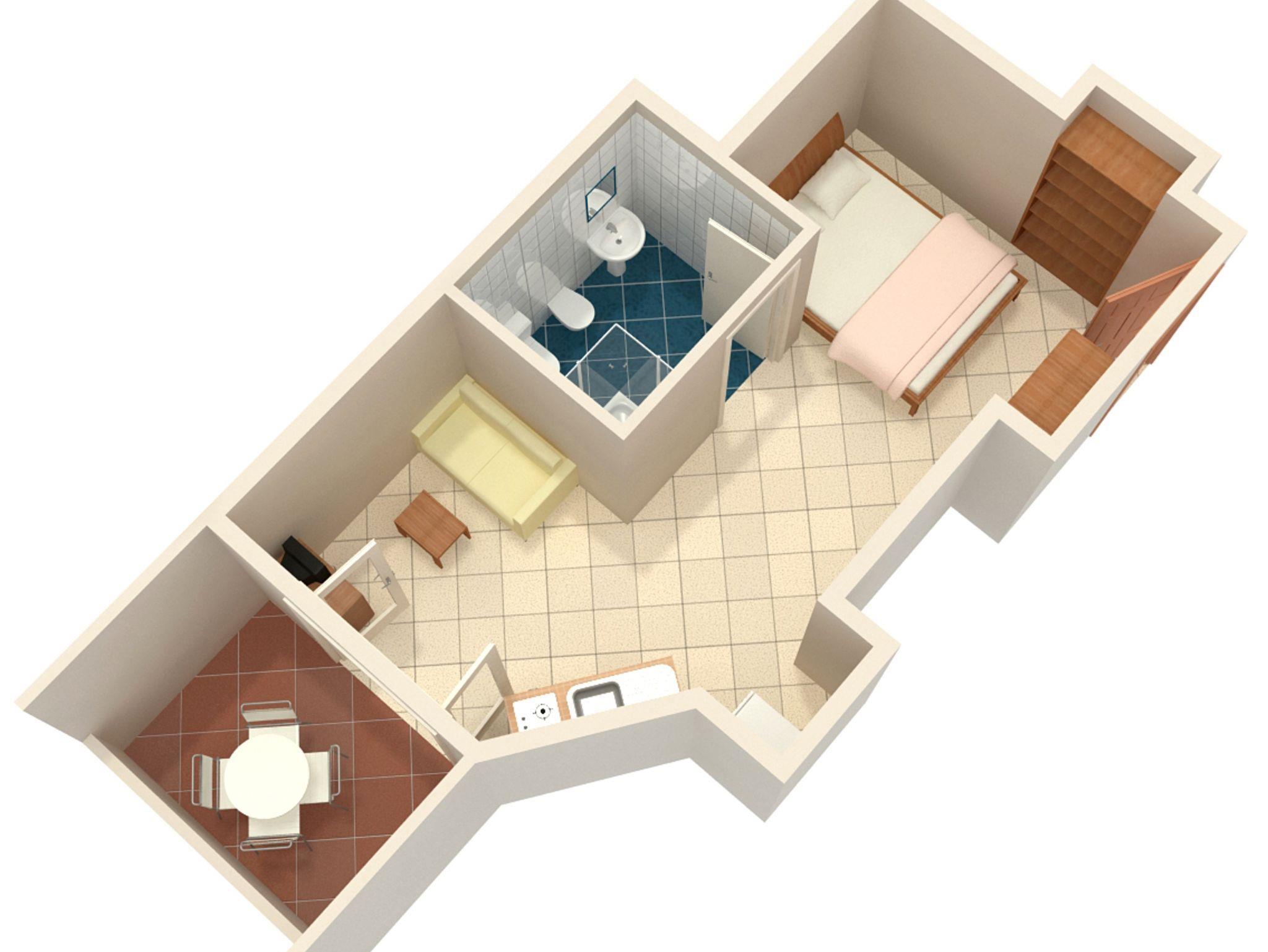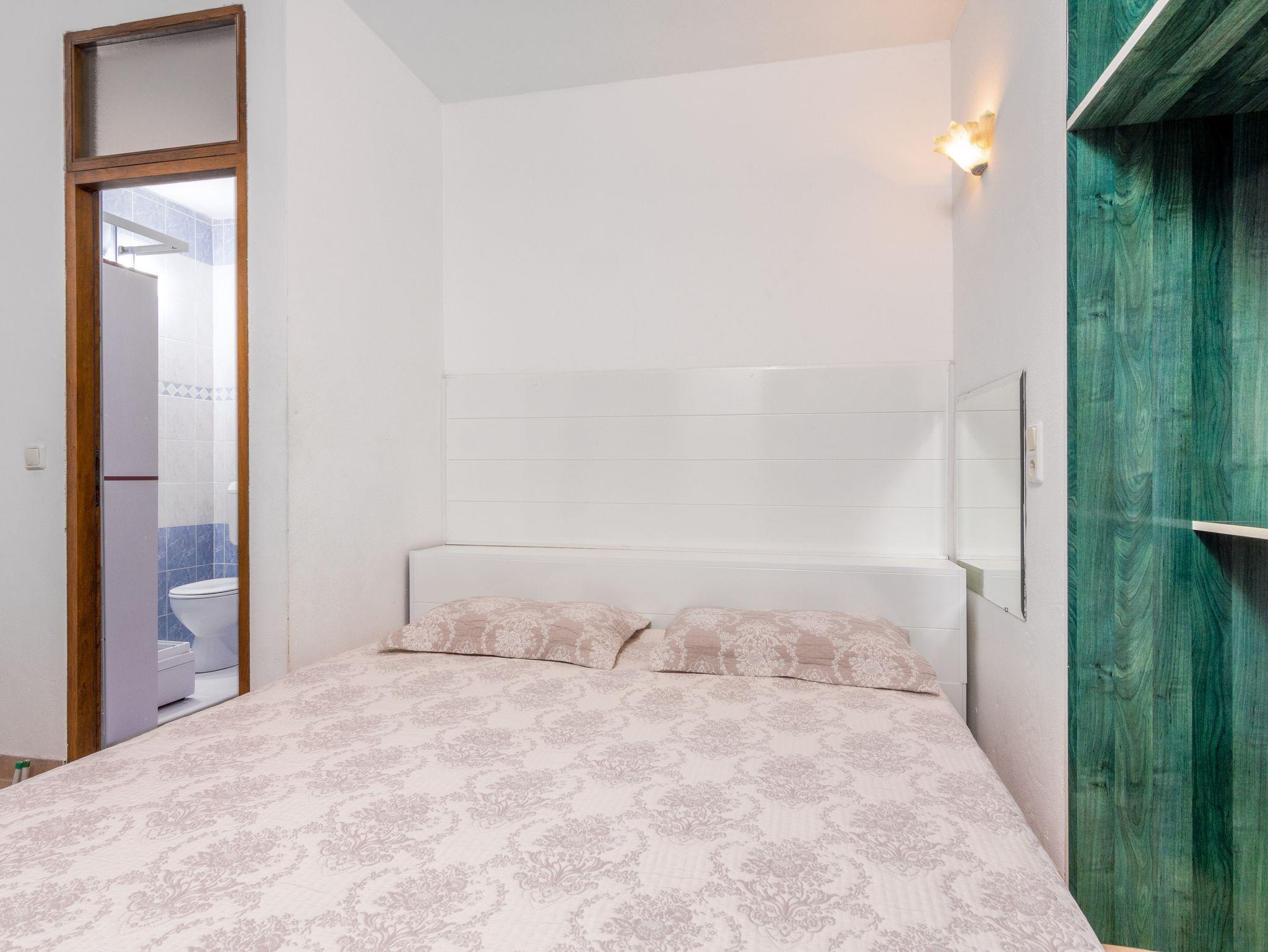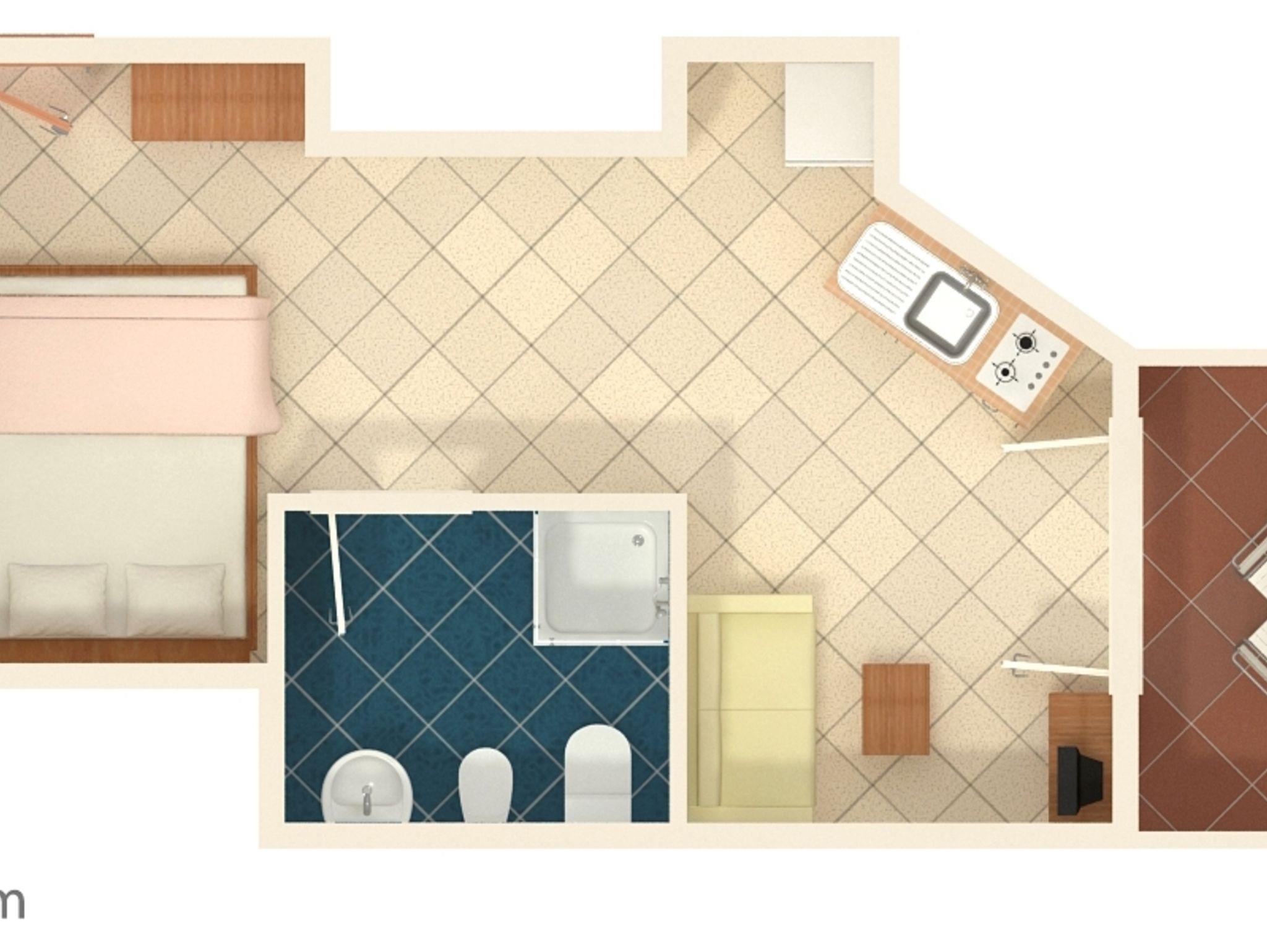 Studio bietet Platz für 3 Gäste. Die Betten sind in Schlafzimmern, die es 1 gibt, und in Wohnzimmer, innerhalb einer Gesamtfläche von 24m2, angeordnet. Die Gäste haben eine eigene Terrasse zur Verfügung, auf der sie in warmen Sommernächten genießen können. IM PREIS INBEGRIFFEN: Kurtaxe, Endreinigung, Klimatisierung, Internet, Wäschewaschen, Bügeleisen, Bügelbrett, Föhn. VERBINDLICHE ZUSÄTZLICHE KOSTEN: Aufzahlung für Kurzaufenthalte (prozentualer Zuschlag pro Nächtigungsanzahl: 30% - 1, 20% - 2, 10% - 3). Die Verfügbarkeit zusätzlicher Dienstleistungen in Ihrem reservierten Termin und die Preise derselben (falls nicht aufgeführt) müssen im Voraus überprüft werden. Zusätzliche Dienstleistungen die in der Zahlungsaufforderung nicht aufgeführt sind werden direkt beim Vermieter bezahlt, angenommen der Gast nutzt auch diese.