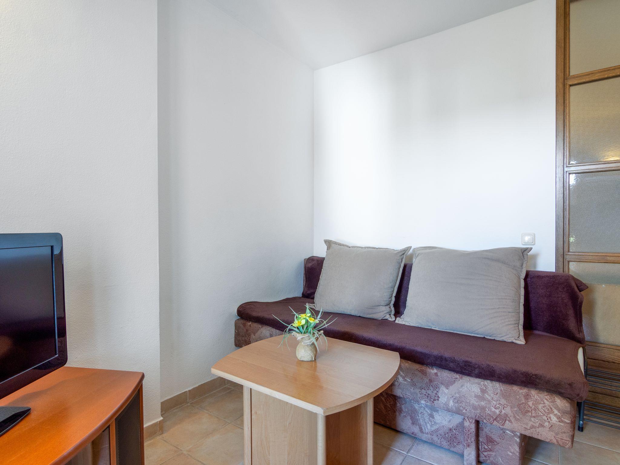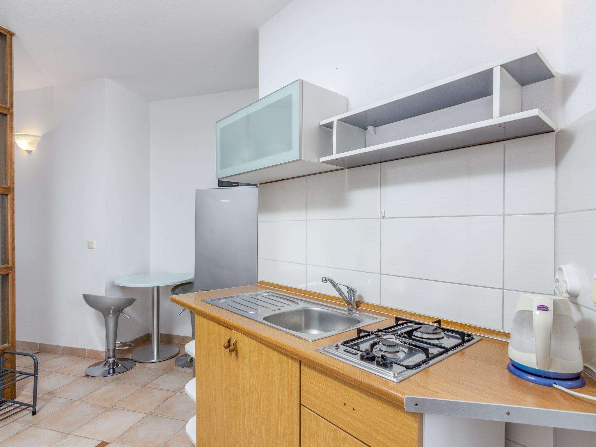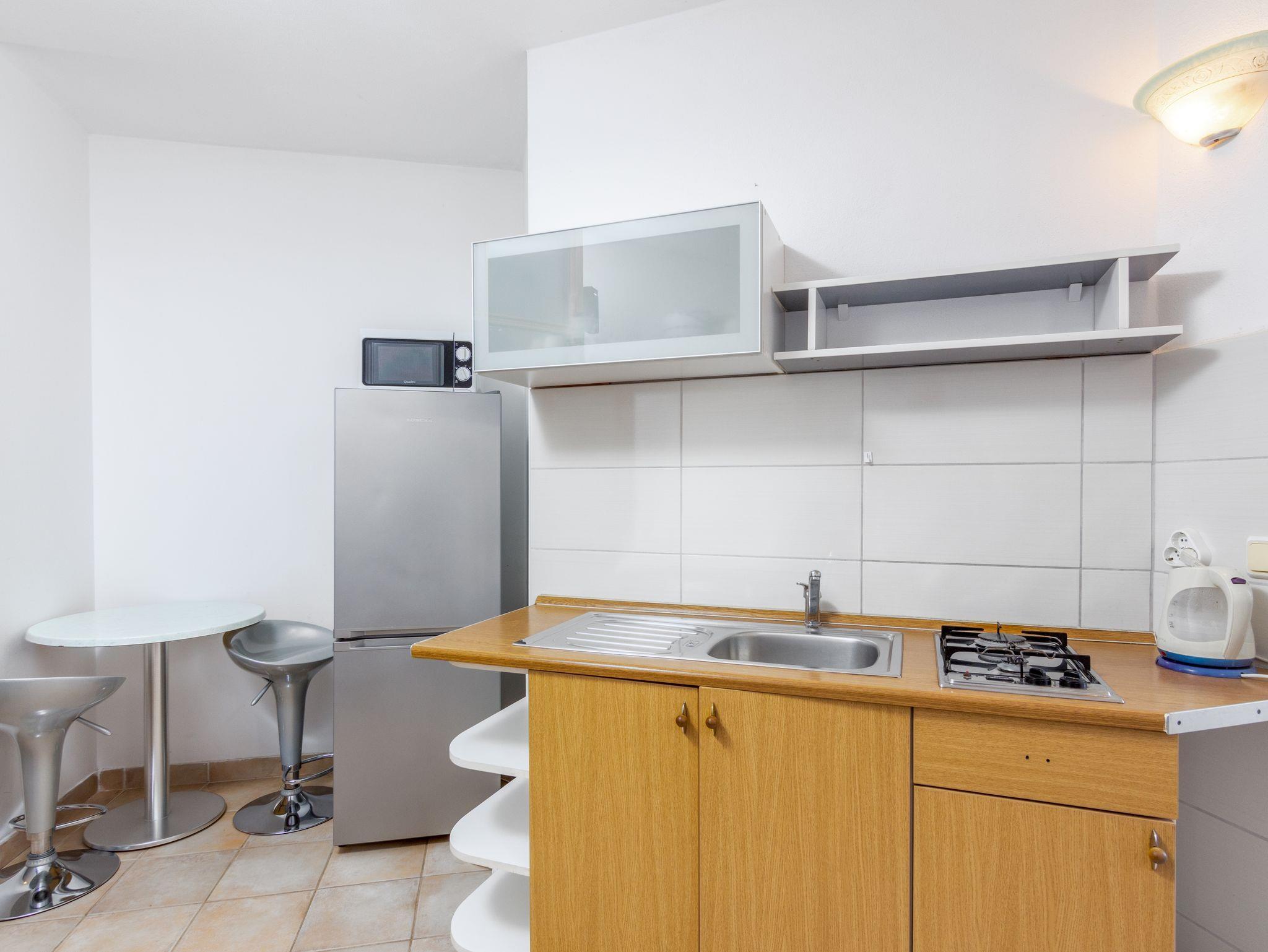 Studio bietet Platz für 3 Gäste. Die Betten sind in Schlafzimmern, die es 1 gibt, und in Wohnzimmer, innerhalb einer Gesamtfläche von 24m2, angeordnet. Die Gäste haben eine eigene Terrasse zur Verfügung, auf der sie in warmen Sommernächten genießen können. IM PREIS INBEGRIFFEN: Kurtaxe, Endreinigung, Klimatisierung, Internet, Wäschewaschen, Bügeleisen, Bügelbrett, Föhn. VERBINDLICHE ZUSÄTZLICHE KOSTEN: Aufzahlung für Kurzaufenthalte (prozentualer Zuschlag pro Nächtigungsanzahl: 30% - 1, 20% - 2, 10% - 3). Die Verfügbarkeit zusätzlicher Dienstleistungen in Ihrem reservierten Termin und die Preise derselben (falls nicht aufgeführt) müssen im Voraus überprüft werden. Zusätzliche Dienstleistungen die in der Zahlungsaufforderung nicht aufgeführt sind werden direkt beim Vermieter bezahlt, angenommen der Gast nutzt auch diese.