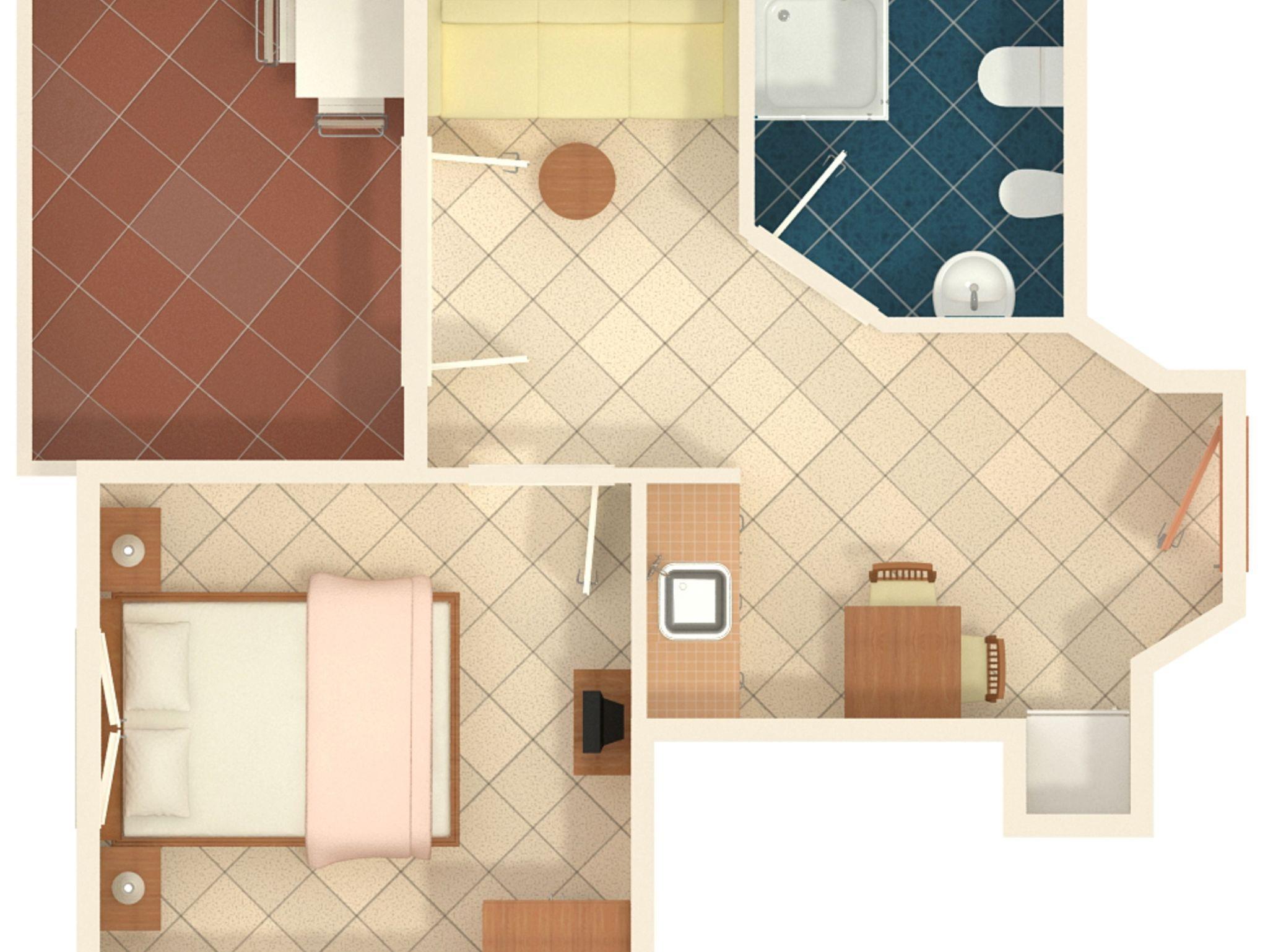 Ferienwohnung bietet Platz für 2 Gäste. Die Betten sind in Schlafzimmern, die es 1 gibt, innerhalb einer Gesamtfläche von 26m2, angeordnet. Die Gäste haben eine eigene Terrasse zur Verfügung, auf der sie in warmen Sommernächten genießen können. IM PREIS INBEGRIFFEN: Kurtaxe, Endreinigung, Klimatisierung, Internet, Wäschewaschen, Bügeleisen, Bügelbrett, Föhn. VERBINDLICHE ZUSÄTZLICHE KOSTEN: Aufzahlung für Kurzaufenthalte (prozentualer Zuschlag pro Nächtigungsanzahl: 30% - 1, 20% - 2, 10% - 3). Die Verfügbarkeit zusätzlicher Dienstleistungen in Ihrem reservierten Termin und die Preise derselben (falls nicht aufgeführt) müssen im Voraus überprüft werden. Zusätzliche Dienstleistungen die in der Zahlungsaufforderung nicht aufgeführt sind werden direkt beim Vermieter bezahlt, angenommen der Gast nutzt auch diese.