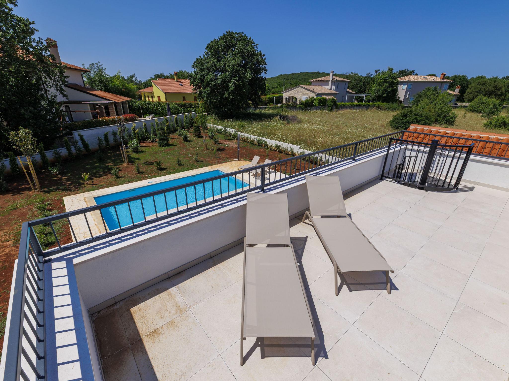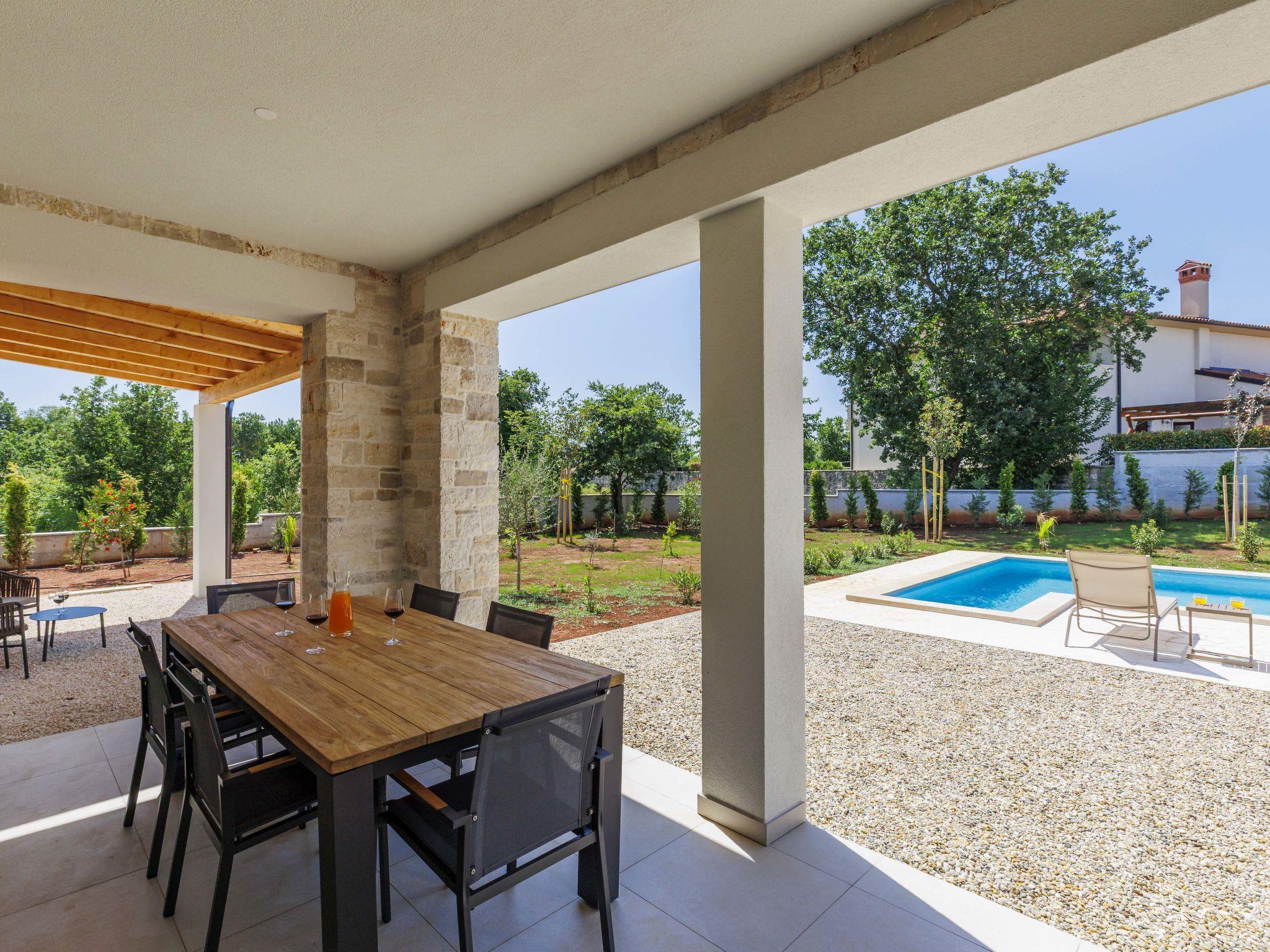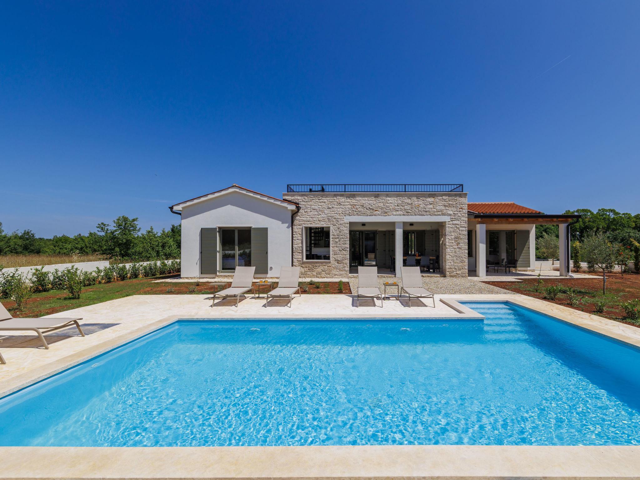 Einfamilienhaus "Juventa", Baujahr 2024. Im Weiler Krmed, 7 km vom Zentrum von Bale, ruhige, sonnige Lage, 14 km vom Meer, 14 km vom Strand. Zur Alleinbenutzung: Grundstück 1'100 m2, Garten mit Rasen und Pflanzen, Schwimmbad eckig, beheizt (8 x 4 m, 32 m2, 140 cm tief, saisonale Verfügbarkeit: 01.Apr. - 01.Nov.) mit Innentreppe und Salzelektrolyse-Reinigungssystem. Aussendusche, Terrasse (20 m2), Grill. Im Hause: Internetzugang, Waschmaschine. Parkplatz (für 3 Autos) beim Haus auf dem Grundstück. Einkaufsgeschäft 5 km, Restaurant 3 km, Bushaltestelle 6 km, Kieselstrand 14 km, Park "Histria aromatica" 5 km. Bitte beachten: geeignet für Familien. Jugendgruppen nur auf Anfrage. Schwimmbad beheizt (extra). Es ist notwendig 7 Tage im Voraus bekannt zu geben, ob die Schwimmbadheizung eingeschaltet werden soll.