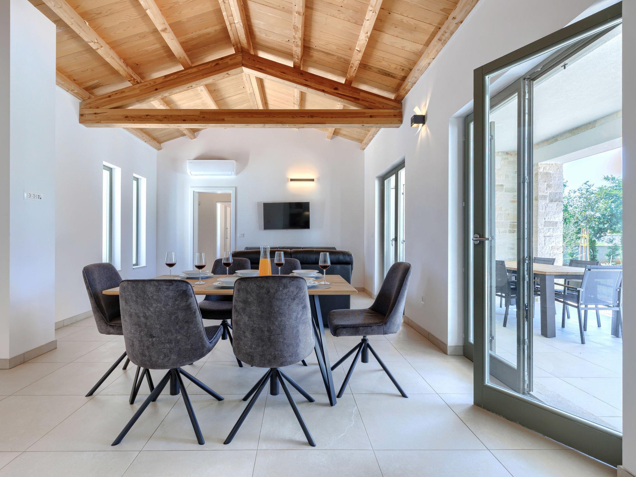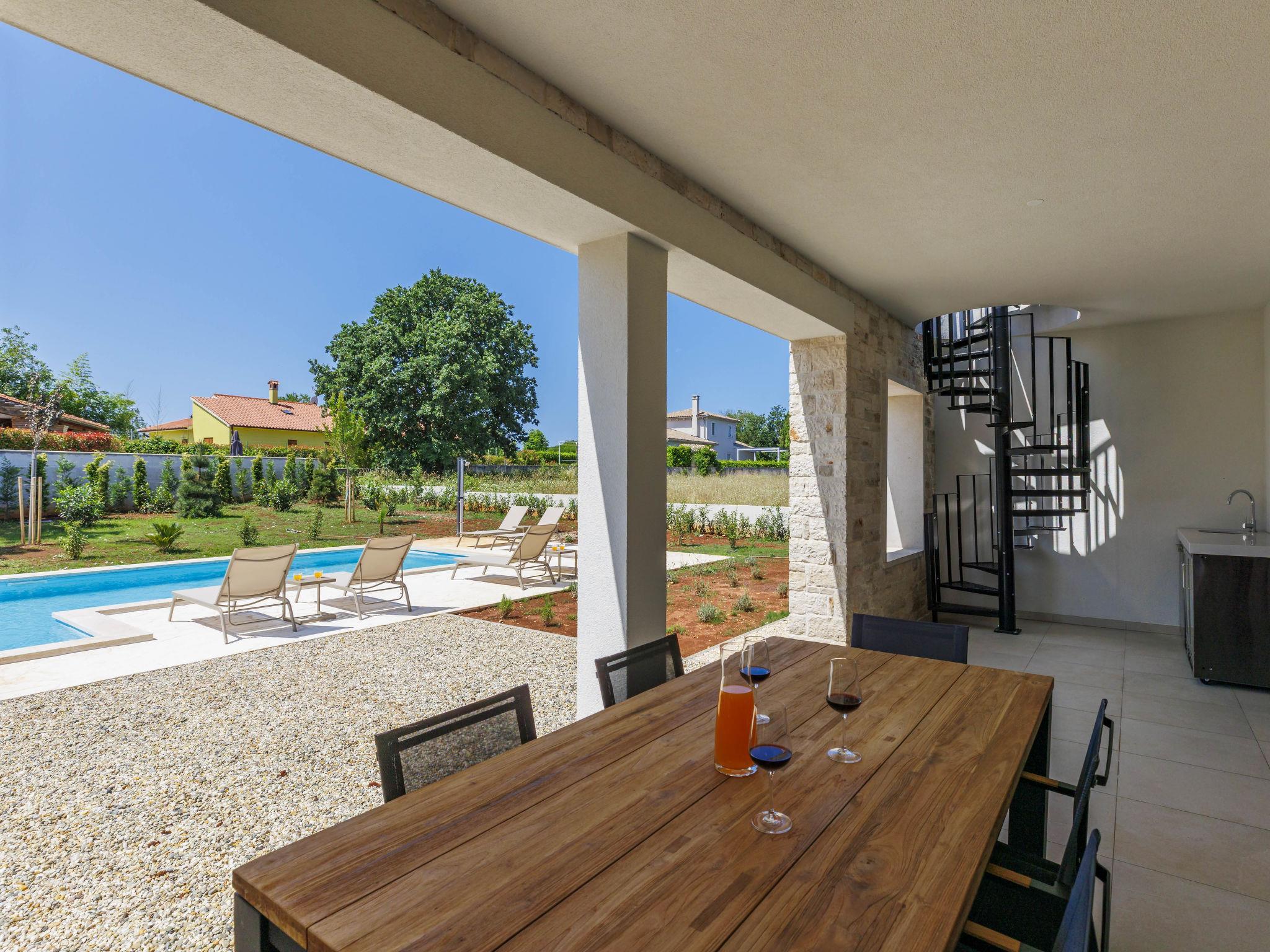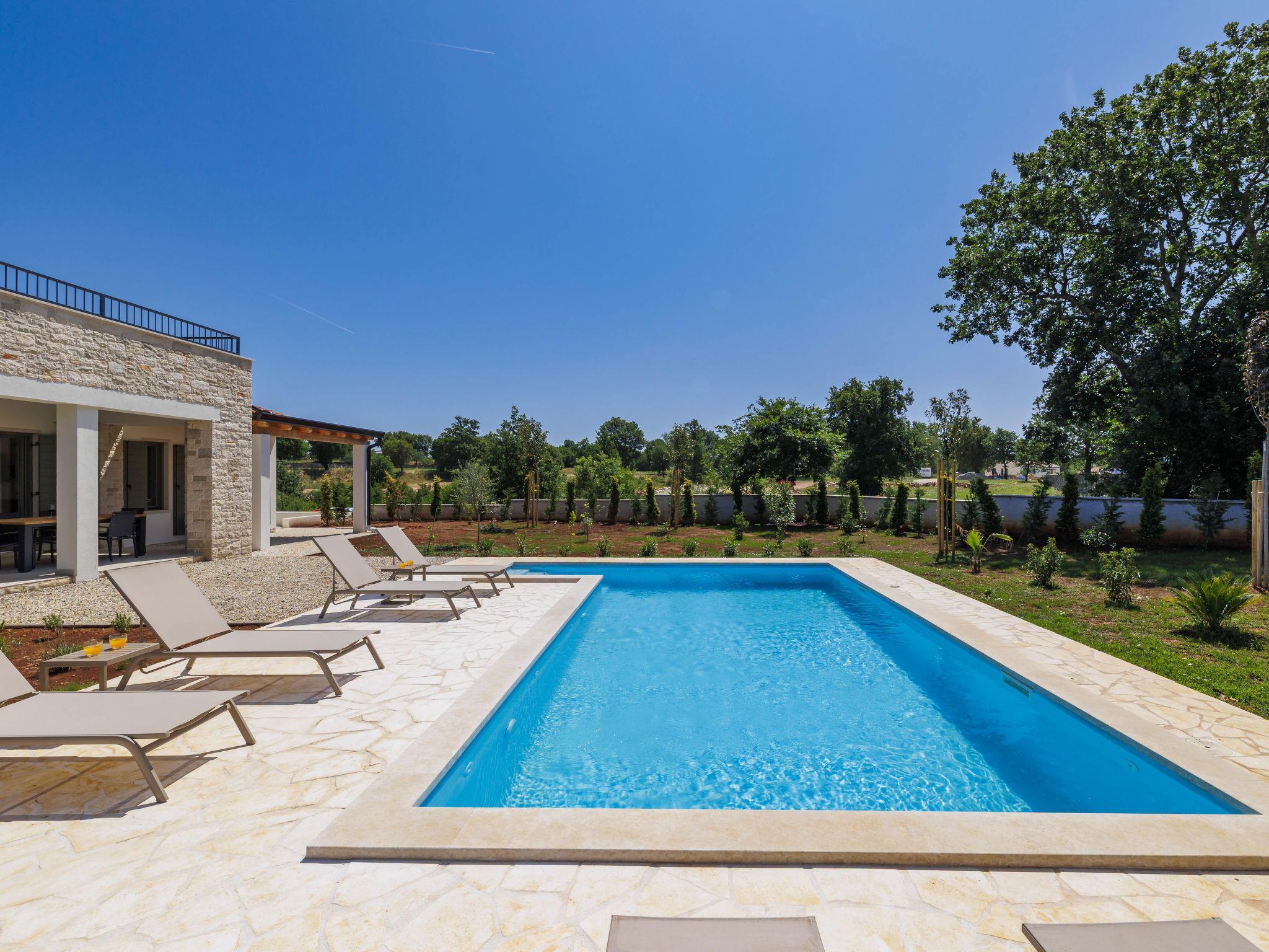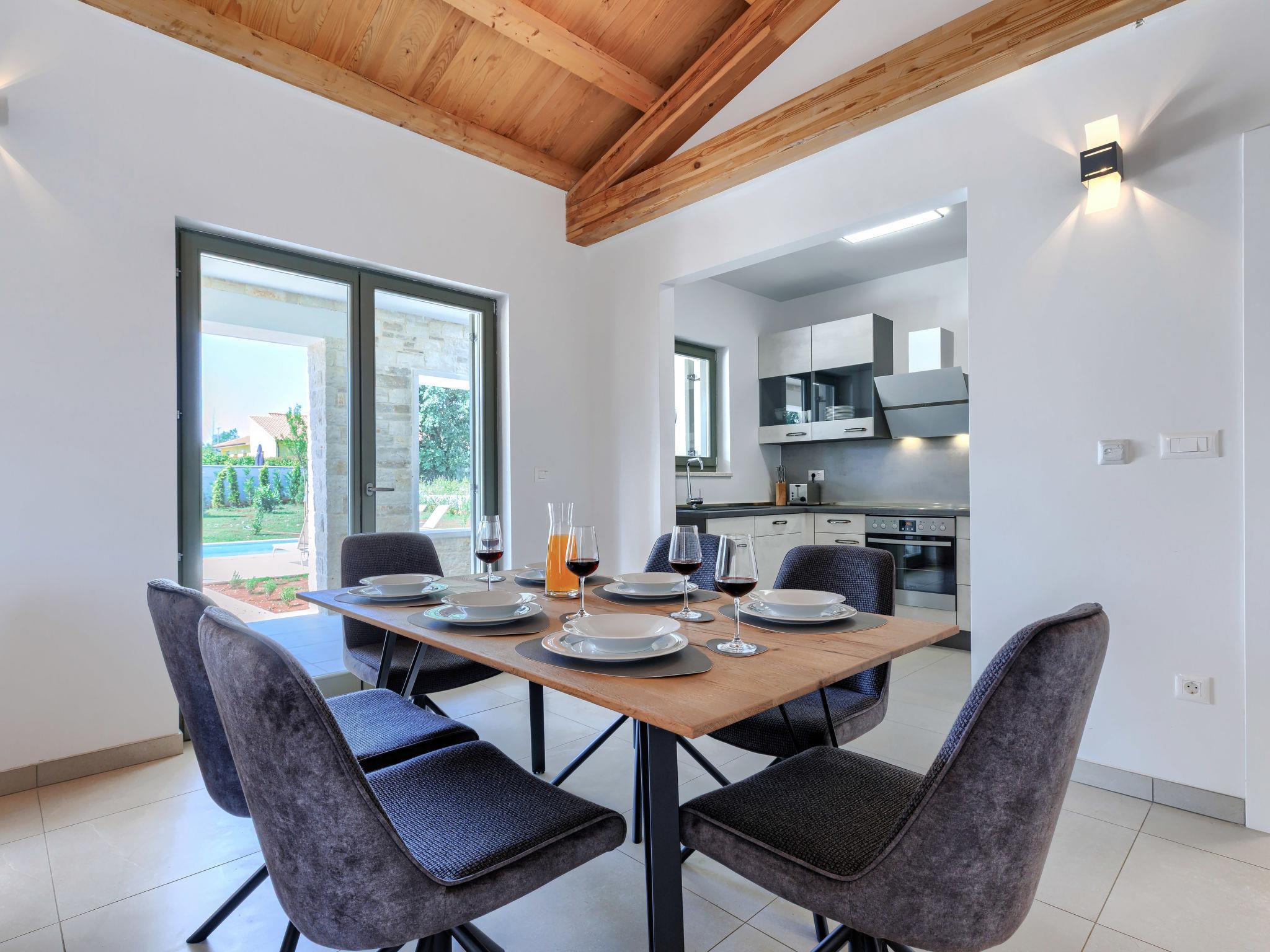Einfamilienhaus "Juventa", Baujahr 2024. Im Weiler Krmed, 7 km vom Zentrum von Bale, ruhige, sonnige Lage, 14 km vom Meer, 14 km vom Strand. Zur Alleinbenutzung: Grundstück 1'100 m2, Garten mit Rasen und Pflanzen, Schwimmbad eckig, beheizt (8 x 4 m, 32 m2, 140 cm tief, saisonale Verfügbarkeit: 01.Apr. - 01.Nov.) mit Innentreppe und Salzelektrolyse-Reinigungssystem. Aussendusche, Terrasse (20 m2), Grill. Im Hause: Internetzugang, Waschmaschine. Parkplatz (für 3 Autos) beim Haus auf dem Grundstück. Einkaufsgeschäft 5 km, Restaurant 3 km, Bushaltestelle 6 km, Kieselstrand 14 km, Park "Histria aromatica" 5 km. Bitte beachten: geeignet für Familien. Jugendgruppen nur auf Anfrage. Schwimmbad beheizt (extra). Es ist notwendig 7 Tage im Voraus bekannt zu geben, ob die Schwimmbadheizung eingeschaltet werden soll.