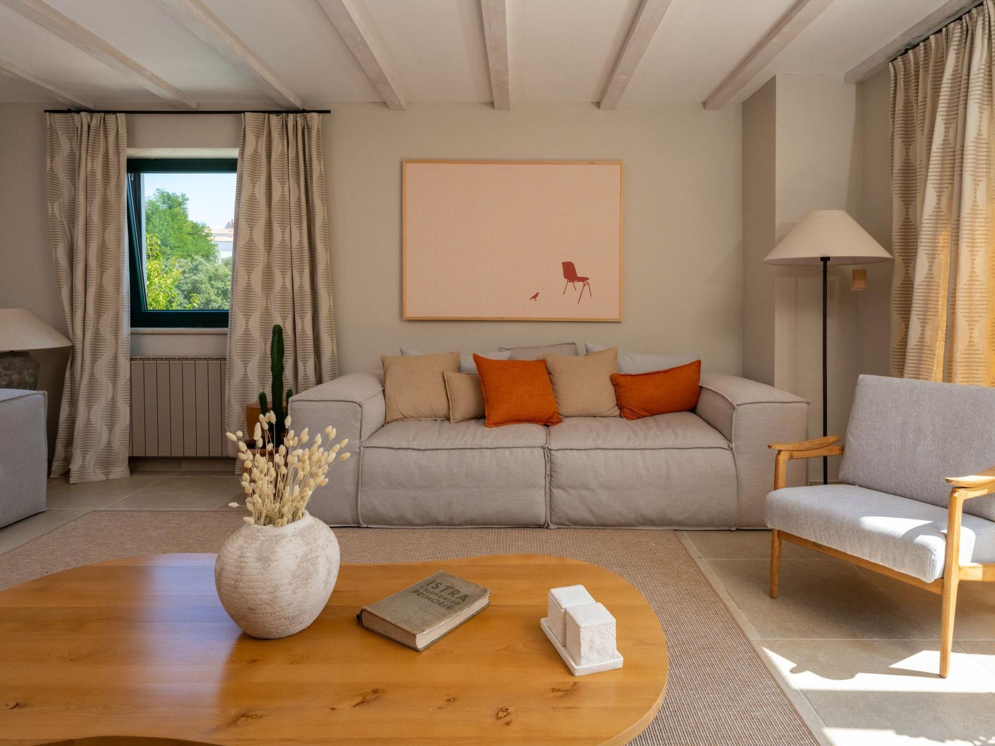 Betreten Sie das Wohnzimmer, wo modernes Design mit neutraler Farbpalette und stilvollen Möbeln auf Eleganz trifft. Es bietet den perfekten Raum für Freizeitmomente oder gesellige Zusammenkünfte.