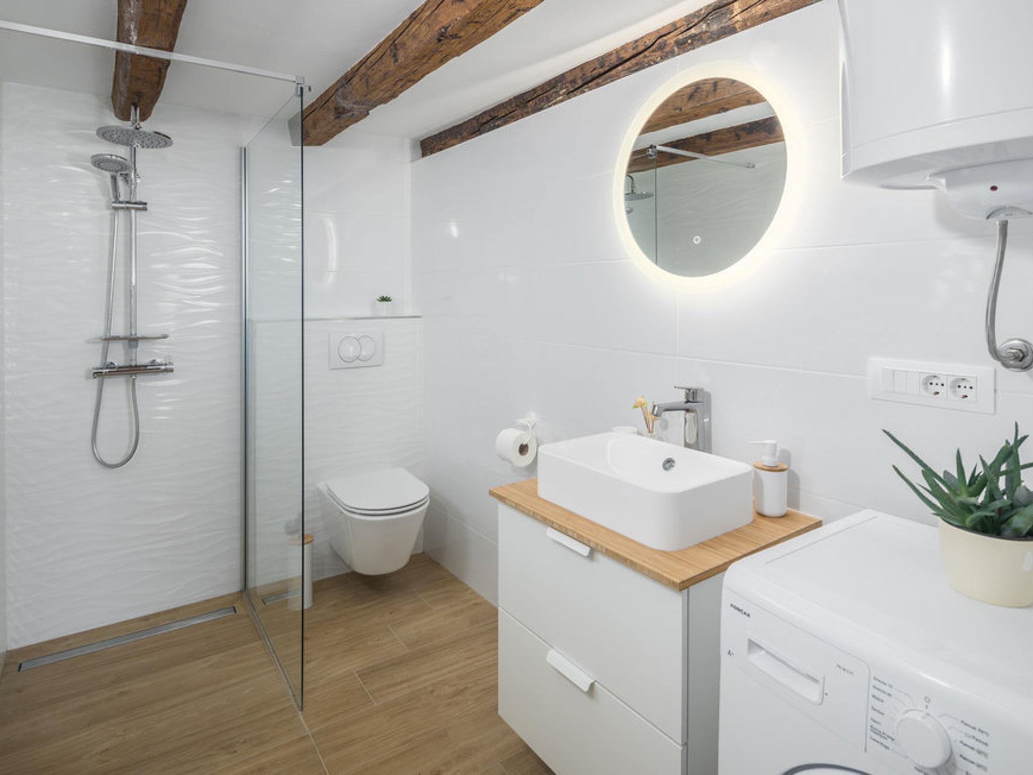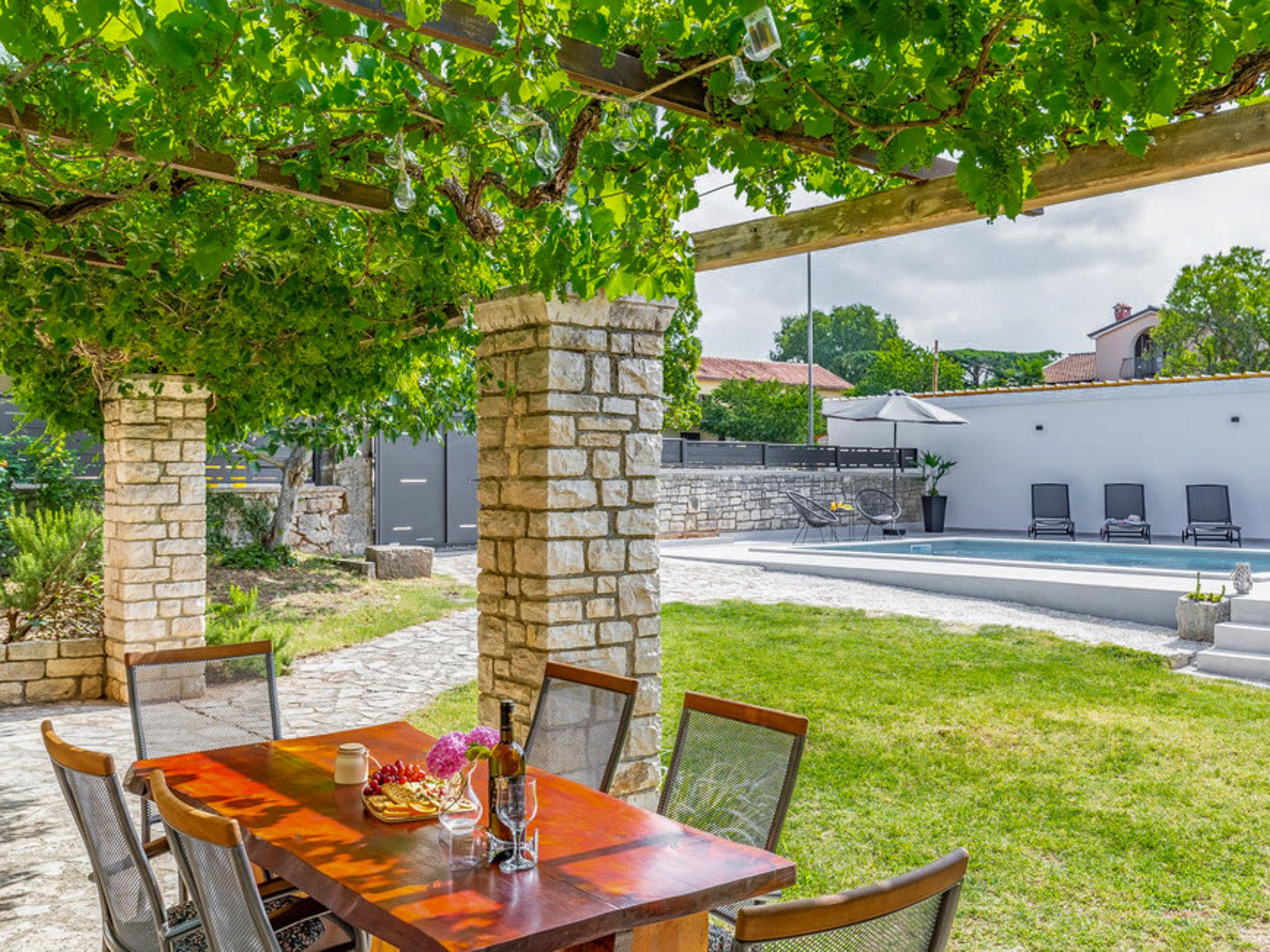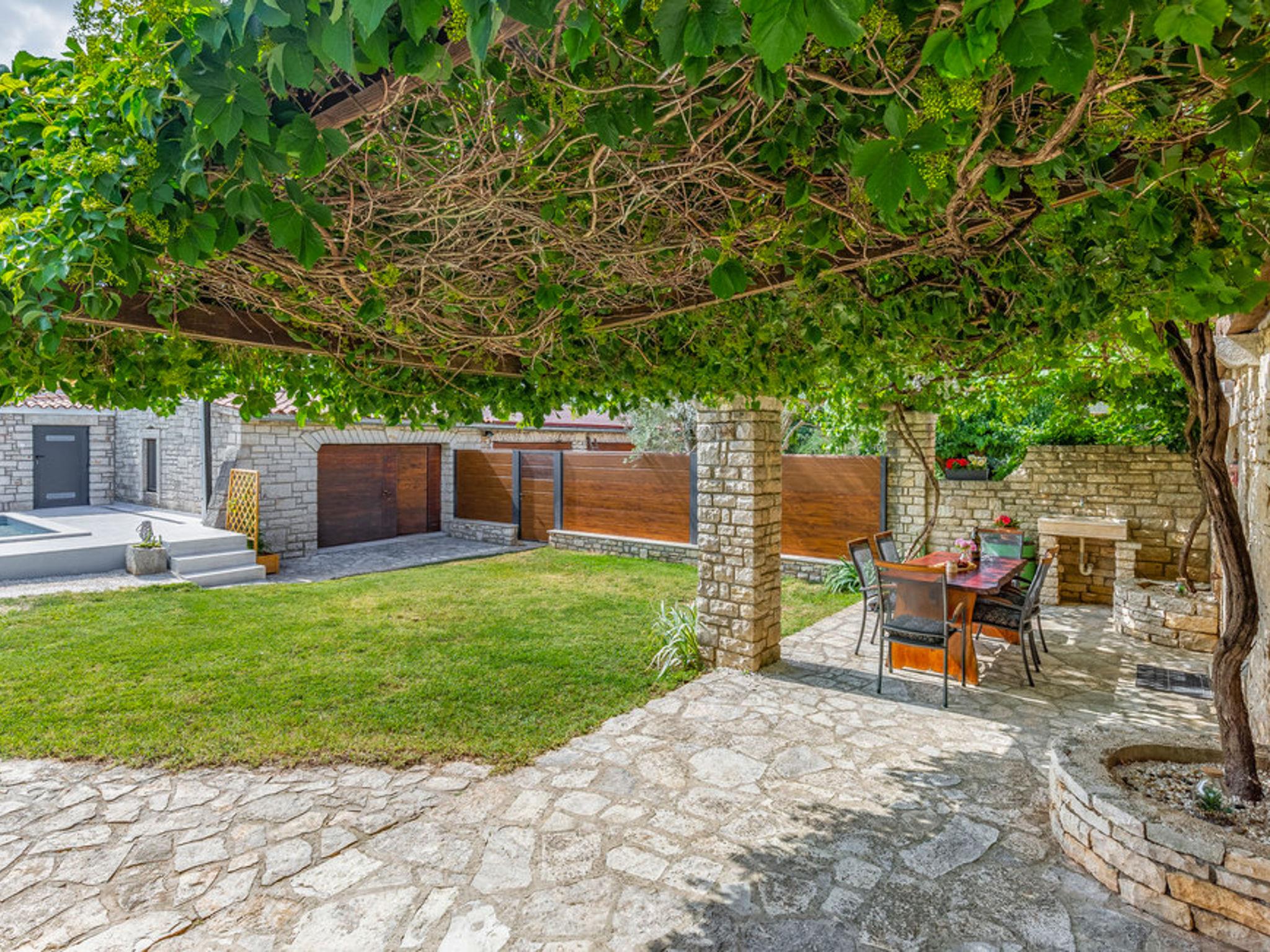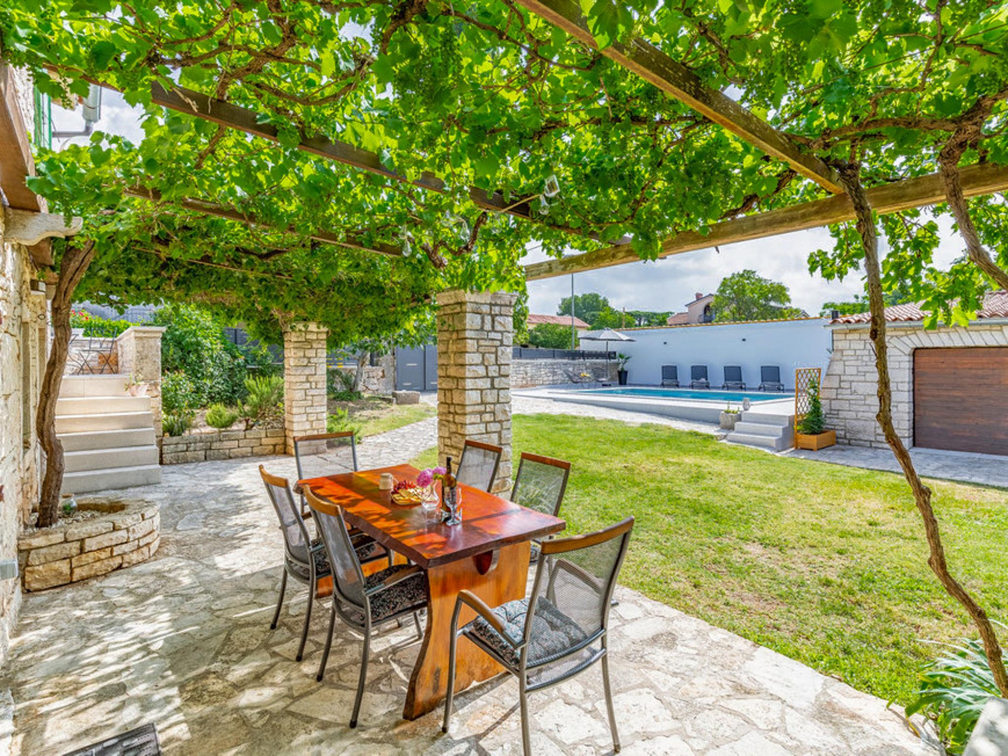 Brajkovici 9 km von Rovinj: Doppelhaus "Courtyard Ivini", auf 2 Stockwerken. Im Ort, 6 km vom Zentrum von Rovinjsko selo, 10 km vom Meer, im Grünen. Zur Alleinbenutzung: Grundstück 316 m2 (eingezäunt) mit Rasen, Schwimmbad eckig (7 x 4 m, 28 m2, 135 cm tief, saisonale Verfügbarkeit: 01.Mai. und 30.Sep.) mit Innentreppe. Aussendusche, Terrasse (15 m2), Gartenmöbel, Grill. Im Hause: Internetzugang, Waschmaschine. Parkplatz beim Haus auf dem Grundstück, öffentliche Parkplätze auf der Strasse. Einkaufsgeschäft 6 km, Supermarkt 9 km, Restaurant 3 km, Bushaltestelle 500 m. Bitte beachten: geeignet für Familien.
