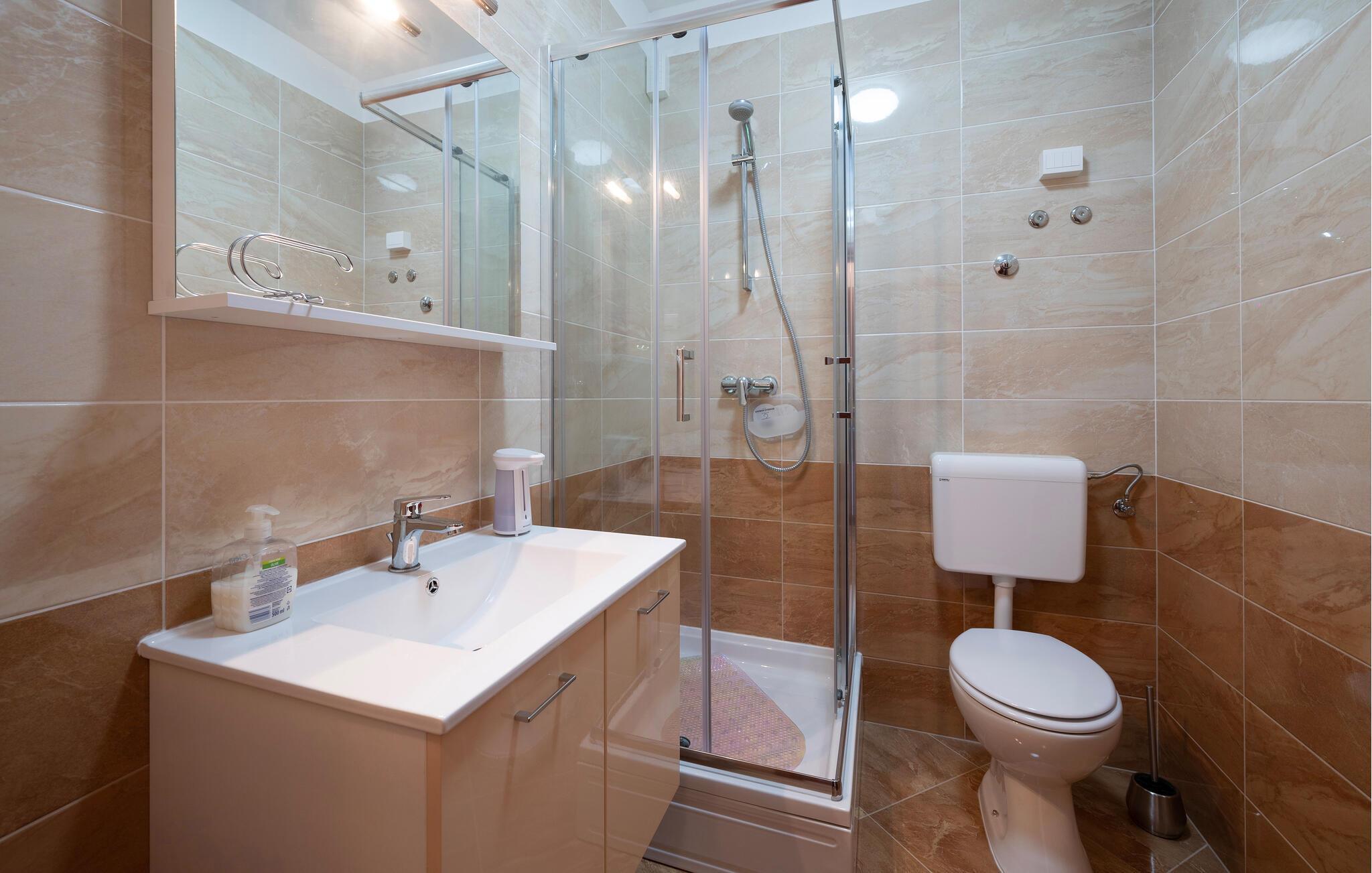 Badezimmer 4m2 (nr. 1) - WC. Warmes und kaltes Wasser. Dusche