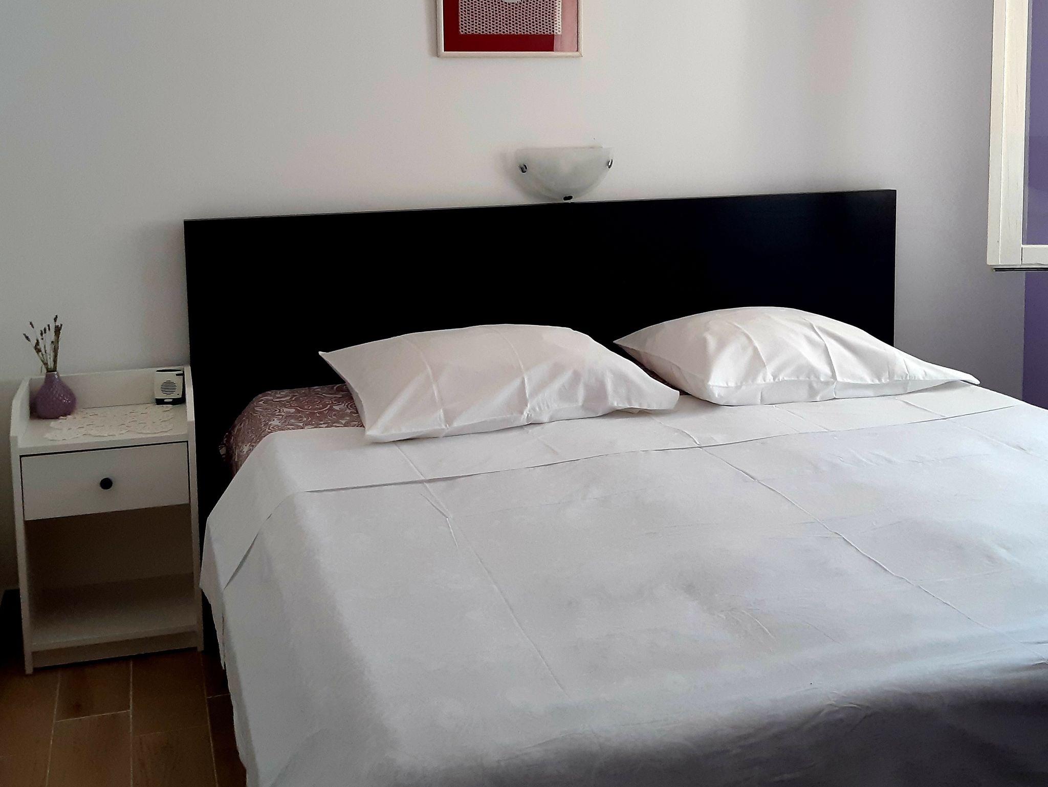 Ferienwohnung bietet Platz für 4 Gäste. Die Betten sind in Schlafzimmern, die es 2 gibt, innerhalb einer Gesamtfläche von 36m2, angeordnet. Die Gäste haben eine eigene Terrasse zur Verfügung, auf der sie in warmen Sommernächten genießen können. Das Apartment bietet Meerblick. Es ist erlaubt, Speisen auf dem Gemeinschafts-Grill vorzubereiten. In der Unterkunftseinheit besteht die Möglichkeit des Mitbringens von Haustieren gegen Aufpreis. IM PREIS INBEGRIFFEN: Kurtaxe, Endreinigung, Bootsanlegeplatz, Transport zum Objekt (mit dem Boot des Vermieters), Liegestühle. VERBINDLICHE ZUSÄTZLICHE KOSTEN: Aufzahlung für Kurzaufenthalte (prozentualer Zuschlag pro Nächtigungsanzahl: 30% - 1, 20% - 2, 10% - 3). UNVERBINDLICHE ZUSÄTZLICHE KOSTEN: Haustiere (5,00 € pro Nacht). Die Verfügbarkeit zusätzlicher Dienstleistungen in Ihrem reservierten Termin und die Preise derselben (falls nicht aufgeführt) müssen im Voraus überprüft werden. Zusätzliche Dienstleistungen die in der Zahlungsaufforderung nicht aufgeführt sind werden direkt beim Vermieter bezahlt, angenommen der Gast nutzt auch diese.