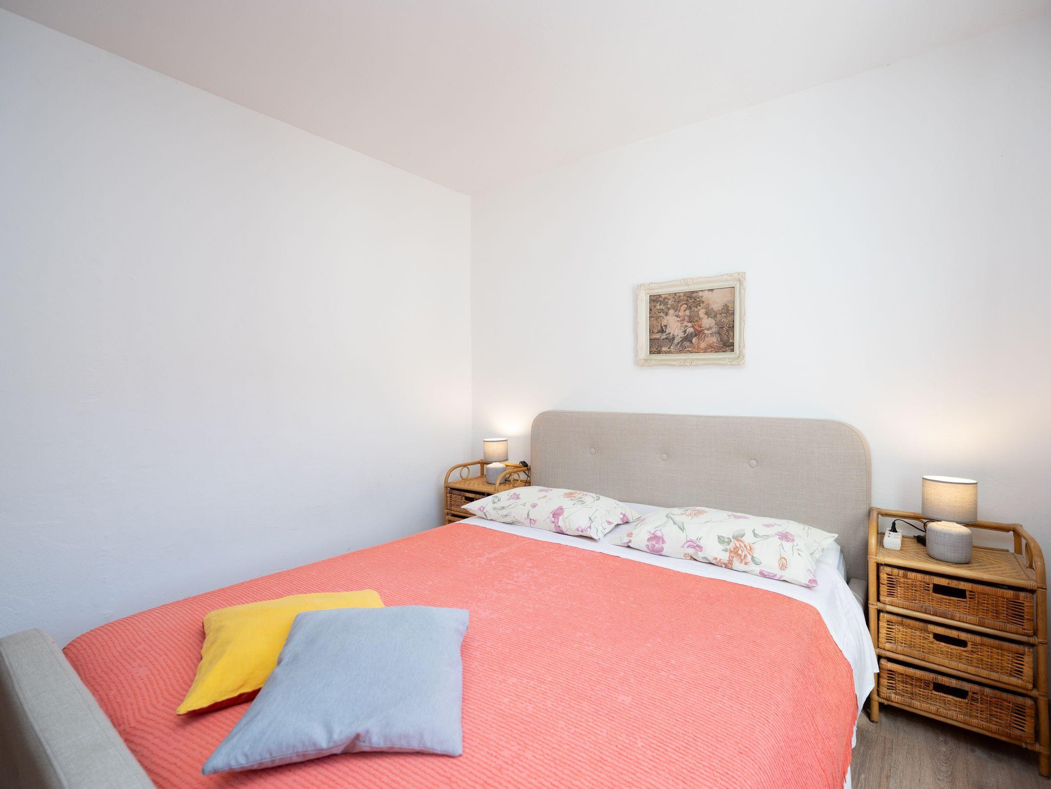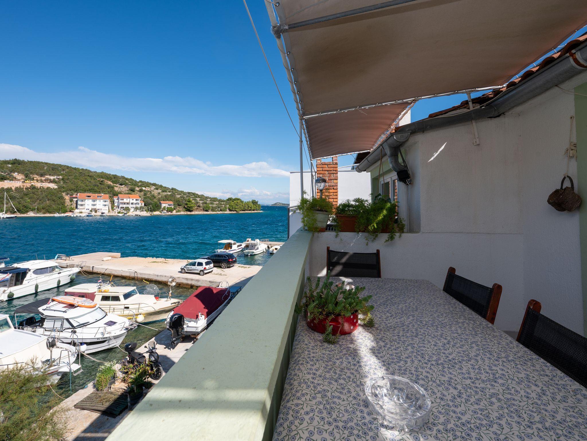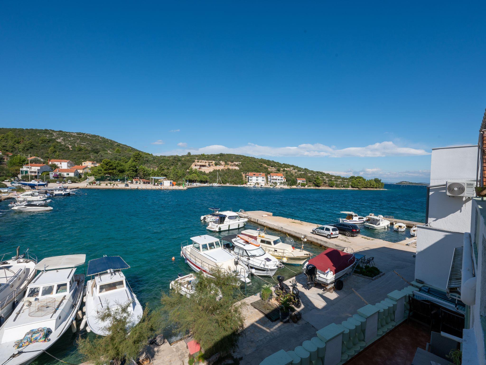 Ferienwohnung bietet Platz für 5 Gäste. Die Betten sind in Schlafzimmern, die es 2 gibt, und in Esszimmer, innerhalb einer Gesamtfläche von 50m2, angeordnet. Die Gäste haben eine eigene Terrasse zur Verfügung, auf der sie in warmen Sommernächten genießen können. Das Apartment bietet Meerblick. Es ist erlaubt, Speisen auf dem Gemeinschafts-Grill vorzubereiten. In der Unterkunftseinheit besteht die Möglichkeit des Mitbringens von Haustieren gegen Aufpreis. IM PREIS INBEGRIFFEN: Kurtaxe, Endreinigung, Klimatisierung, Internet, Bootsanlegeplatz, Kinderbett, Bügeleisen, Bügelbrett, Föhn, Liegestühle. VERBINDLICHE ZUSÄTZLICHE KOSTEN: Aufzahlung für Kurzaufenthalte (prozentualer Zuschlag pro Nächtigungsanzahl: 30% - 1, 20% - 2, 10% - 3). UNVERBINDLICHE ZUSÄTZLICHE KOSTEN: Wäschewaschen (5,00 € Waschen), Haustiere (5,00 € pro Nacht), Zusatzbett (10,00 € pro Nacht). Die Verfügbarkeit zusätzlicher Dienstleistungen in Ihrem reservierten Termin und die Preise derselben (falls nicht aufgeführt) müssen im Voraus überprüft werden. Zusätzliche Dienstleistungen die in der Zahlungsaufforderung nicht aufgeführt sind werden direkt beim Vermieter bezahlt, angenommen der Gast nutzt auch diese.