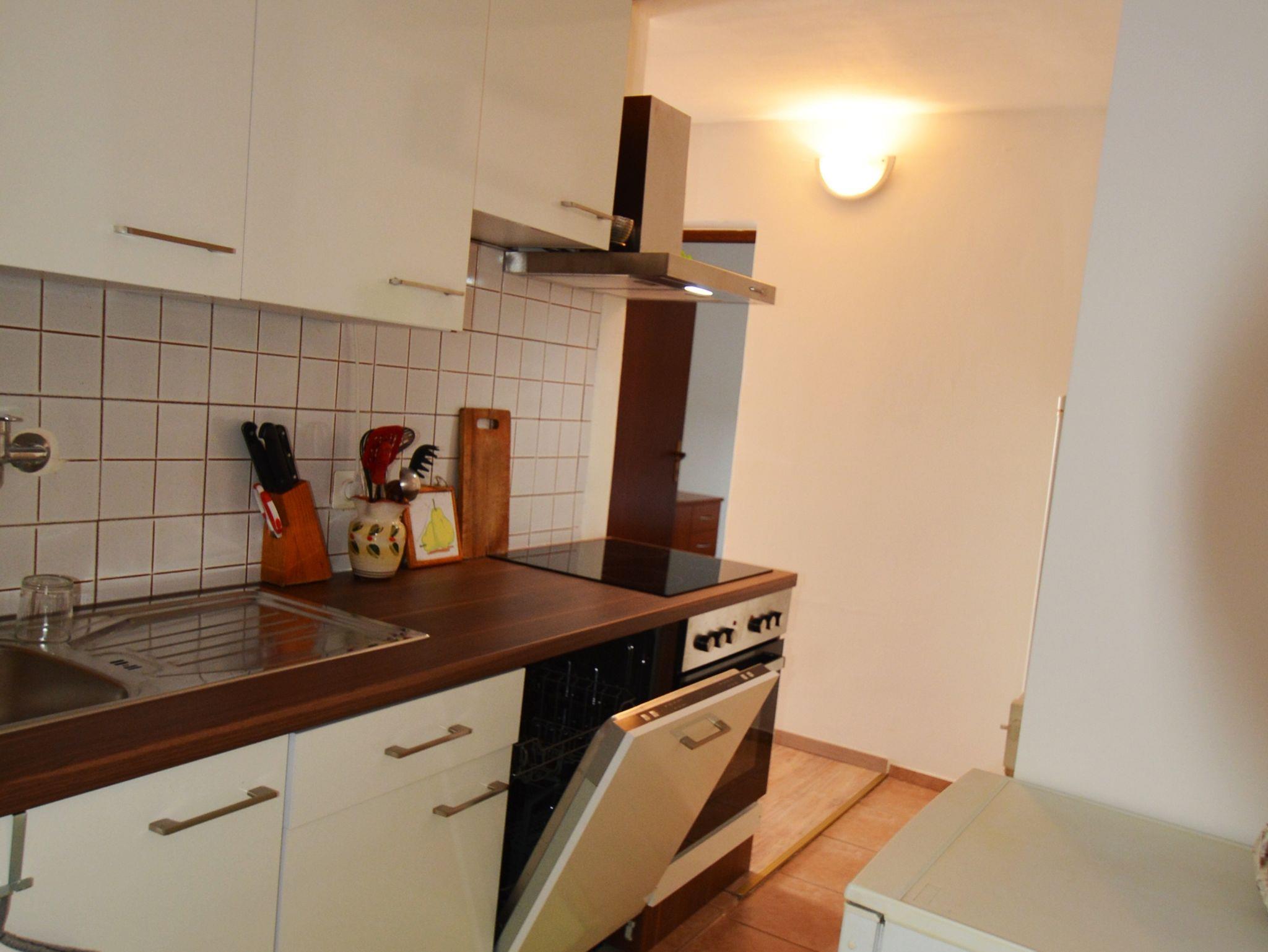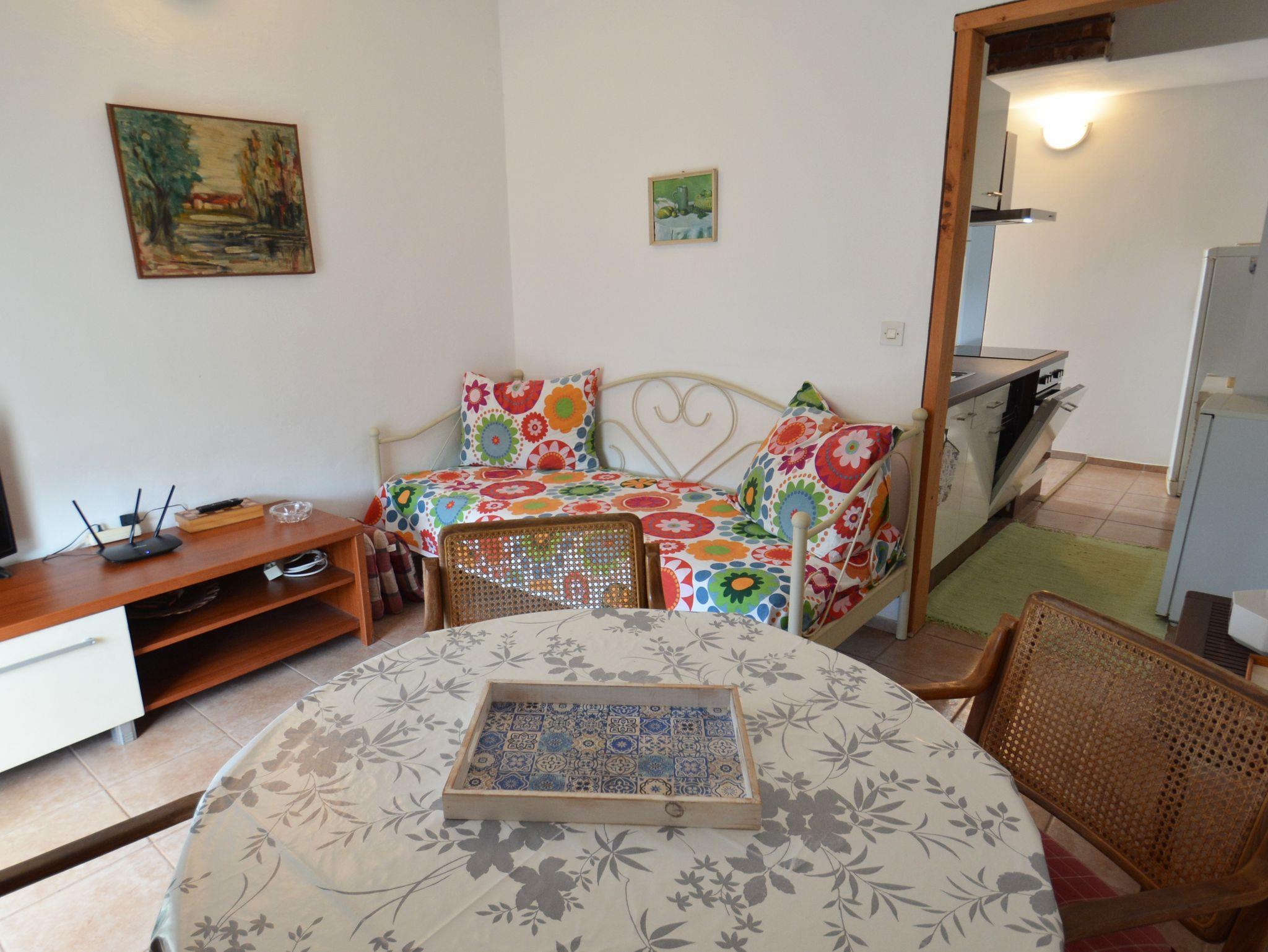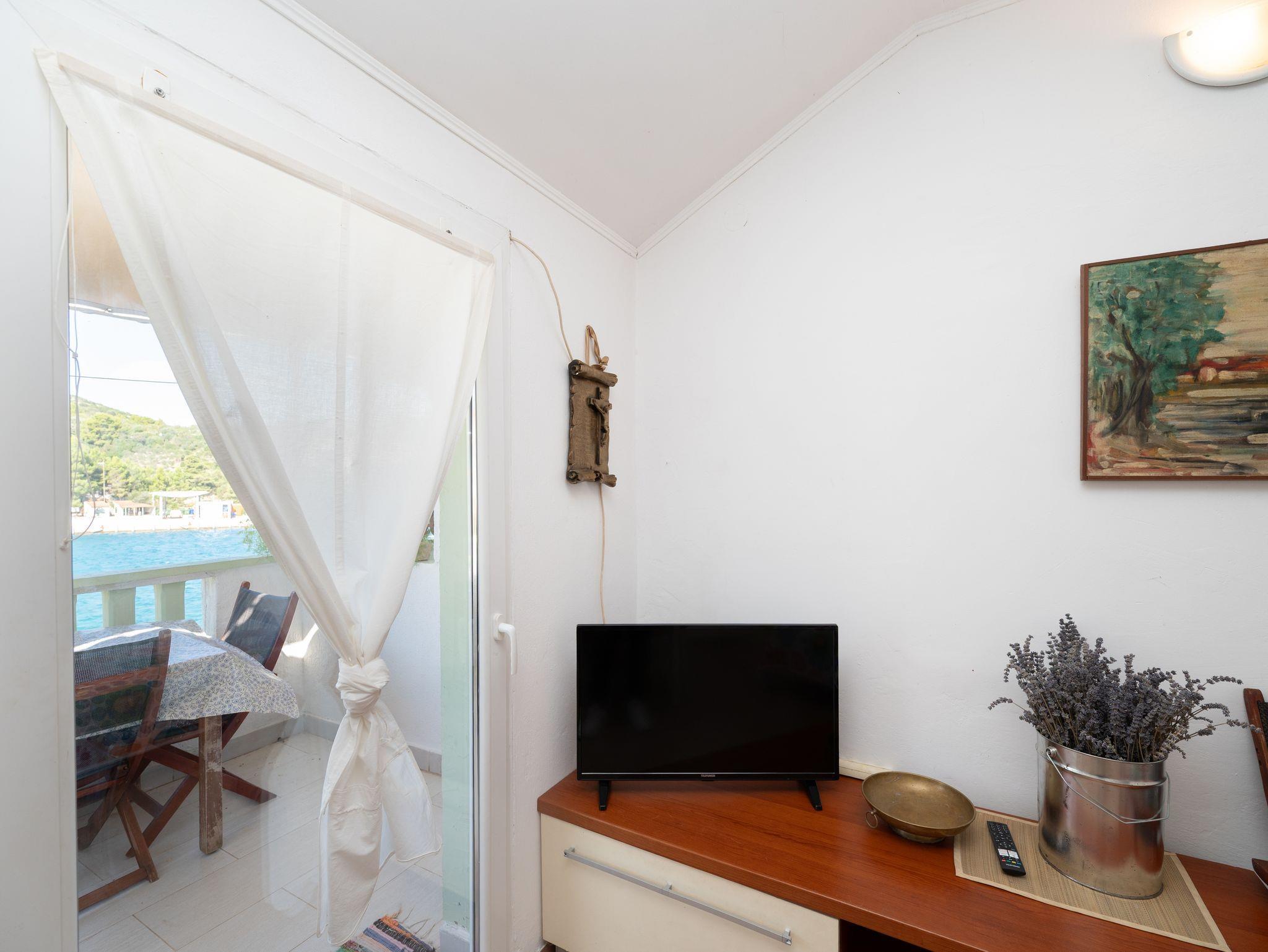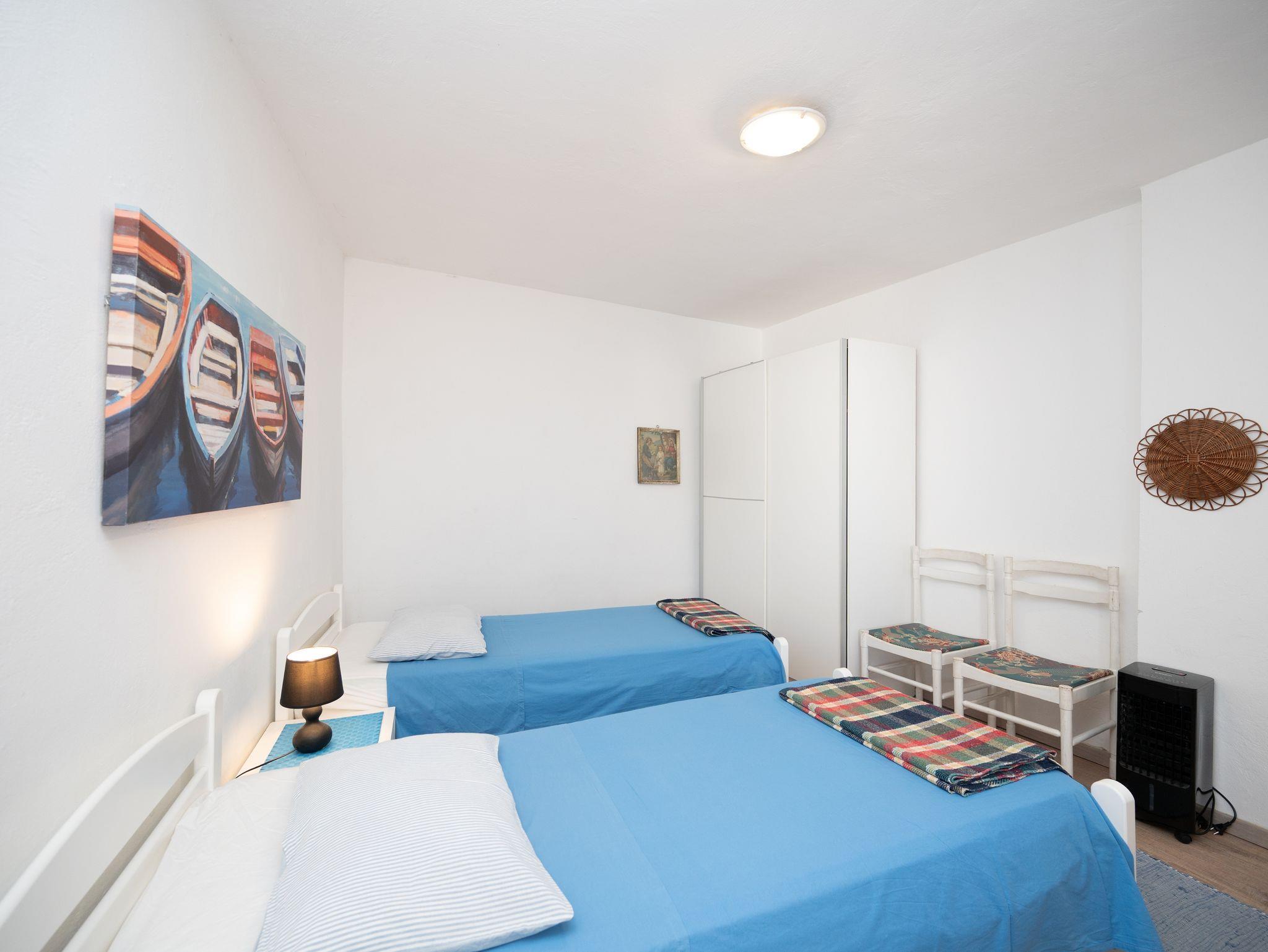 Ferienwohnung bietet Platz für 5 Gäste. Die Betten sind in Schlafzimmern, die es 2 gibt, und in Esszimmer, innerhalb einer Gesamtfläche von 50m2, angeordnet. Die Gäste haben eine eigene Terrasse zur Verfügung, auf der sie in warmen Sommernächten genießen können. Das Apartment bietet Meerblick. Es ist erlaubt, Speisen auf dem Gemeinschafts-Grill vorzubereiten. In der Unterkunftseinheit besteht die Möglichkeit des Mitbringens von Haustieren gegen Aufpreis. IM PREIS INBEGRIFFEN: Kurtaxe, Endreinigung, Klimatisierung, Internet, Bootsanlegeplatz, Kinderbett, Bügeleisen, Bügelbrett, Föhn, Liegestühle. VERBINDLICHE ZUSÄTZLICHE KOSTEN: Aufzahlung für Kurzaufenthalte (prozentualer Zuschlag pro Nächtigungsanzahl: 30% - 1, 20% - 2, 10% - 3). UNVERBINDLICHE ZUSÄTZLICHE KOSTEN: Wäschewaschen (5,00 € Waschen), Haustiere (5,00 € pro Nacht), Zusatzbett (10,00 € pro Nacht). Die Verfügbarkeit zusätzlicher Dienstleistungen in Ihrem reservierten Termin und die Preise derselben (falls nicht aufgeführt) müssen im Voraus überprüft werden. Zusätzliche Dienstleistungen die in der Zahlungsaufforderung nicht aufgeführt sind werden direkt beim Vermieter bezahlt, angenommen der Gast nutzt auch diese.