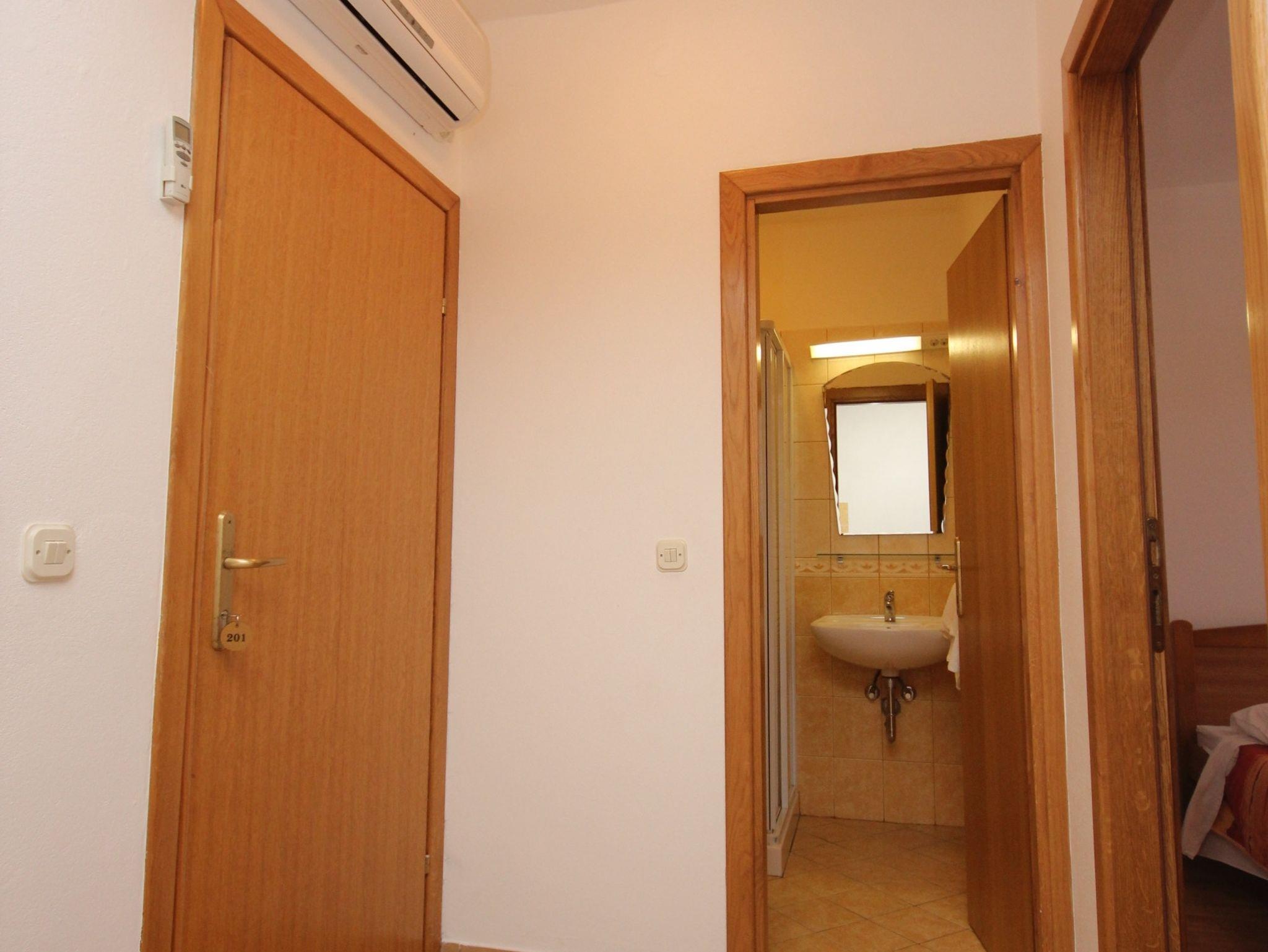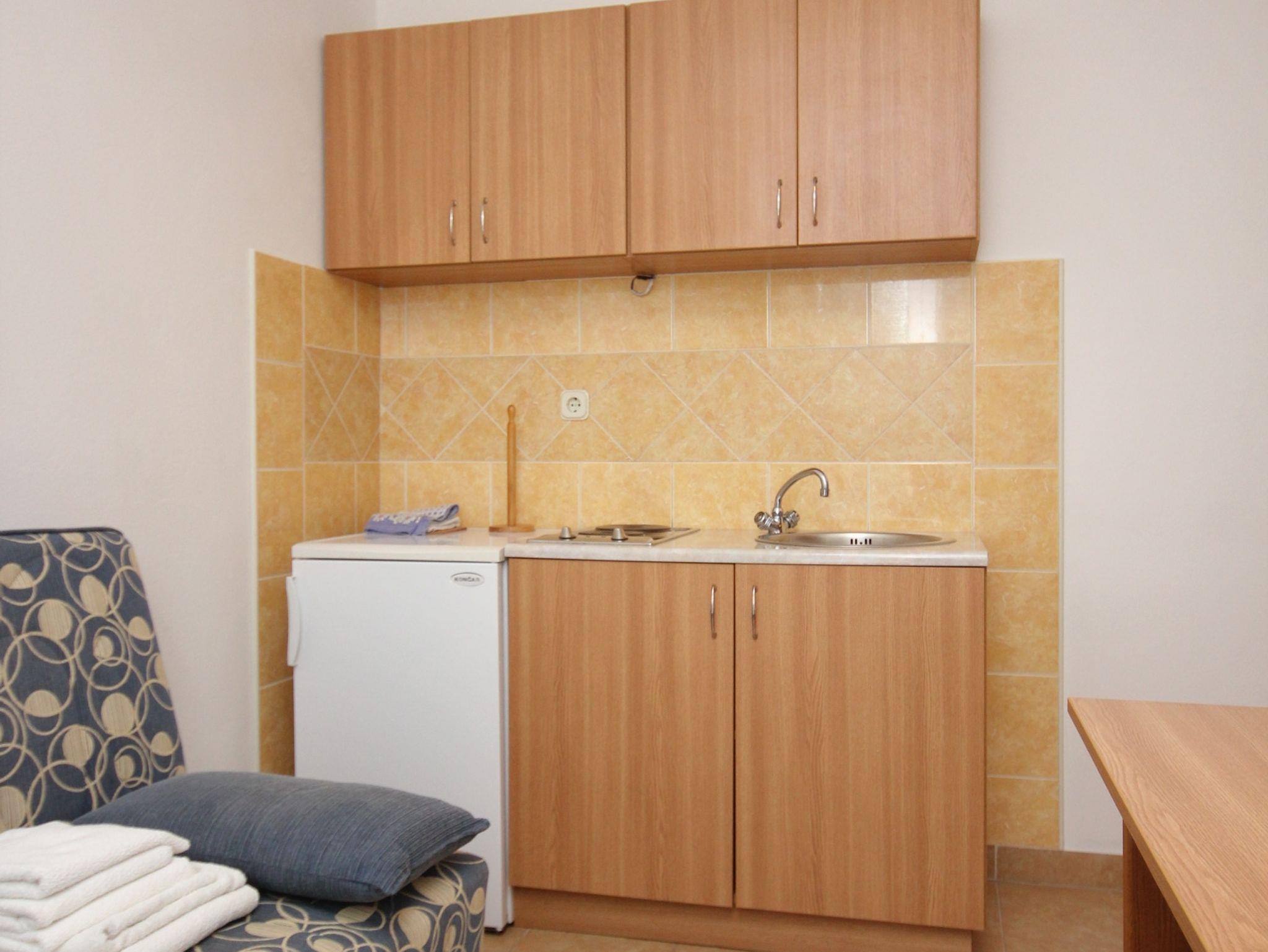 Ferienwohnung bietet Platz für 3 Gäste. Die Betten sind in Schlafzimmern, die es 1 gibt, und in Esszimmer, innerhalb einer Gesamtfläche von 22m2, angeordnet. Die Gäste haben eine eigene Terrasse zur Verfügung, auf der sie in warmen Sommernächten genießen können. Das Apartment bietet Meerblick. Es ist erlaubt, Speisen auf dem Gemeinschafts-Grill vorzubereiten. IM PREIS INBEGRIFFEN: Kurtaxe, Endreinigung, Klimatisierung, Internet, Bügeleisen, Bügelbrett. VERBINDLICHE ZUSÄTZLICHE KOSTEN: Aufzahlung für Kurzaufenthalte (prozentualer Zuschlag pro Nächtigungsanzahl: 30% - 1, 20% - 2, 10% - 3). Die Verfügbarkeit zusätzlicher Dienstleistungen in Ihrem reservierten Termin und die Preise derselben (falls nicht aufgeführt) müssen im Voraus überprüft werden. Zusätzliche Dienstleistungen die in der Zahlungsaufforderung nicht aufgeführt sind werden direkt beim Vermieter bezahlt, angenommen der Gast nutzt auch diese. Ermäßigung auf den Grundpreis: Gratistag 14=13 (bei einem Aufenthalt von 14 Tagen oder mehr erhalten Sie einen Gratistag für den Aufenthalt bis 31.12.26).