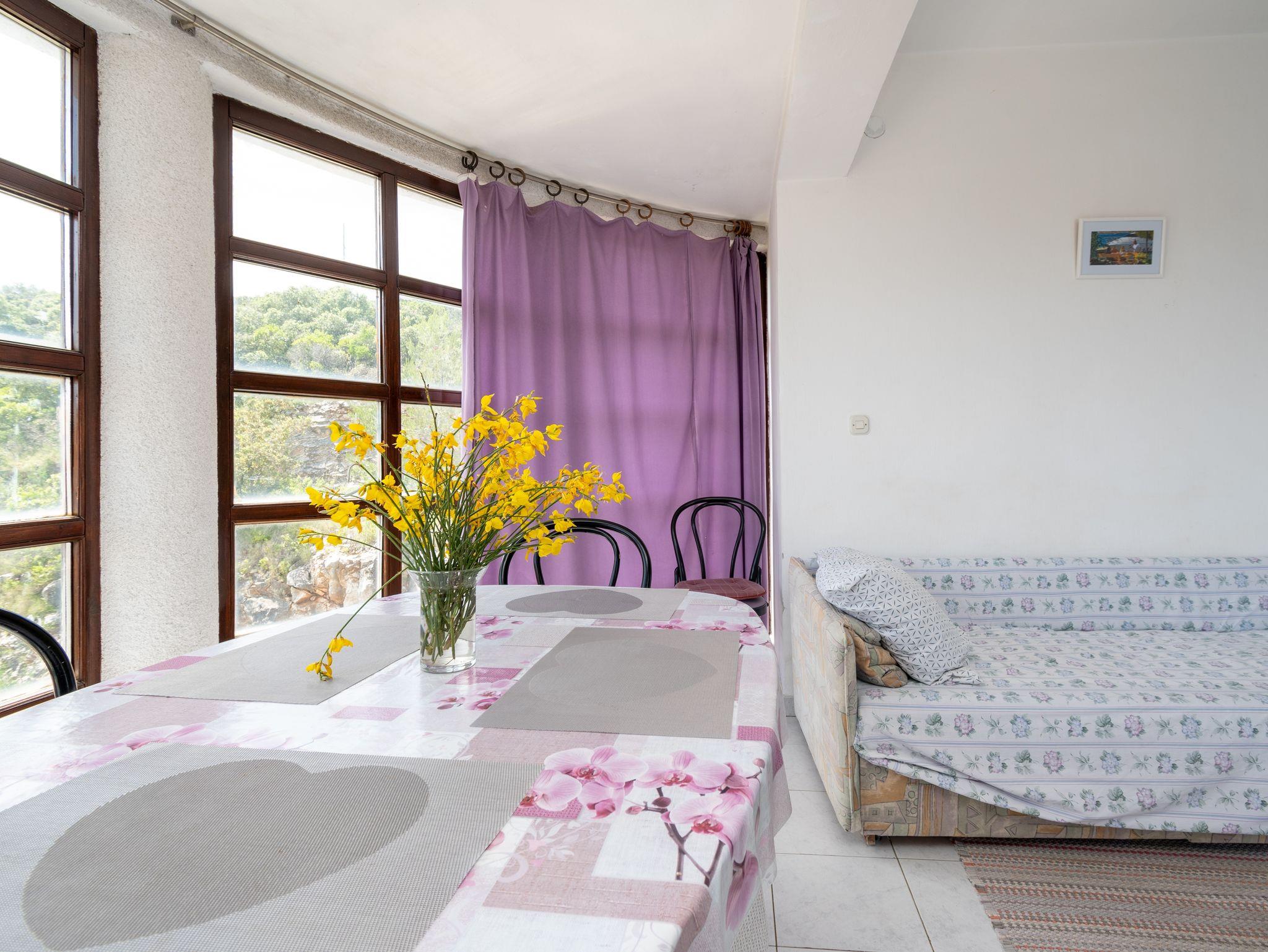 Ferienwohnung bietet Platz für 3 Gäste. Die Betten sind in Schlafzimmern, die es 1 gibt, und in Wohnzimmer, innerhalb einer Gesamtfläche von 42m2, angeordnet. Die Gäste haben eine eigene Terrasse zur Verfügung, auf der sie in warmen Sommernächten genießen können. Das Apartment bietet Meerblick. Es ist erlaubt, Speisen auf dem Gemeinschafts-Grill vorzubereiten. In der Unterkunftseinheit besteht die Möglichkeit des Mitbringens von Haustieren gegen Aufpreis. IM PREIS INBEGRIFFEN: Kurtaxe, Endreinigung, Klimatisierung, Parkplatz, Garage, Internet, Bootsanlegeplatz, Bügeleisen, Bügelbrett, Föhn, Sonnenschirm. VERBINDLICHE ZUSÄTZLICHE KOSTEN: Aufzahlung für Kurzaufenthalte (prozentualer Zuschlag pro Nächtigungsanzahl: 30% - 1, 20% - 2, 10% - 3). UNVERBINDLICHE ZUSÄTZLICHE KOSTEN: Wäschewaschen (5,00 € Waschen), Haustiere (5,00 € pro Nacht). Die Verfügbarkeit zusätzlicher Dienstleistungen in Ihrem reservierten Termin und die Preise derselben (falls nicht aufgeführt) müssen im Voraus überprüft werden. Zusätzliche Dienstleistungen die in der Zahlungsaufforderung nicht aufgeführt sind werden direkt beim Vermieter bezahlt, angenommen der Gast nutzt auch diese.