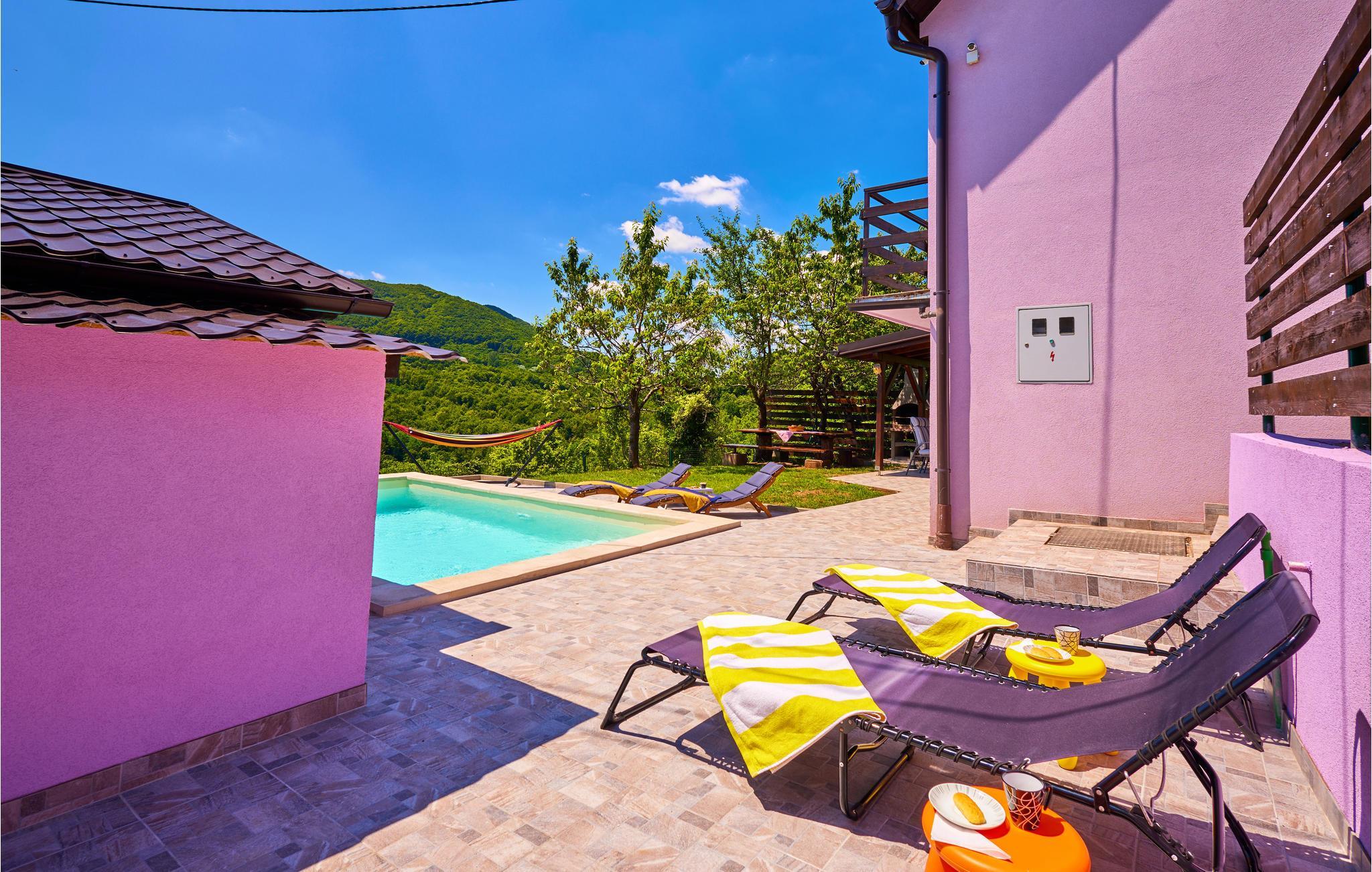 In ruhiger Lage zwischen dem Sichelgebirge und Zagreb empfängt Sie dieses praktische Ferienhaus mit Pool und Whirlpool.