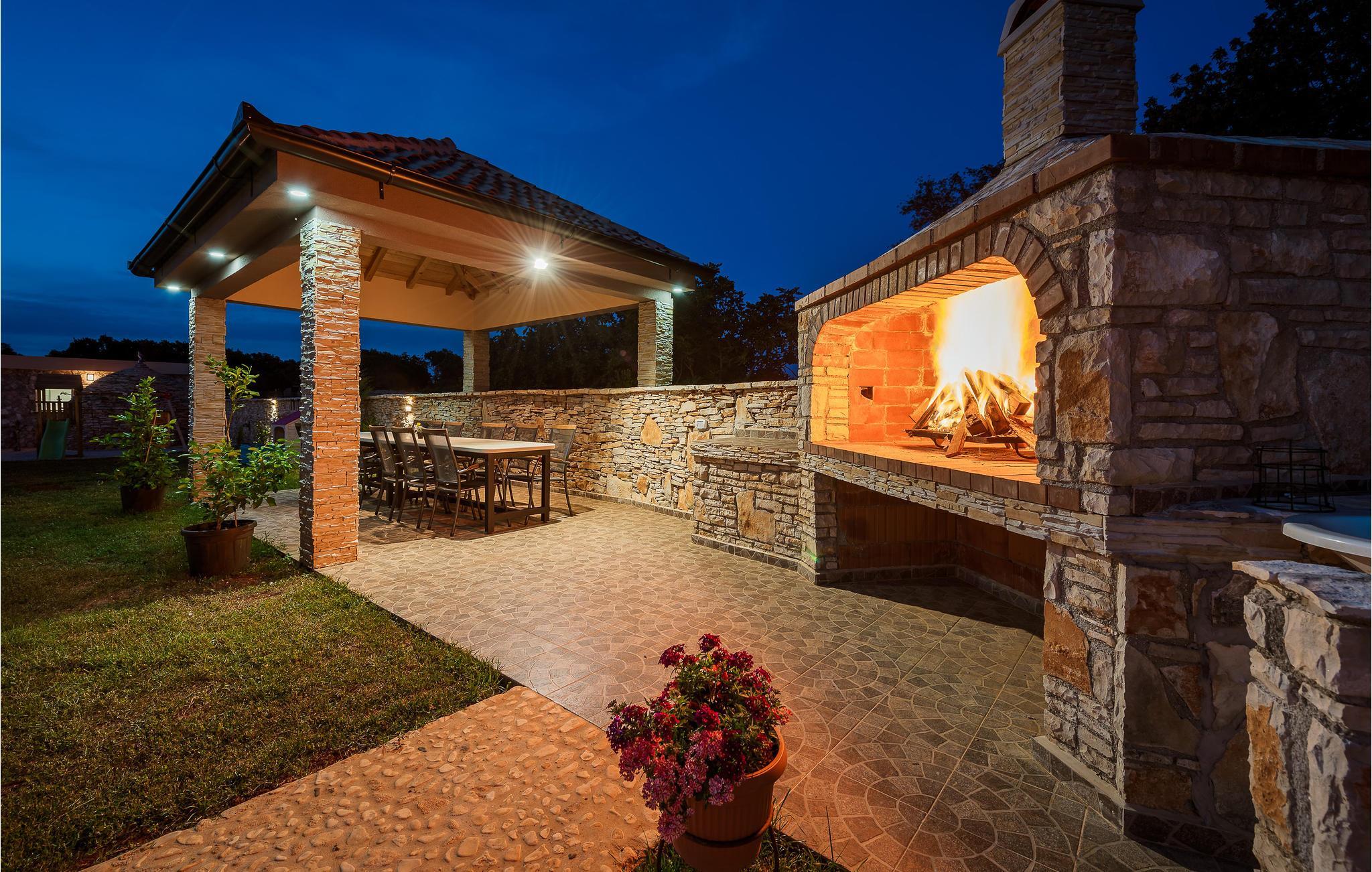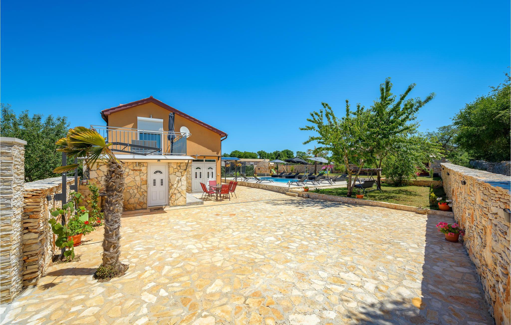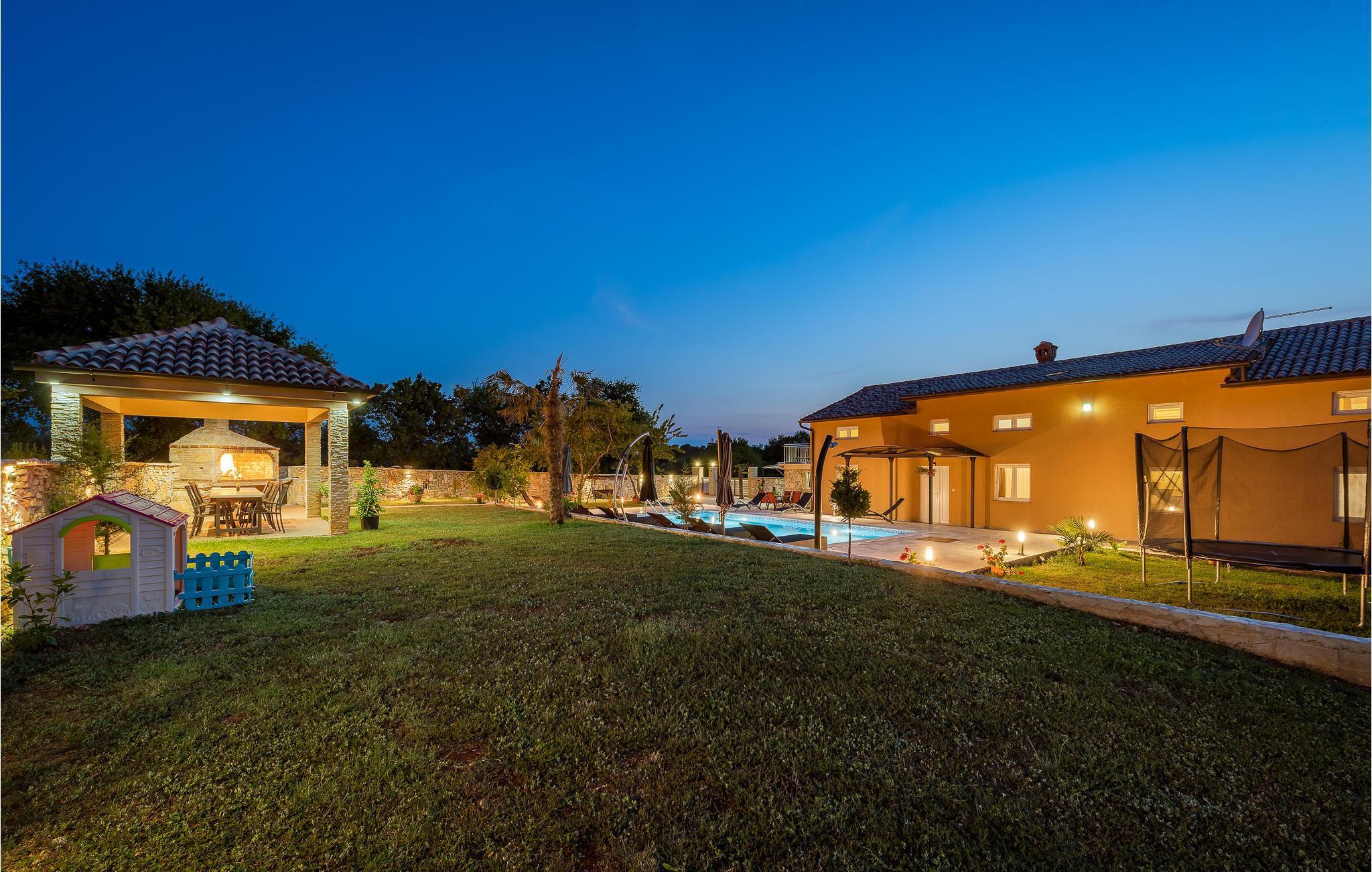 Dieses idyllische Urlaubsdomizil bietet den perfekten Rahmen für einen erholsamen Urlaub in ländlicher Umgebung. Es befindet sich in einen kleinen Dorf nahe der Altstadt von Vodnjan. Die geräumige Wohnfläche besteht in Erdgeschoss aus Küche, Wohnzimmer, Schlafzimmer und Bad, während im Obergeschoss fünf weitere Schlafzimmer und zwei Bäder eingerichtet sind. Auf dem Grundstück erwartet Sie neben dem großen Pool auch ein Wellnessraum im separaten Gebäude mit Sauna, Whirlpool und Fitnessgeräten. Außerdem verfügen Sie hier über eine Außenküche mit Grill und überdachter Terrasse, auf der Sie mit Sicherheit viele Stunden im Freien verbringen werden. Ein Besuch der Altstadt von Pula und die Besichtigung des römischen Amphitheaters ist empfehlenswert.