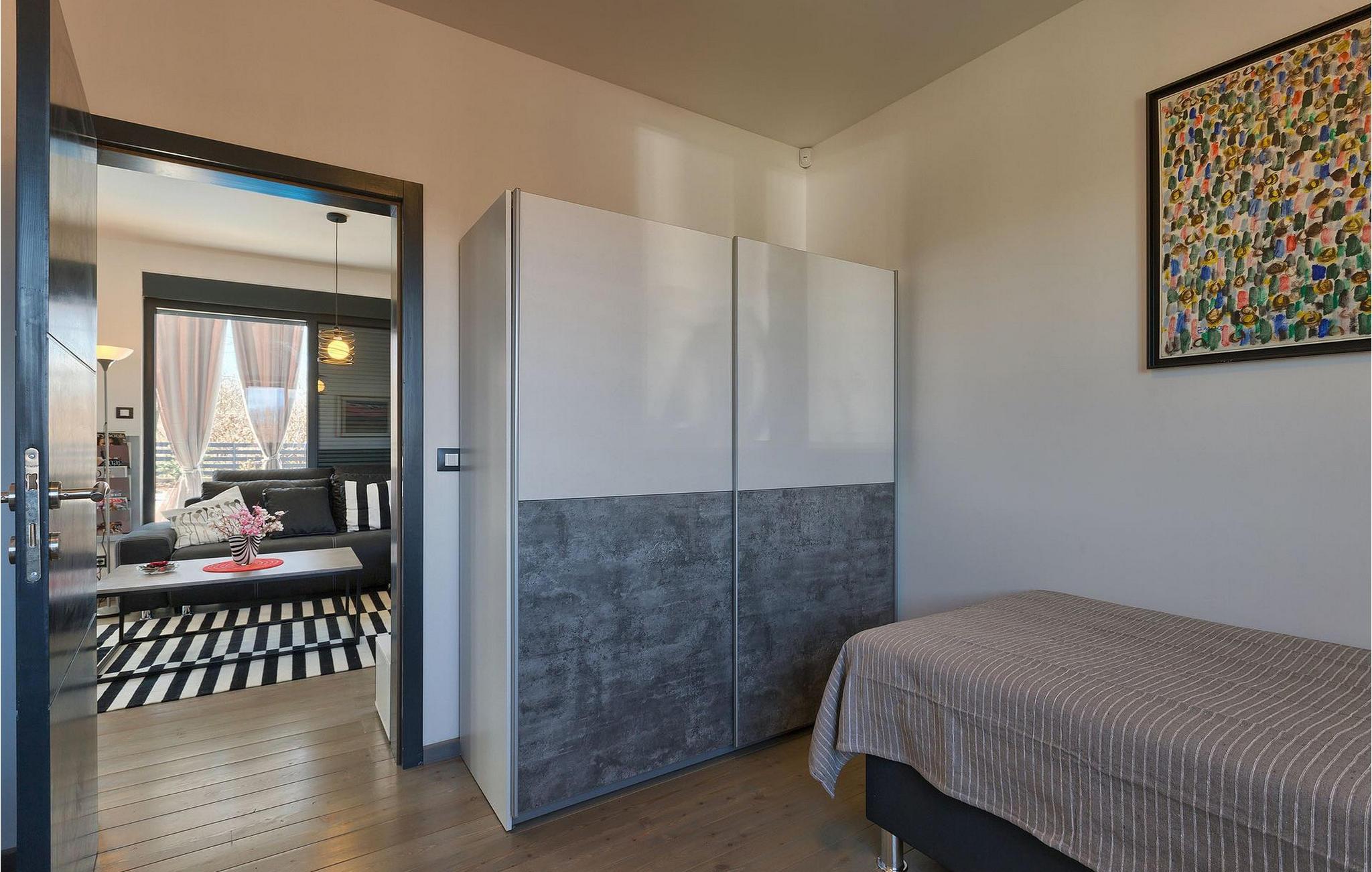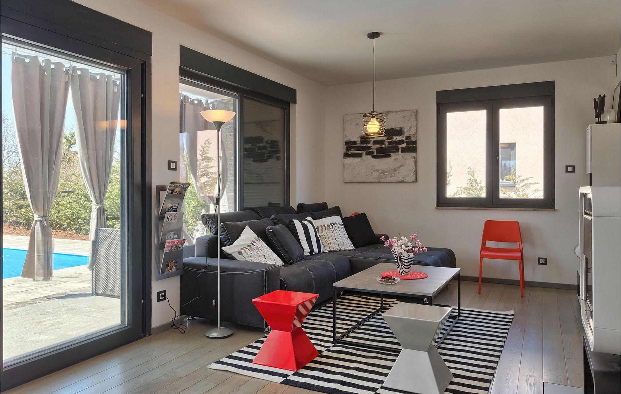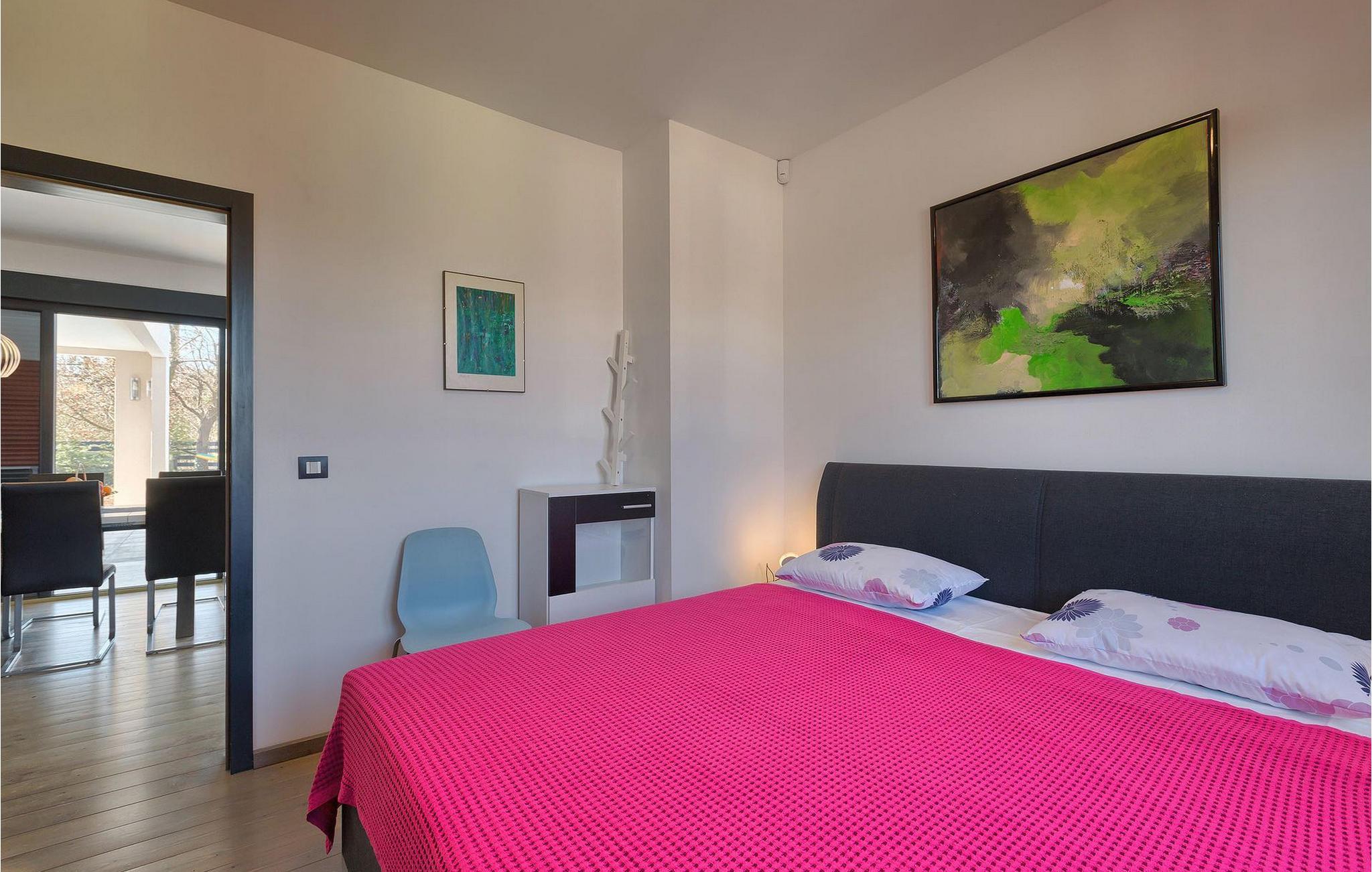 Villa Sorella 2 ist in einer ruhigen istrischen Ortschaft gelegen und ist eine ideale Unterkunft für 4 Personen in 90 Quadratmetern. Die Villa ist einfach aber stilvoll eingerichtet und besteht aus 2 Schlaf- und 2 Badezimmer. Ein Schlafzimmer verfügt über ein Doppelbett und hat ein eigenes Badezimmer. Das zweite Schlafzimmer hat 2 Einzelbetten. Das große Sofabett im Wohnzimmer bietet Platz für noch 2 zusätzliche Personen. Das Wohnzimmer ist dank der großen Glasfläche mit viel Licht durchflutet und hat auch direkten Zugang zum Pool im Garten der Villa. Das Wohnzimmer ist mit dem Essbereich und der völlig ausgestatteten Küche verbunden. Die Küche ist jedoch nicht der einzige Platz, wo Sie Ihre Mahlzeiten zubereiten können; auf der geräumigen überdachten Terrasse vor der Villa stehen Ihnen ein elektrischer Grill, sowie ein Waschbecken und Geschirr zur Verfügung. Ein Holzkohlengrill steht Ihnen auch zur Verfügung. Falls Sie Ihren Urlaub mit Kindern verbringen, außer im privaten Pool, können sie auch Spaß mit Badminton oder auf der Rutsche und der Schaukel haben. Villa Sorella 2 bietet alles was Sie für einen vollkommend erholsamen Urlaub brauchen.Beide Villen, Sorella 1 und Sorella 2, befinden sich in einem ruhigen istrischen Dorf, das eine perfekte Mischung aus Ruhe und Entspannung weit weg von der Stadthektik ist. Doch die bekannten Urlaubsziele an der Küste, wie z.B. Pula und Rovinj, sind leicht zu erreichen. Zentralistrien ist eine wunderschöne Region mit vielen kleinen mittelalterlichen Städtchen mit guten Restaurants, Cafés, Weingütern und Geschäften. Svetvincenat und Vodnjan sind zwei solche Städtchen und sind innerhalb 10 km von der Villa entfernt. Während Sie Ihren Urlaub in der Ruhe dieser Zentralistrischen Ortschaft verbringen, können Sie die Gelegenheit nutzen, Fažana und die schönen umliegenden Strände zu besuchen oder die Möglichkeit nutzen, mit dem Boot zu einem der Nationalparks in Kroatien - Brijuni zu fahren.