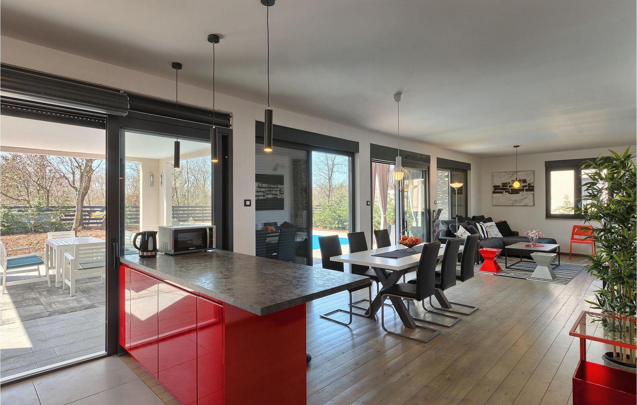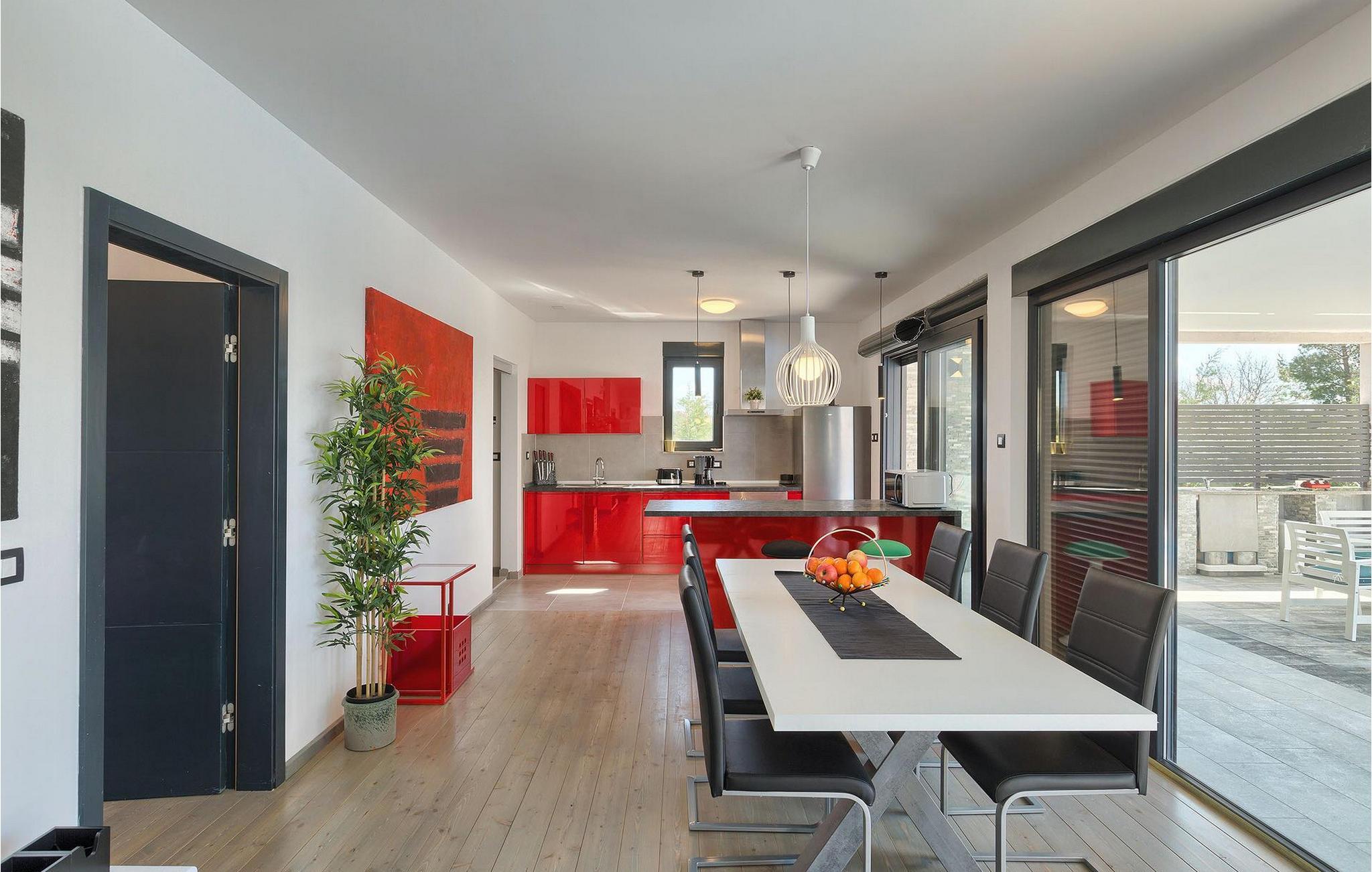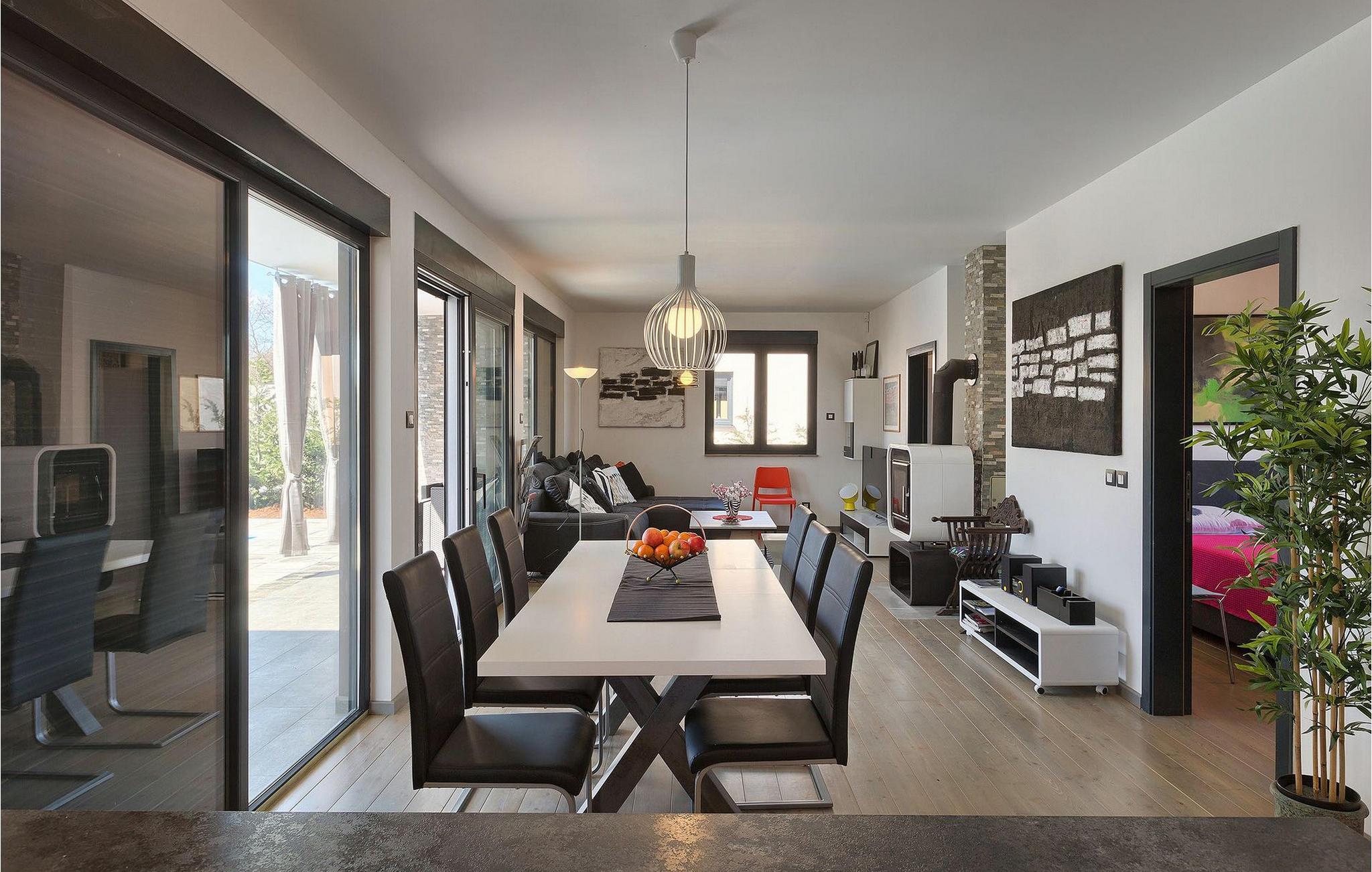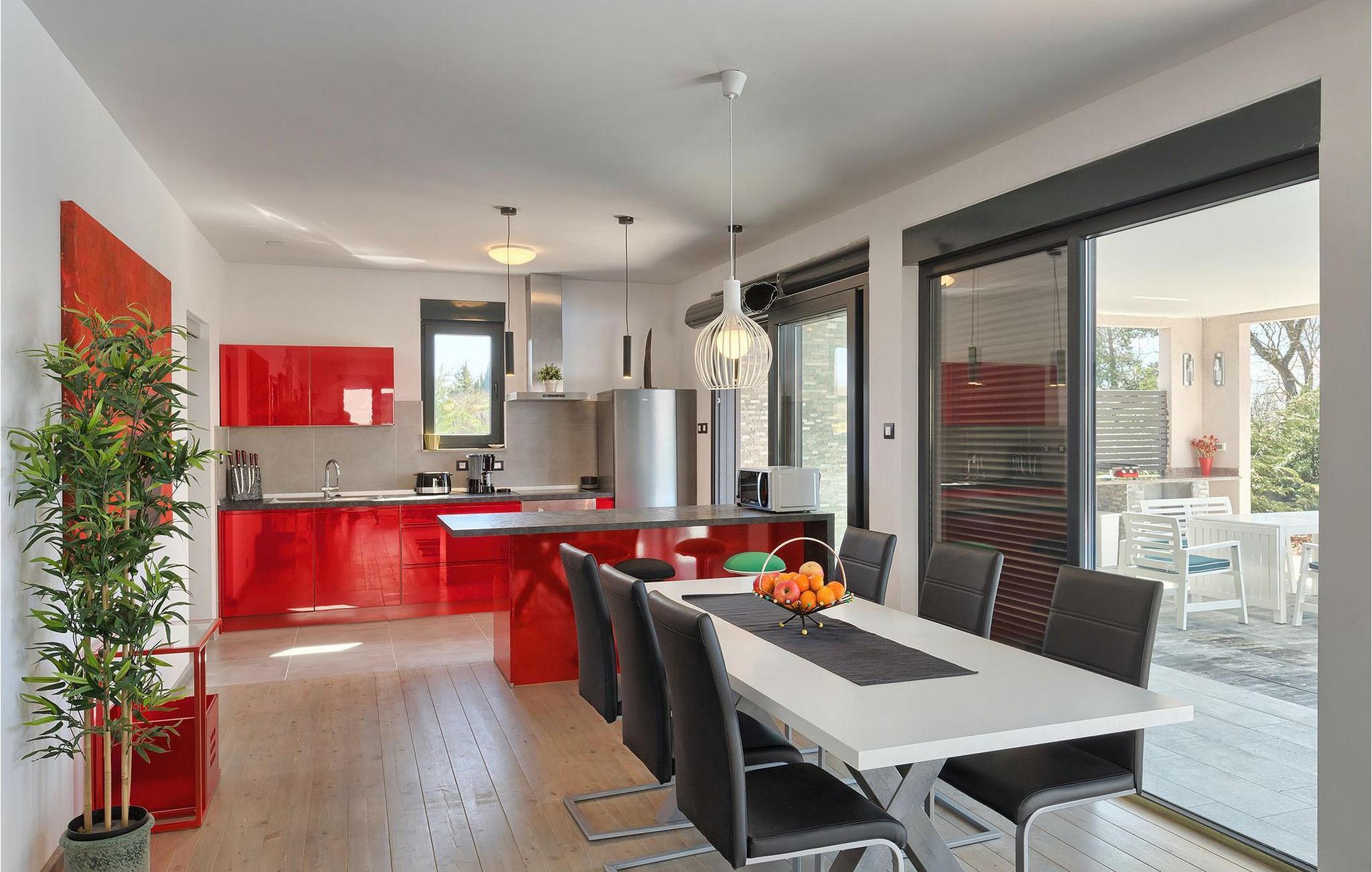 Villa Sorella 2 ist in einer ruhigen istrischen Ortschaft gelegen und ist eine ideale Unterkunft für 4 Personen in 90 Quadratmetern. Die Villa ist einfach aber stilvoll eingerichtet und besteht aus 2 Schlaf- und 2 Badezimmer. Ein Schlafzimmer verfügt über ein Doppelbett und hat ein eigenes Badezimmer. Das zweite Schlafzimmer hat 2 Einzelbetten. Das große Sofabett im Wohnzimmer bietet Platz für noch 2 zusätzliche Personen. Das Wohnzimmer ist dank der großen Glasfläche mit viel Licht durchflutet und hat auch direkten Zugang zum Pool im Garten der Villa. Das Wohnzimmer ist mit dem Essbereich und der völlig ausgestatteten Küche verbunden. Die Küche ist jedoch nicht der einzige Platz, wo Sie Ihre Mahlzeiten zubereiten können; auf der geräumigen überdachten Terrasse vor der Villa stehen Ihnen ein elektrischer Grill, sowie ein Waschbecken und Geschirr zur Verfügung. Ein Holzkohlengrill steht Ihnen auch zur Verfügung. Falls Sie Ihren Urlaub mit Kindern verbringen, außer im privaten Pool, können sie auch Spaß mit Badminton oder auf der Rutsche und der Schaukel haben. Villa Sorella 2 bietet alles was Sie für einen vollkommend erholsamen Urlaub brauchen.Beide Villen, Sorella 1 und Sorella 2, befinden sich in einem ruhigen istrischen Dorf, das eine perfekte Mischung aus Ruhe und Entspannung weit weg von der Stadthektik ist. Doch die bekannten Urlaubsziele an der Küste, wie z.B. Pula und Rovinj, sind leicht zu erreichen. Zentralistrien ist eine wunderschöne Region mit vielen kleinen mittelalterlichen Städtchen mit guten Restaurants, Cafés, Weingütern und Geschäften. Svetvincenat und Vodnjan sind zwei solche Städtchen und sind innerhalb 10 km von der Villa entfernt. Während Sie Ihren Urlaub in der Ruhe dieser Zentralistrischen Ortschaft verbringen, können Sie die Gelegenheit nutzen, Fažana und die schönen umliegenden Strände zu besuchen oder die Möglichkeit nutzen, mit dem Boot zu einem der Nationalparks in Kroatien - Brijuni zu fahren.