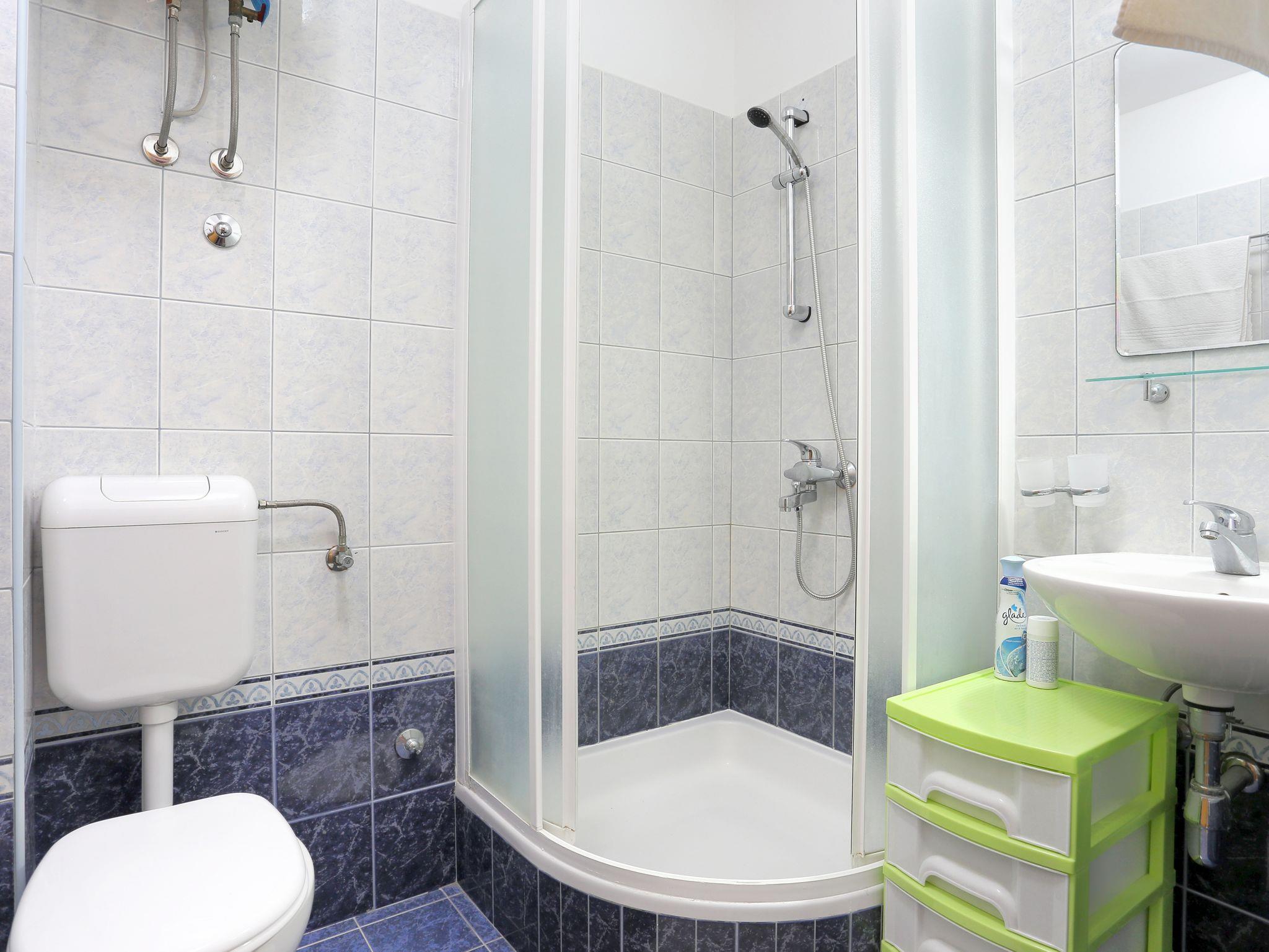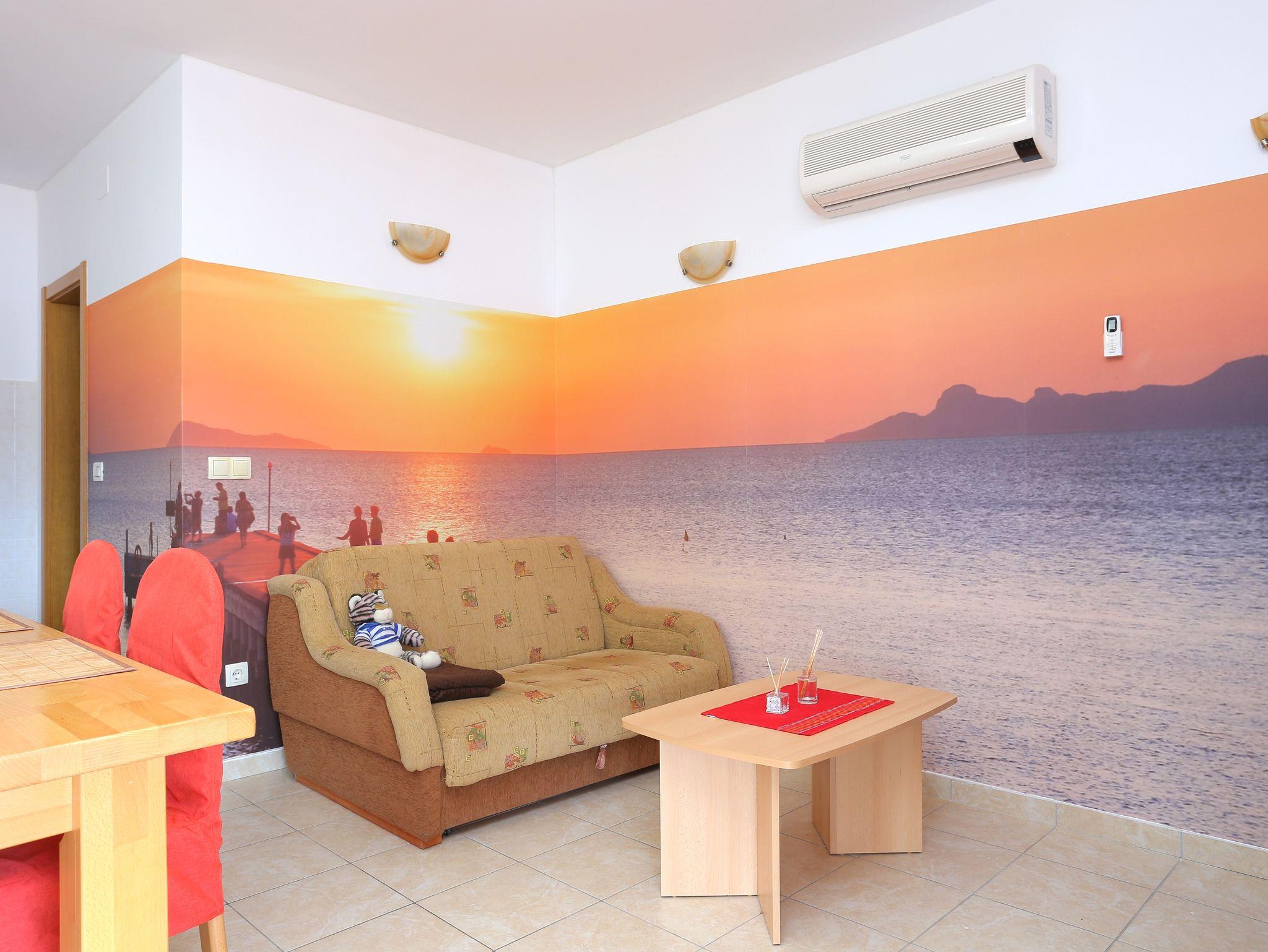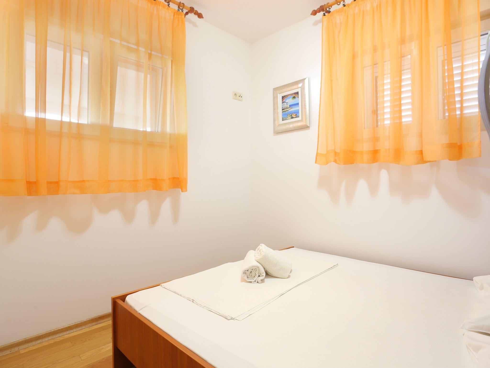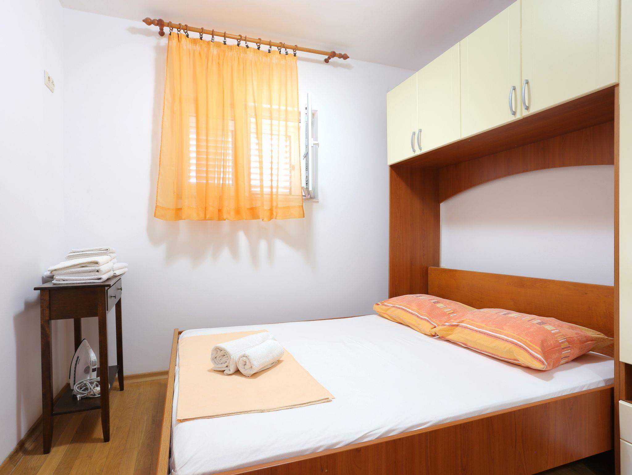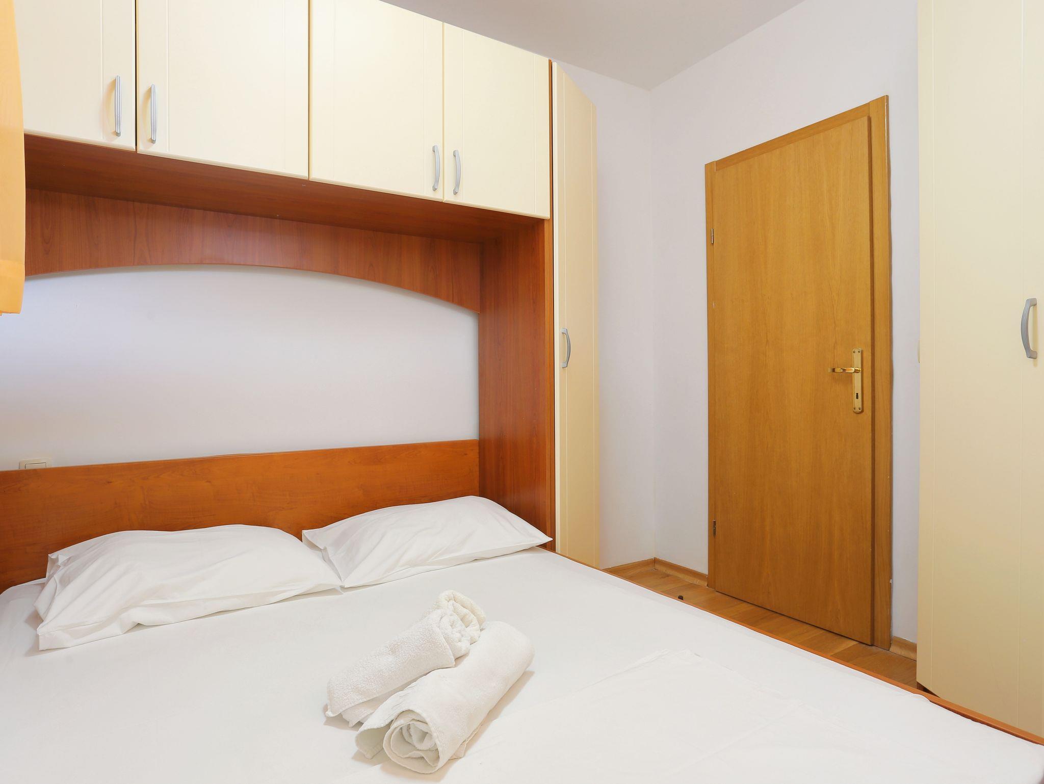 Ferienwohnung bietet Platz für 4 Gäste. Die Betten sind in Schlafzimmern, die es 2 gibt, innerhalb einer Gesamtfläche von 34m2, angeordnet. Die Gäste haben eine eigene Terrasse zur Verfügung, auf der sie in warmen Sommernächten genießen können. Das Apartment bietet Meerblick. Es ist erlaubt, Speisen auf dem Gemeinschafts-Grill vorzubereiten. IM PREIS INBEGRIFFEN: Kurtaxe, Endreinigung, Klimatisierung, Parkplatz, Internet. VERBINDLICHE ZUSÄTZLICHE KOSTEN: Aufzahlung für Kurzaufenthalte (prozentualer Zuschlag pro Nächtigungsanzahl: 30% - 1, 20% - 2, 10% - 3). Die Verfügbarkeit zusätzlicher Dienstleistungen in Ihrem reservierten Termin und die Preise derselben (falls nicht aufgeführt) müssen im Voraus überprüft werden. Zusätzliche Dienstleistungen die in der Zahlungsaufforderung nicht aufgeführt sind werden direkt beim Vermieter bezahlt, angenommen der Gast nutzt auch diese.