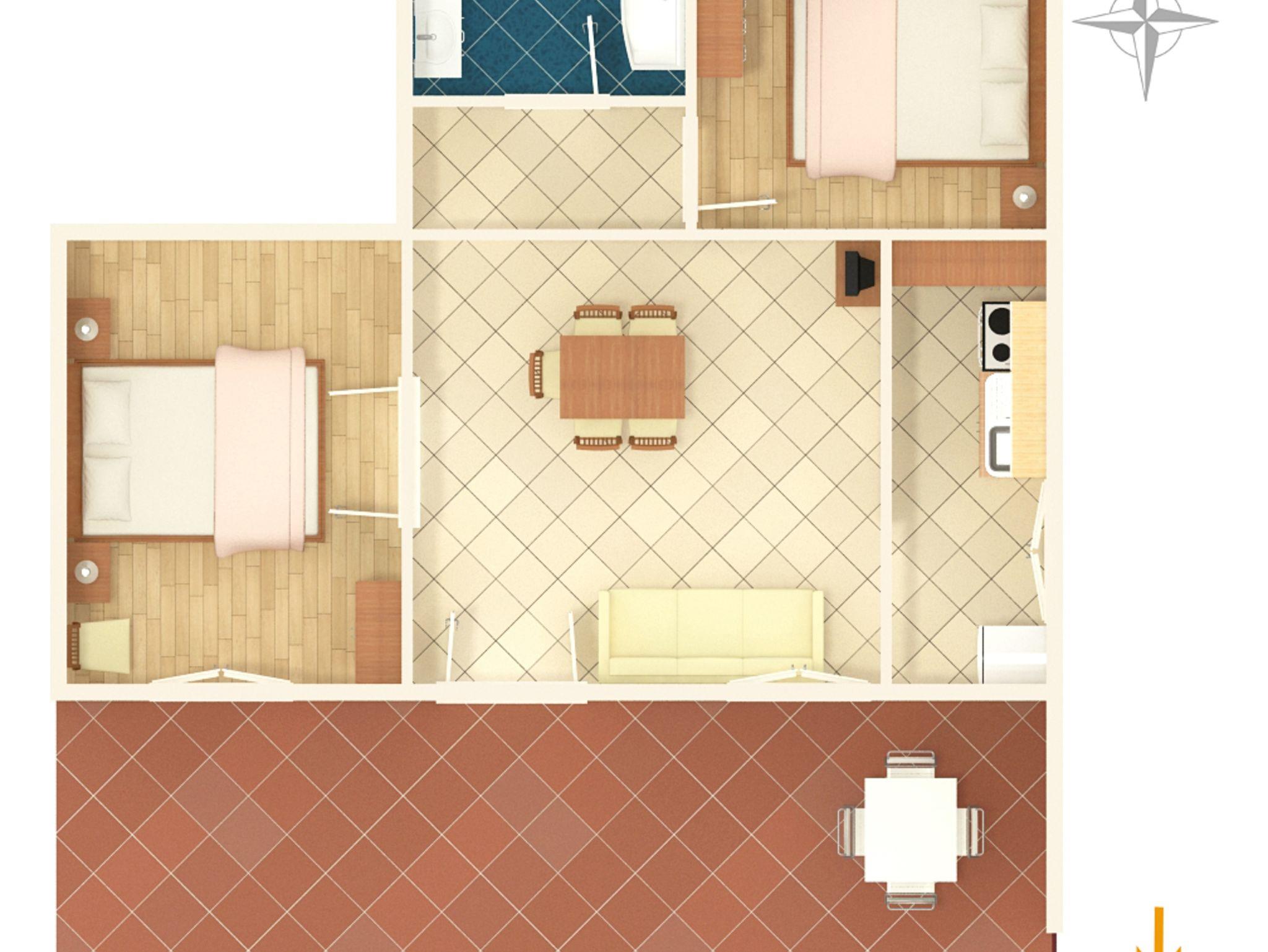 Ferienwohnung bietet Platz für 5 Gäste. Die Betten sind in Schlafzimmern, die es 2 gibt, und in Wohnzimmer, innerhalb einer Gesamtfläche von 48m2, angeordnet. Die Gäste haben eine eigene Terrasse zur Verfügung, auf der sie in warmen Sommernächten genießen können. Das Apartment bietet Meerblick. Es ist erlaubt, Speisen auf dem Gemeinschafts-Grill vorzubereiten. In der Unterkunftseinheit besteht die Möglichkeit des Mitbringens von Haustieren gegen Aufpreis. IM PREIS INBEGRIFFEN: Kurtaxe, Endreinigung, Klimatisierung, Parkplatz, Internet, Kinderbett, Bügeleisen, Föhn. UNVERBINDLICHE ZUSÄTZLICHE KOSTEN: Wäschewaschen (8,00 € Waschen), Haustiere (10,00 € pro Nacht). Die Verfügbarkeit zusätzlicher Dienstleistungen in Ihrem reservierten Termin und die Preise derselben (falls nicht aufgeführt) müssen im Voraus überprüft werden. Zusätzliche Dienstleistungen die in der Zahlungsaufforderung nicht aufgeführt sind werden direkt beim Vermieter bezahlt, angenommen der Gast nutzt auch diese.
