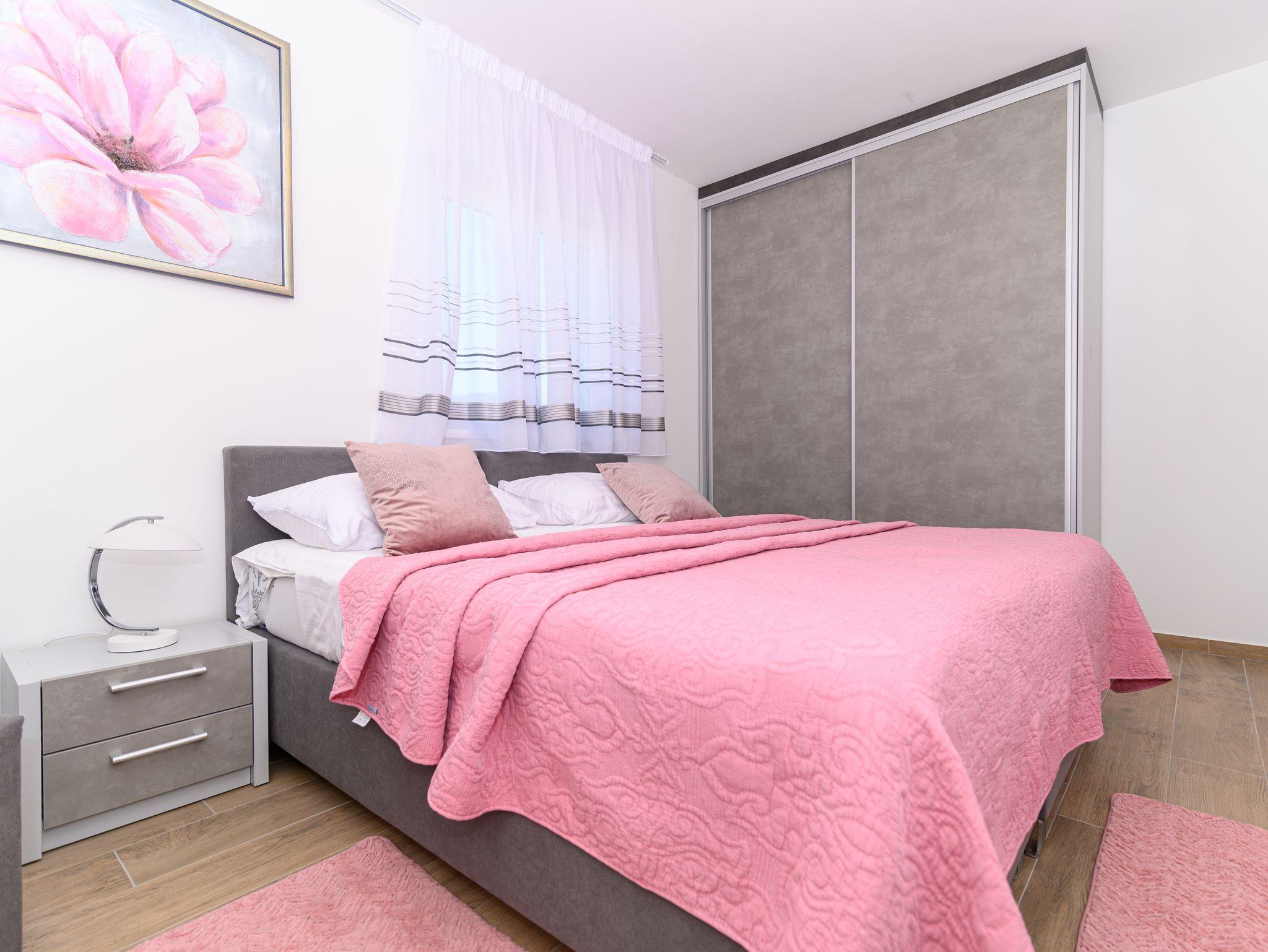 Ferienwohnung bietet Platz für 4 Gäste. Die Betten sind in Schlafzimmern, die es 2 gibt, innerhalb einer Gesamtfläche von 57m2, angeordnet. Die Gäste haben eine eigene Terrasse zur Verfügung, auf der sie in warmen Sommernächten genießen können. Das Apartment bietet Meerblick. IM PREIS INBEGRIFFEN: Kurtaxe, Endreinigung, Klimatisierung, Parkplatz, Garage, Internet, Bügeleisen, Bügelbrett, Föhn. Die Verfügbarkeit zusätzlicher Dienstleistungen in Ihrem reservierten Termin und die Preise derselben (falls nicht aufgeführt) müssen im Voraus überprüft werden. Zusätzliche Dienstleistungen die in der Zahlungsaufforderung nicht aufgeführt sind werden direkt beim Vermieter bezahlt, angenommen der Gast nutzt auch diese. Ermäßigung auf den Grundpreis: Gratistag 14=13 (bei einem Aufenthalt von 14 Tagen oder mehr erhalten Sie einen Gratistag für den Aufenthalt bis 31.12.26).