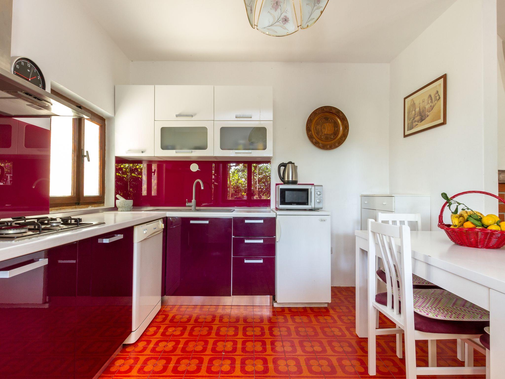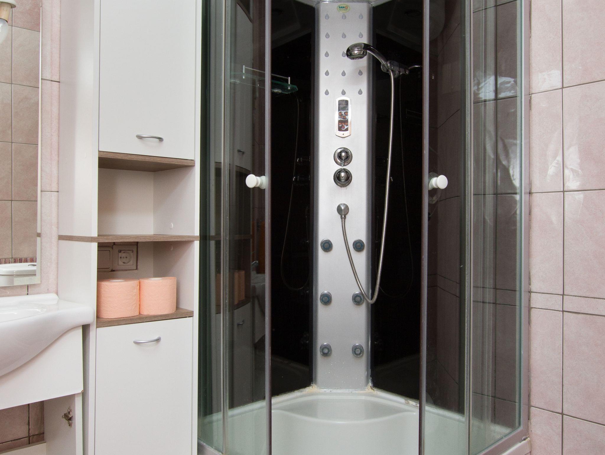 Hof (100m2, Sitzbereich), Parkplatz (Anzahl der Parkplätze: 5, Entfernung vom Objekt: im Hof), Grill: gemeinsam, WiFi Internet, Wäschewaschen, Föhn, Bügeleisen, Bügelbrett, Sonnenschirm, Liegestühle