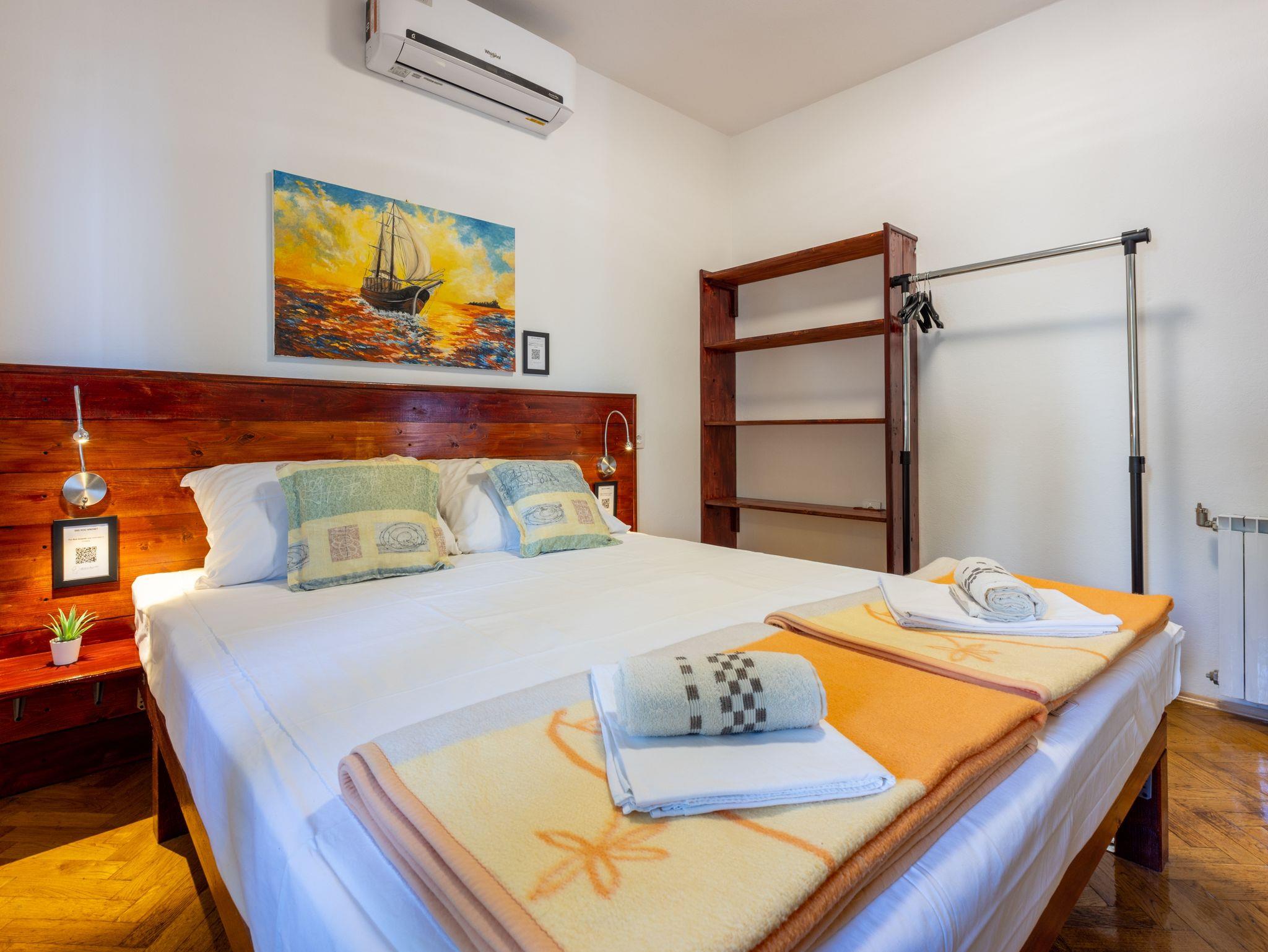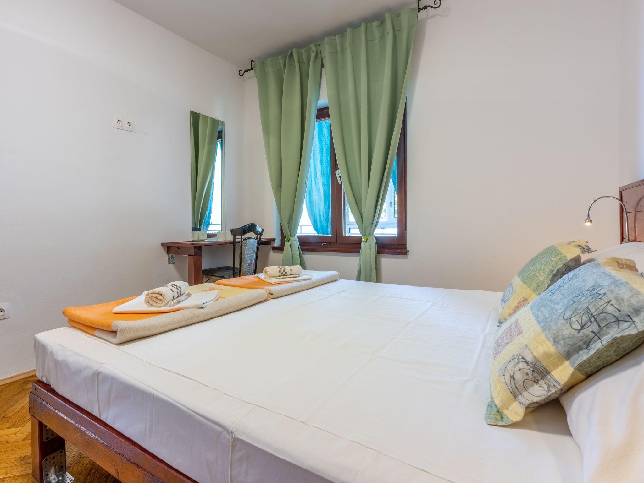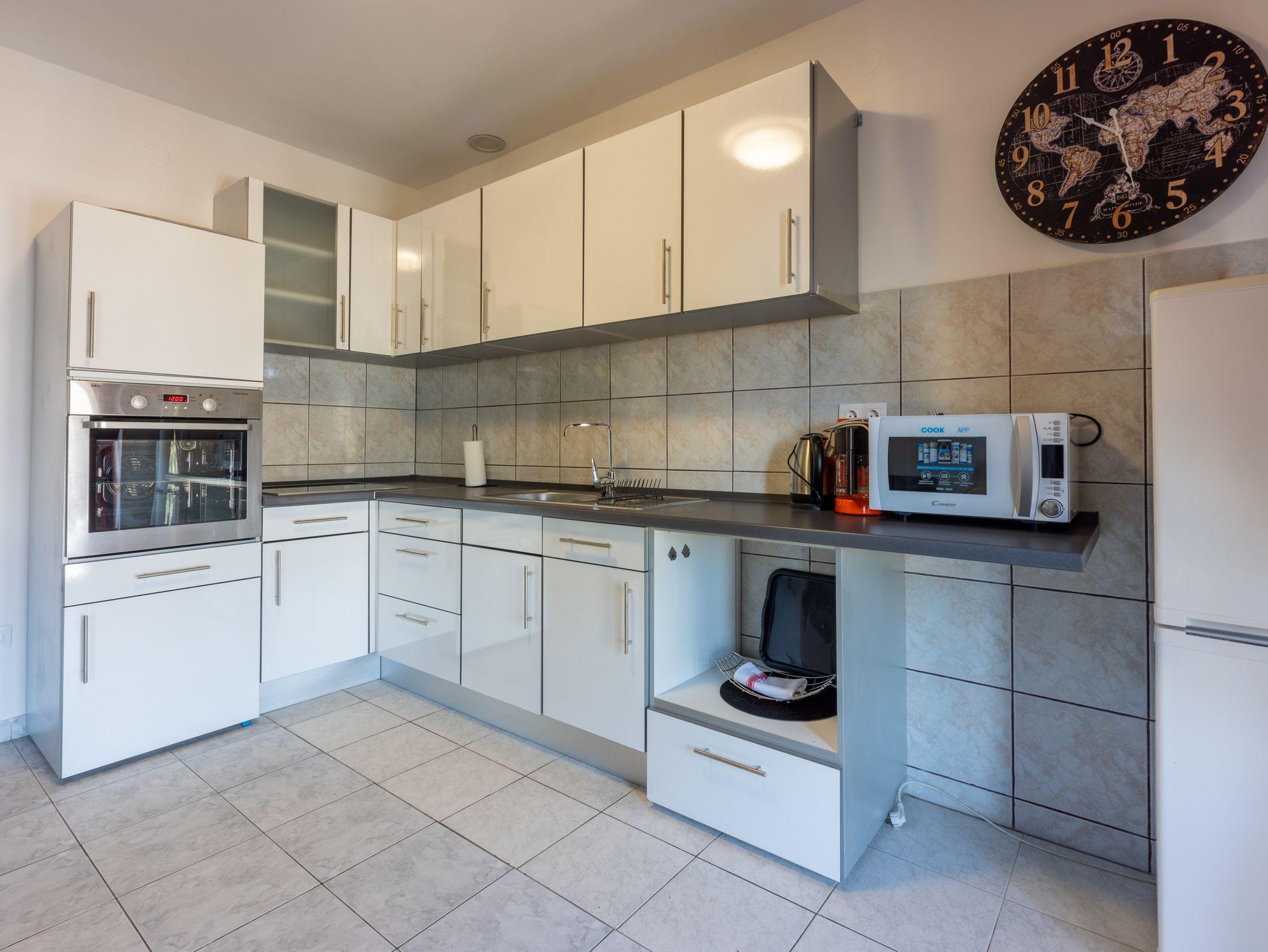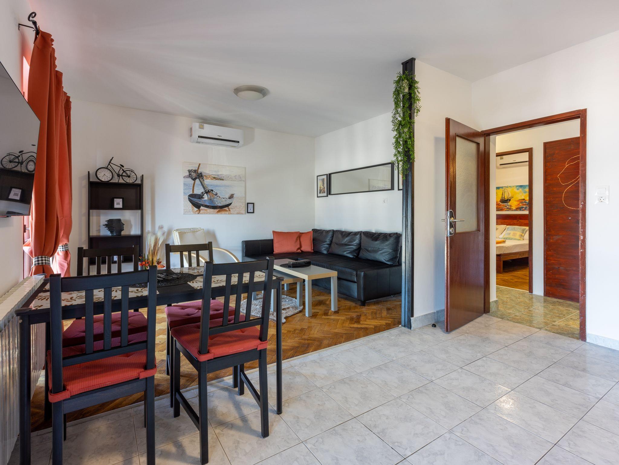 Ferienwohnung bietet Platz für 3 Gäste. Die Betten sind in Schlafzimmern, die es 1 gibt, und in Wohnzimmer, innerhalb einer Gesamtfläche von 44m2, angeordnet. Die Gäste haben einen eigenen Balkon zur Verfügung, auf der sie in warmen Sommernächten genießen können. Das Apartment bietet Meerblick. Es ist erlaubt, Speisen auf dem Gemeinschafts-Grill vorzubereiten. IM PREIS INBEGRIFFEN: Kurtaxe, Endreinigung, Klimatisierung, Zentralheizung, Parkplatz, Internet. VERBINDLICHE ZUSÄTZLICHE KOSTEN: Aufzahlung für Kurzaufenthalte (prozentualer Zuschlag pro Nächtigungsanzahl: 30% - 1, 20% - 2, 10% - 3). Die Verfügbarkeit zusätzlicher Dienstleistungen in Ihrem reservierten Termin und die Preise derselben (falls nicht aufgeführt) müssen im Voraus überprüft werden. Zusätzliche Dienstleistungen die in der Zahlungsaufforderung nicht aufgeführt sind werden direkt beim Vermieter bezahlt, angenommen der Gast nutzt auch diese. Ermäßigung auf den Grundpreis: Gratistag 14=13 (bei einem Aufenthalt von 14 Tagen oder mehr erhalten Sie einen Gratistag für den Aufenthalt bis 31.12.26).