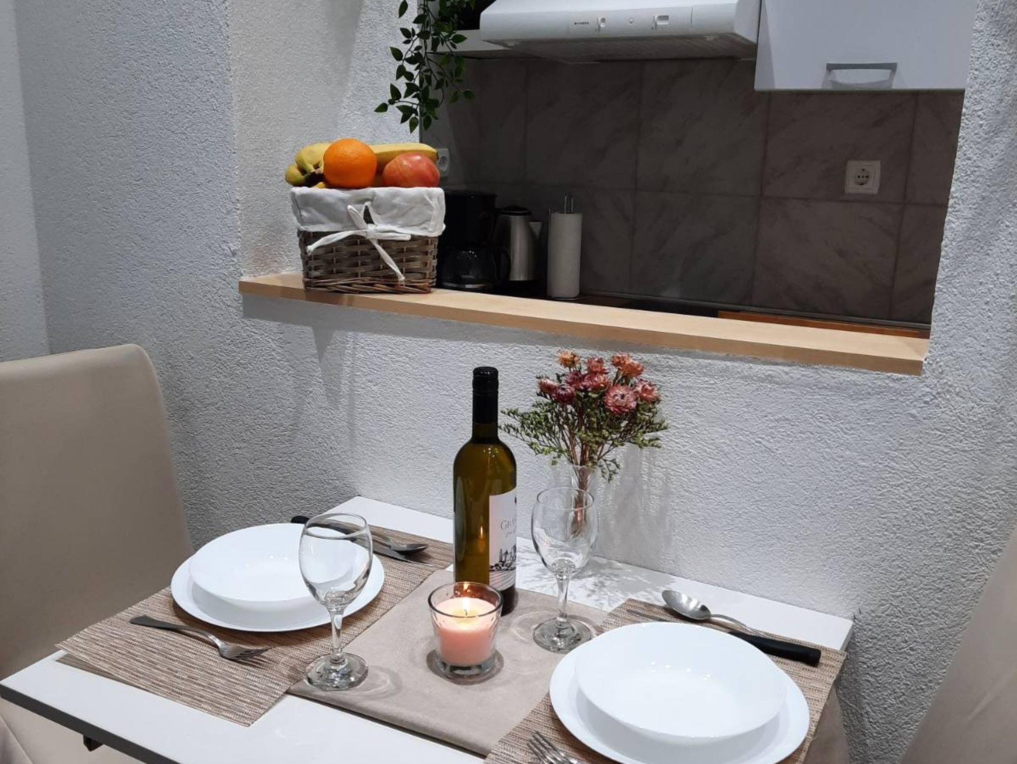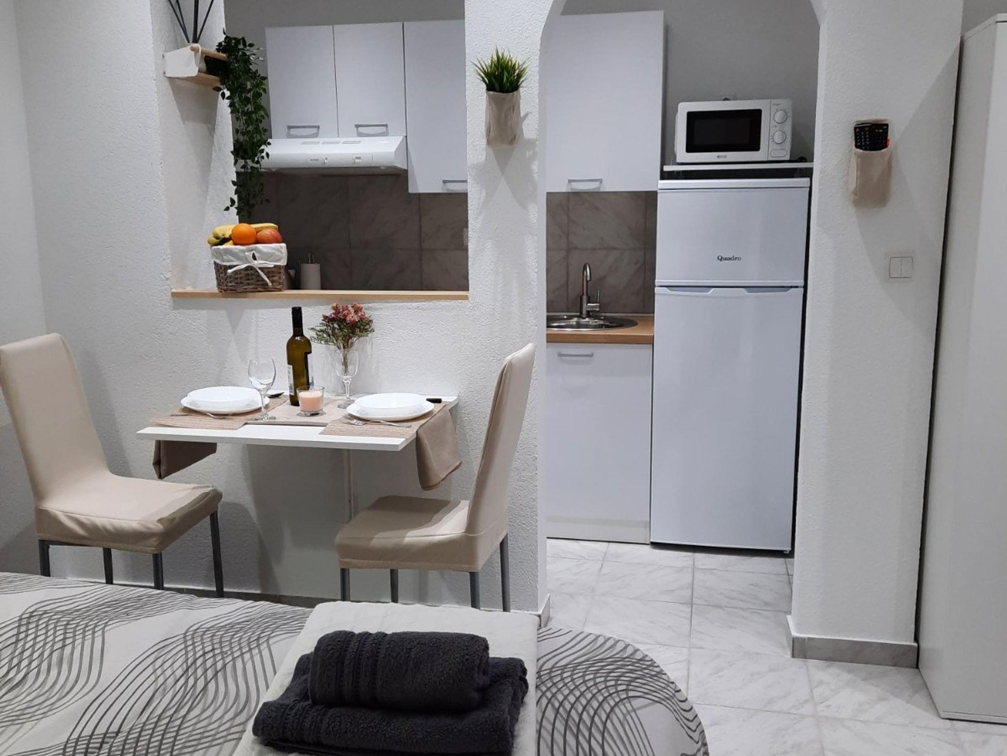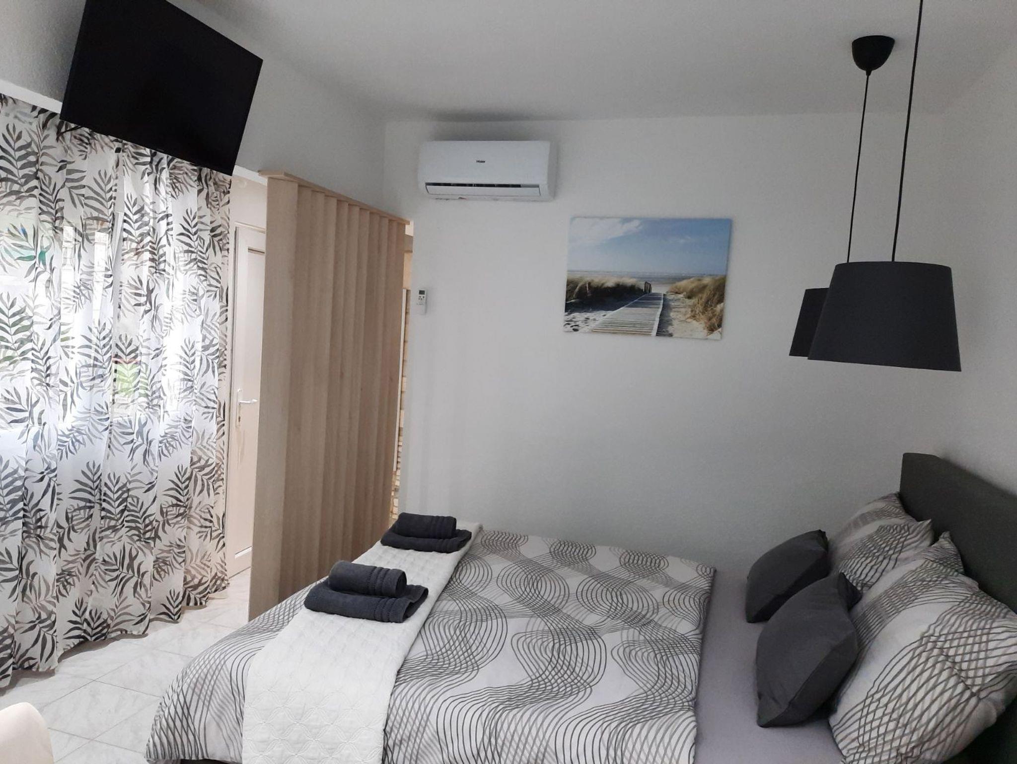 Studio bietet Platz für 2 Gäste. Die Betten sind in Schlafzimmern, die es 1 gibt, innerhalb einer Gesamtfläche von 21m2, angeordnet. Die reservierte Unterkunftseinheit hat keinen Balkon und keine Terrasse. IM PREIS INBEGRIFFEN: Kurtaxe, Endreinigung, Klimatisierung, Parkplatz, Garage, Internet, Kinderbett. VERBINDLICHE ZUSÄTZLICHE KOSTEN: Aufzahlung für Kurzaufenthalte (prozentualer Zuschlag pro Nächtigungsanzahl: 30% - 1, 20% - 2, 10% - 3). Die Verfügbarkeit zusätzlicher Dienstleistungen in Ihrem reservierten Termin und die Preise derselben (falls nicht aufgeführt) müssen im Voraus überprüft werden. Zusätzliche Dienstleistungen die in der Zahlungsaufforderung nicht aufgeführt sind werden direkt beim Vermieter bezahlt, angenommen der Gast nutzt auch diese.
