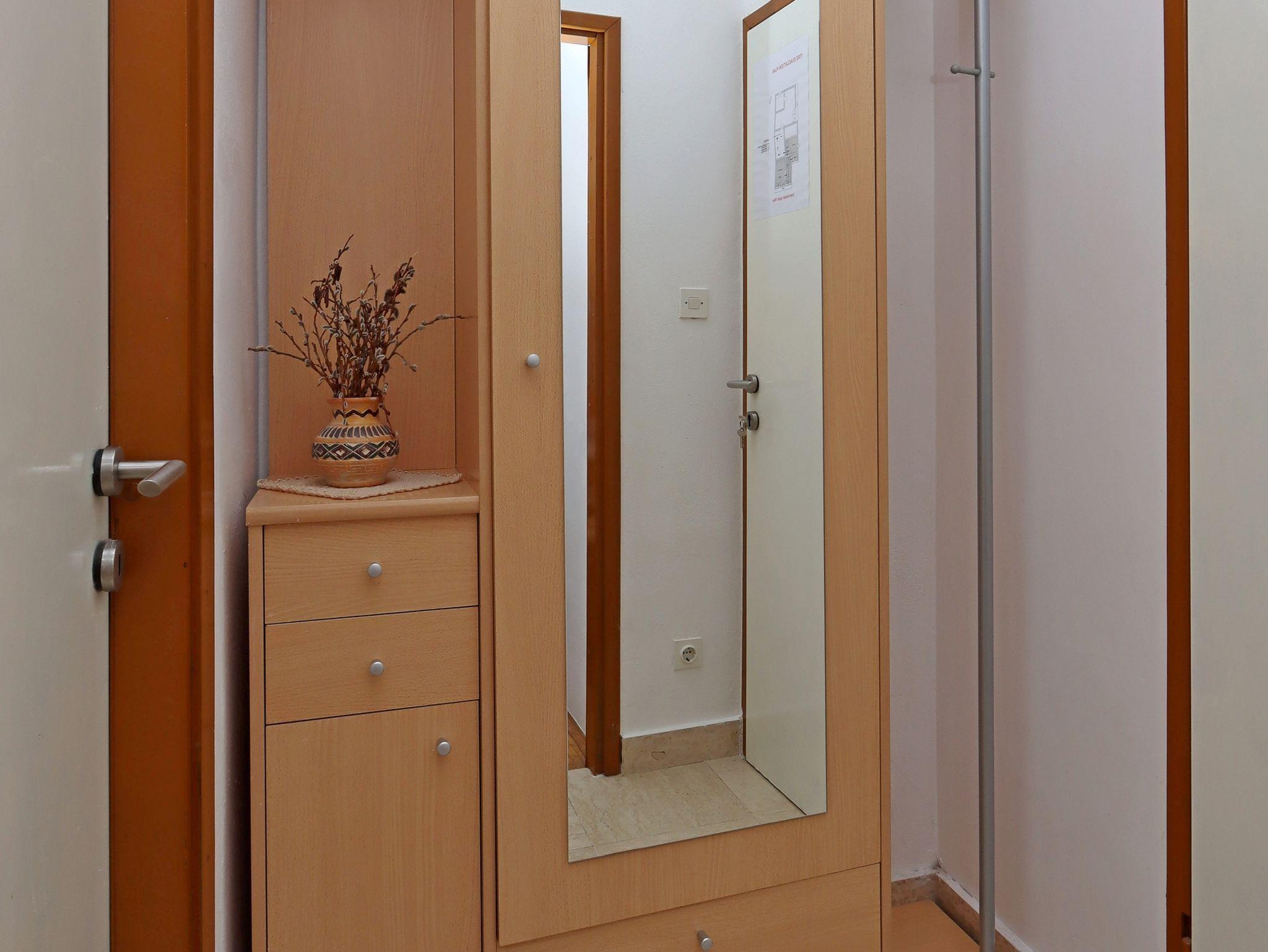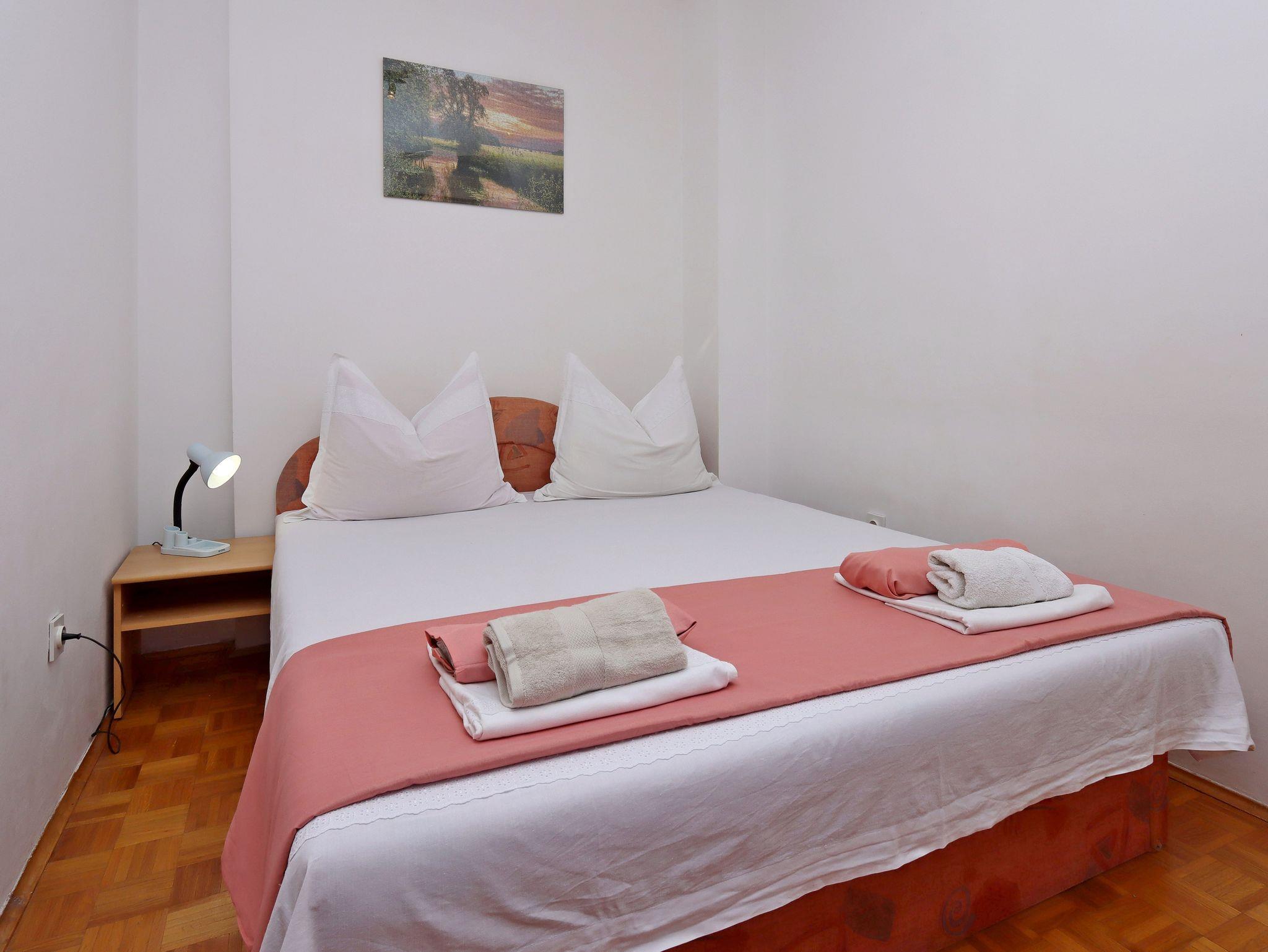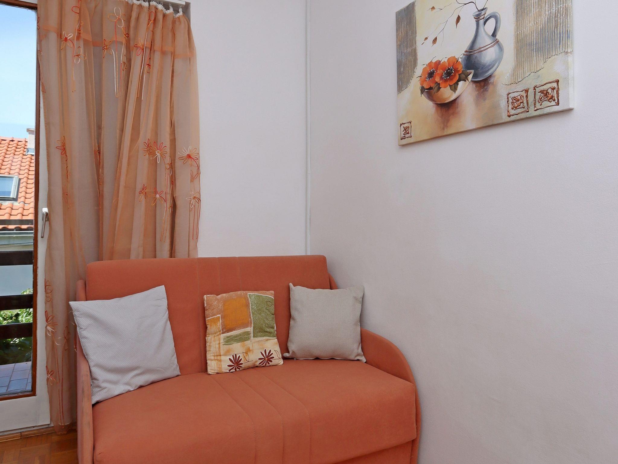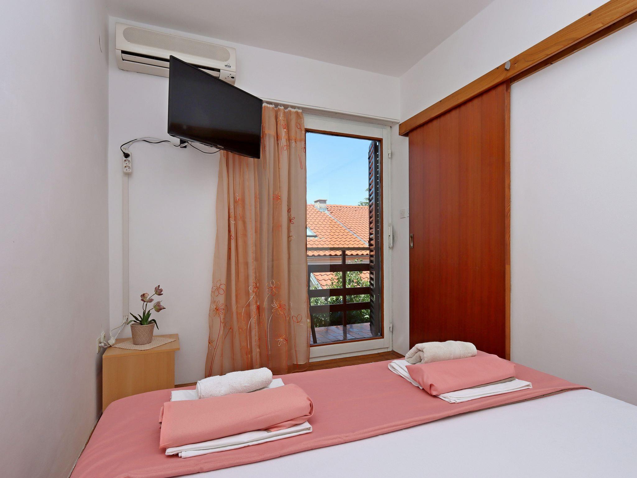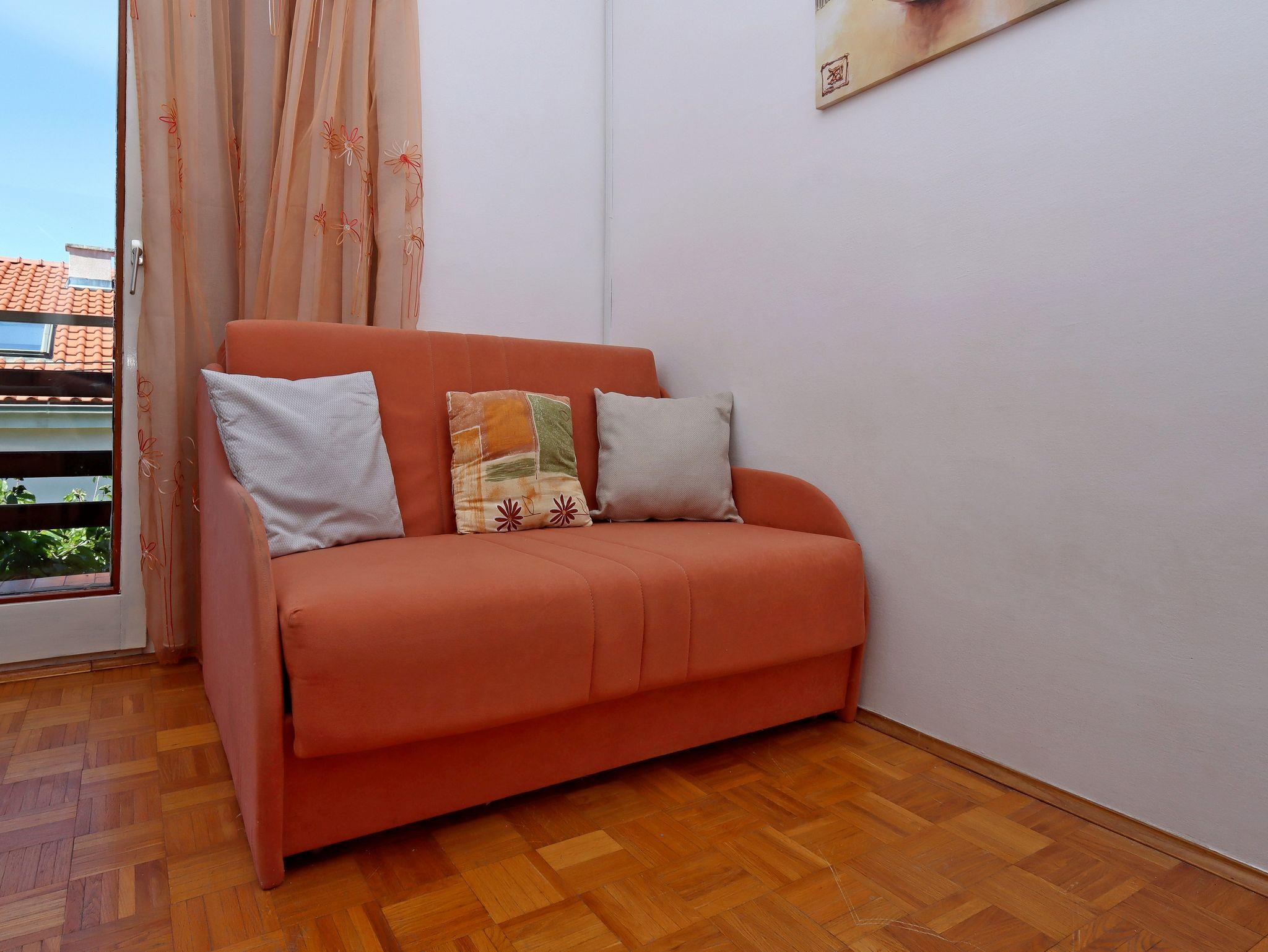 Ferienwohnung bietet Platz für 4 Gäste. Die Betten sind in Schlafzimmern, die es 1 gibt, und in Wohnzimmer, innerhalb einer Gesamtfläche von 33m2, angeordnet. Die Gäste haben einen eigenen Balkon zur Verfügung, auf der sie in warmen Sommernächten genießen können. Das Apartment bietet Meerblick. In der Unterkunftseinheit besteht die Möglichkeit des Mitbringens von Haustieren gegen Aufpreis. IM PREIS INBEGRIFFEN: Kurtaxe, Endreinigung, Parkplatz, Internet, Bügeleisen, Bügelbrett, Föhn. VERBINDLICHE ZUSÄTZLICHE KOSTEN: Aufzahlung für Kurzaufenthalte (prozentualer Zuschlag pro Nächtigungsanzahl: 30% - 1, 20% - 2, 10% - 3). UNVERBINDLICHE ZUSÄTZLICHE KOSTEN: Klimatisierung (5,00 € pro Nacht), Haustiere (10,00 € pro Nacht). Die Verfügbarkeit zusätzlicher Dienstleistungen in Ihrem reservierten Termin und die Preise derselben (falls nicht aufgeführt) müssen im Voraus überprüft werden. Zusätzliche Dienstleistungen die in der Zahlungsaufforderung nicht aufgeführt sind werden direkt beim Vermieter bezahlt, angenommen der Gast nutzt auch diese.