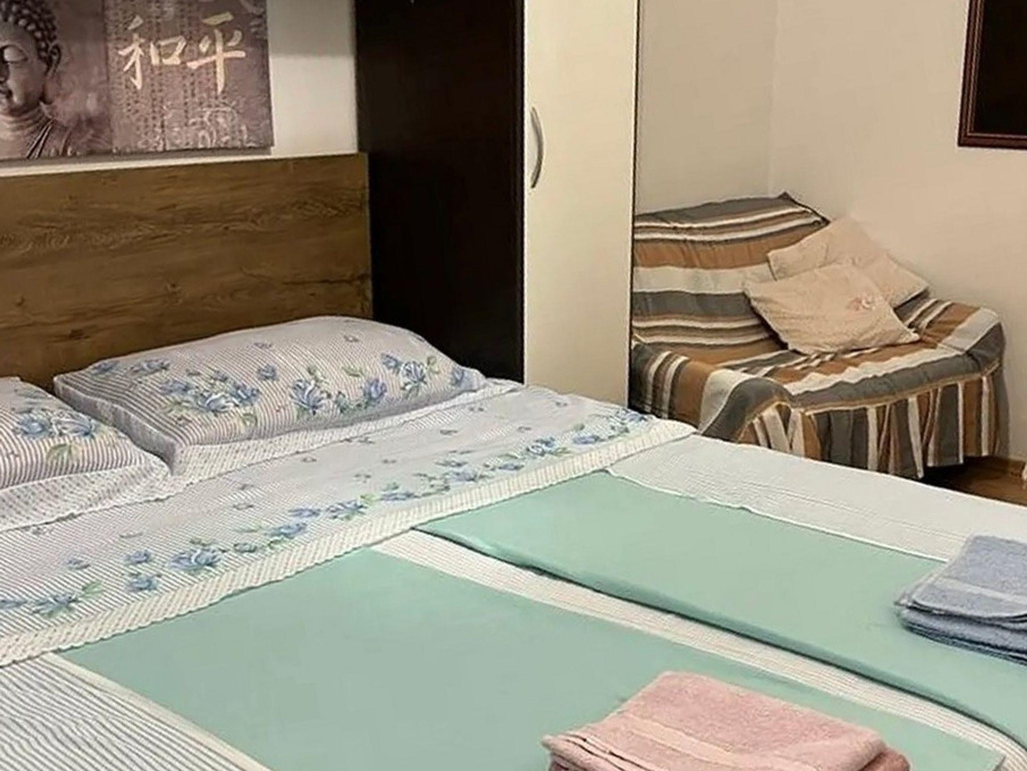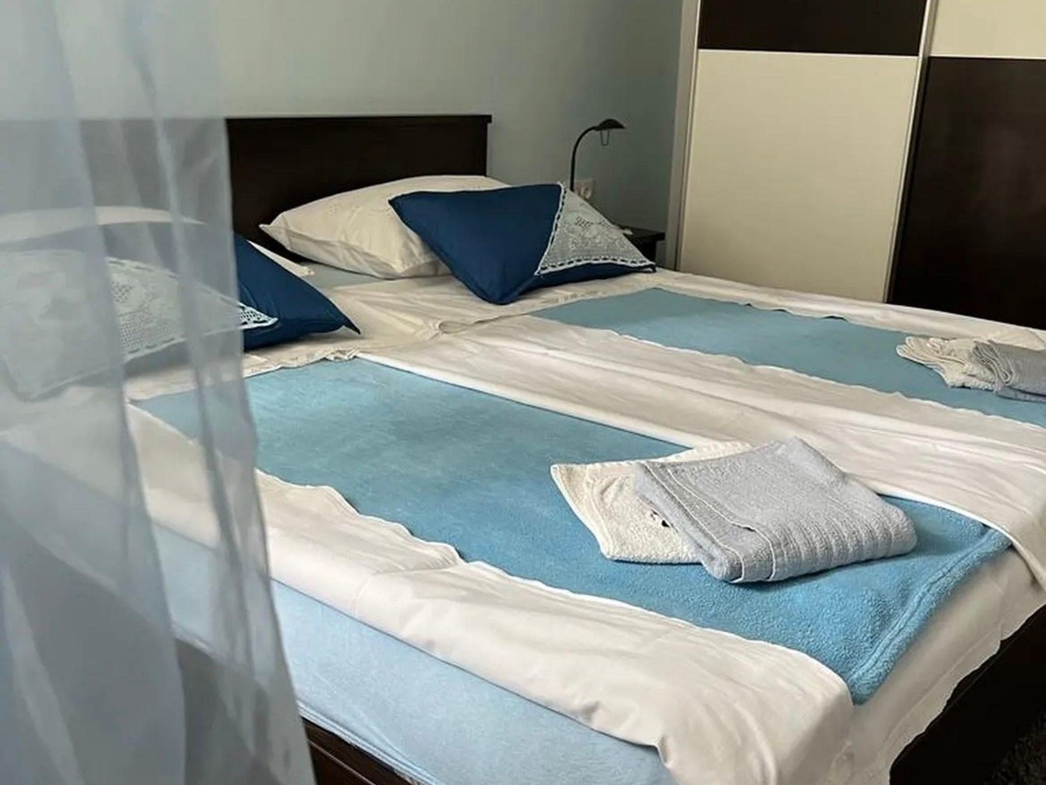 Ferienwohnung bietet Platz für 4 Gäste. Die Betten sind in Schlafzimmern, die es 2 gibt, innerhalb einer Gesamtfläche von 37m2, angeordnet. Die Gäste haben eine eigene Terrasse zur Verfügung, auf der sie in warmen Sommernächten genießen können. IM PREIS INBEGRIFFEN: Kurtaxe, Endreinigung, Klimatisierung, Parkplatz, Internet, Bügeleisen, Bügelbrett, Föhn. VERBINDLICHE ZUSÄTZLICHE KOSTEN: Aufzahlung für Kurzaufenthalte (prozentualer Zuschlag pro Nächtigungsanzahl: 30% - 1, 20% - 2, 10% - 3). Die Verfügbarkeit zusätzlicher Dienstleistungen in Ihrem reservierten Termin und die Preise derselben (falls nicht aufgeführt) müssen im Voraus überprüft werden. Zusätzliche Dienstleistungen die in der Zahlungsaufforderung nicht aufgeführt sind werden direkt beim Vermieter bezahlt, angenommen der Gast nutzt auch diese.
