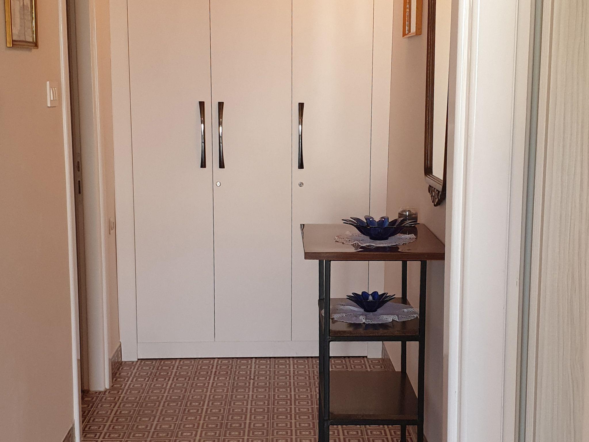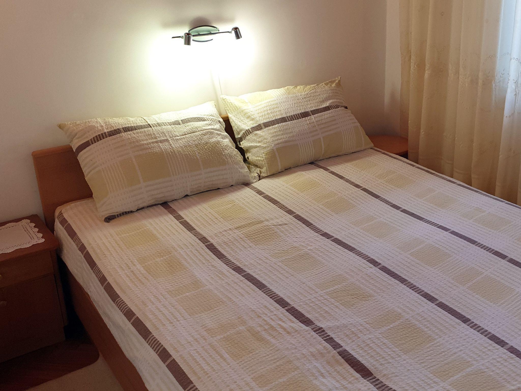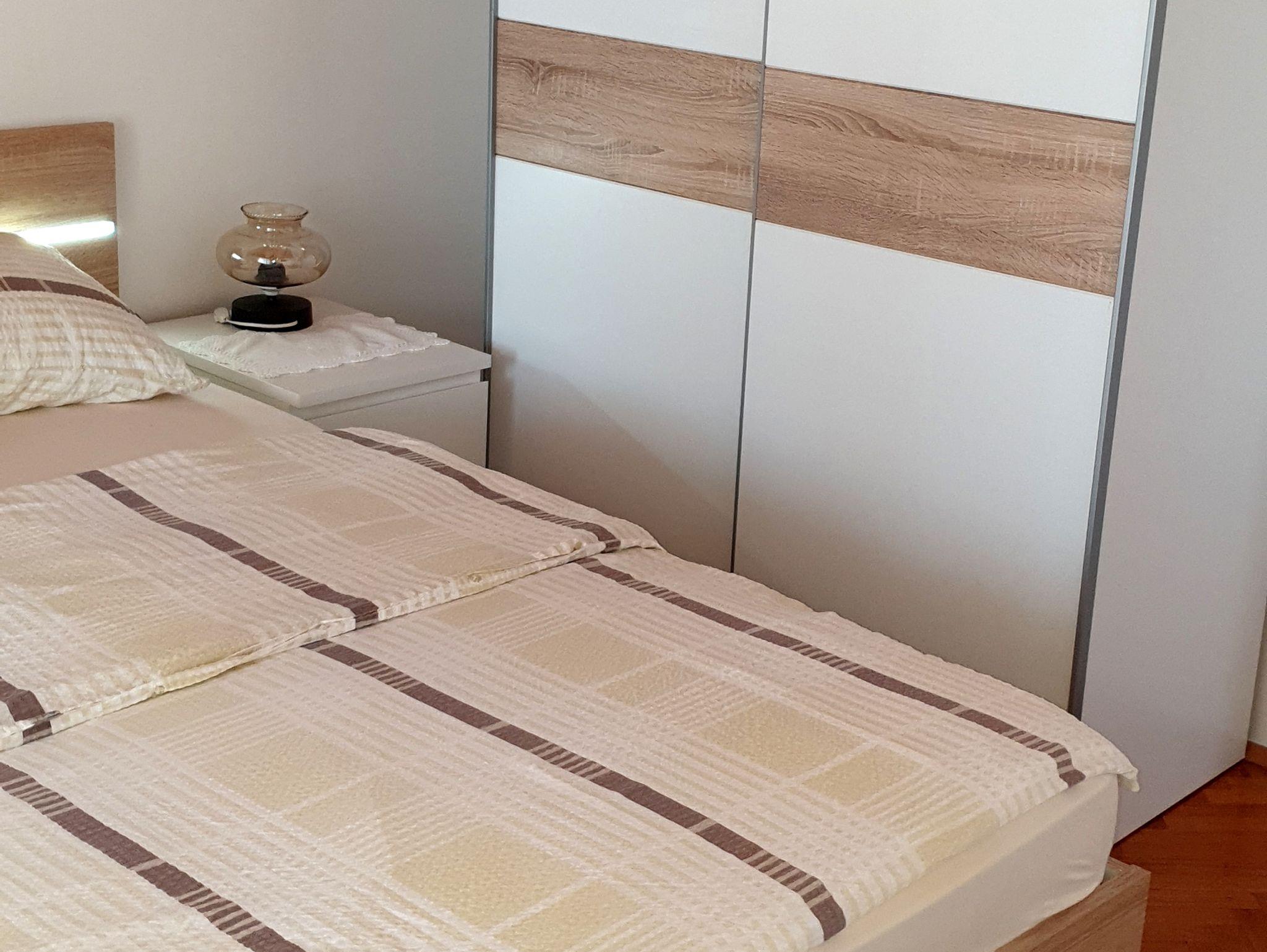 Ferienwohnung bietet Platz für 6 Gäste. Die Betten sind in Schlafzimmern, die es 2 gibt, und in Wohnzimmer, innerhalb einer Gesamtfläche von 52m2, angeordnet. Die Gäste haben eine eigene Terrasse zur Verfügung, auf der sie in warmen Sommernächten genießen können. Das Apartment bietet Meerblick. Es ist erlaubt, Speisen auf dem Gemeinschafts-Grill vorzubereiten. IM PREIS INBEGRIFFEN: Kurtaxe, Endreinigung, Parkplatz, Internet. VERBINDLICHE ZUSÄTZLICHE KOSTEN: Aufzahlung für Kurzaufenthalte (prozentualer Zuschlag pro Nächtigungsanzahl: 30% - 1, 20% - 2, 10% - 3). UNVERBINDLICHE ZUSÄTZLICHE KOSTEN: Klimatisierung (5,00 € pro Nacht), Wäschewaschen (5,00 € Waschen). Die Verfügbarkeit zusätzlicher Dienstleistungen in Ihrem reservierten Termin und die Preise derselben (falls nicht aufgeführt) müssen im Voraus überprüft werden. Zusätzliche Dienstleistungen die in der Zahlungsaufforderung nicht aufgeführt sind werden direkt beim Vermieter bezahlt, angenommen der Gast nutzt auch diese. Ermäßigung auf den Grundpreis: Gratistag 14=13 (bei einem Aufenthalt von 14 Tagen oder mehr erhalten Sie einen Gratistag für den Aufenthalt bis 31.12.26).