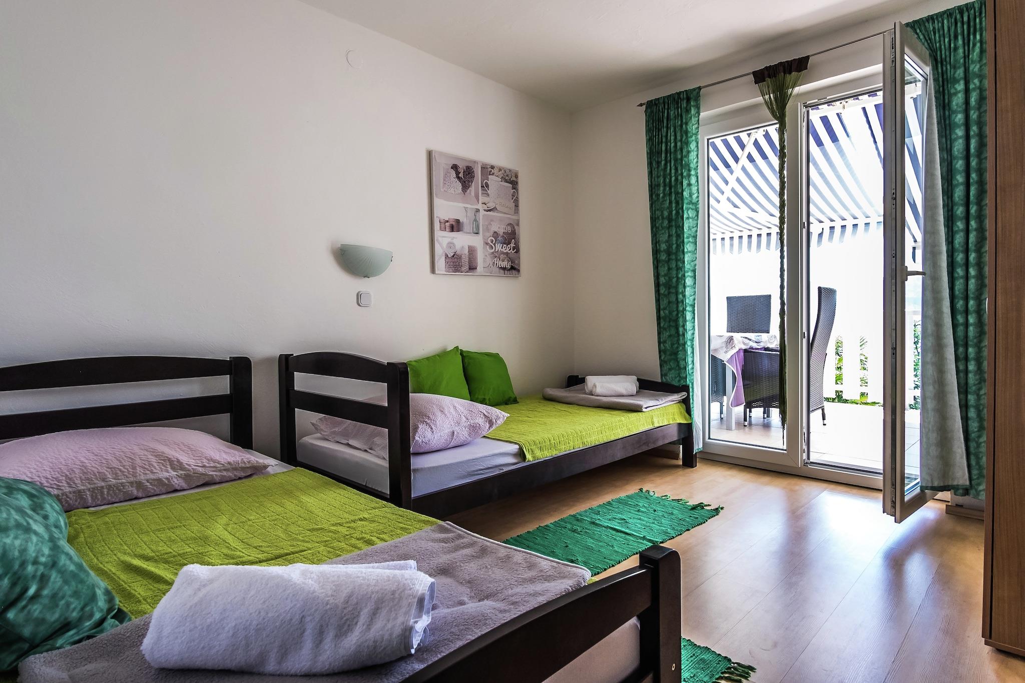 Direkt am Meer gelegen, bietet dieses Apartment für sechs Gäste die perfekte Mischung aus Küstenentspannung und modernem Komfort. Mit kostenlosem WLAN, einem gemeinschaftlich genutzten, eingezäunten Garten und großzügigen Terrassen genießen Gäste einen ruhigen Rückzugsort. Das Haus liegt 1 km vom Zentrum von Seline entfernt. Restaurants erreichen Sie nach nur 100 Metern, sodass Sie die lokalen Spezialitäten bequem genießen können. Das Apartment verfügt über einen geräumigen Wohn- und Essbereich mit Flachbild-Sat-TV, eine voll ausgestattete Küche und drei gemütliche Schlafzimmer, eines mit Kingsize-Bett und zwei mit Einzelbetten, jeweils mit Zugang zu einer 30 m² großen Terrasse. Gäste können im Gemeinschaftsgarten entspannen, im Freien am Grill speisen oder Annehmlichkeiten wie Waschmaschine, Parkplatz und Klimaanlage nutzen. Der nahe gelegene Nationalpark Paklenica bietet atemberaubende Bergblicke und Wanderwege. Besuchen Sie den Strand Vecka Kula, einen malerischen Ort zum Entspannen. Das Restaurant Marko serviert authentische kroatische Gerichte, während das Restaurant Ivan frische Meeresfrüchte und mediterrane Spezialitäten anbietet. Ob Abenteuer oder Ruhe – dieses Refugium am Meer ist der perfekte Rückzugsort.