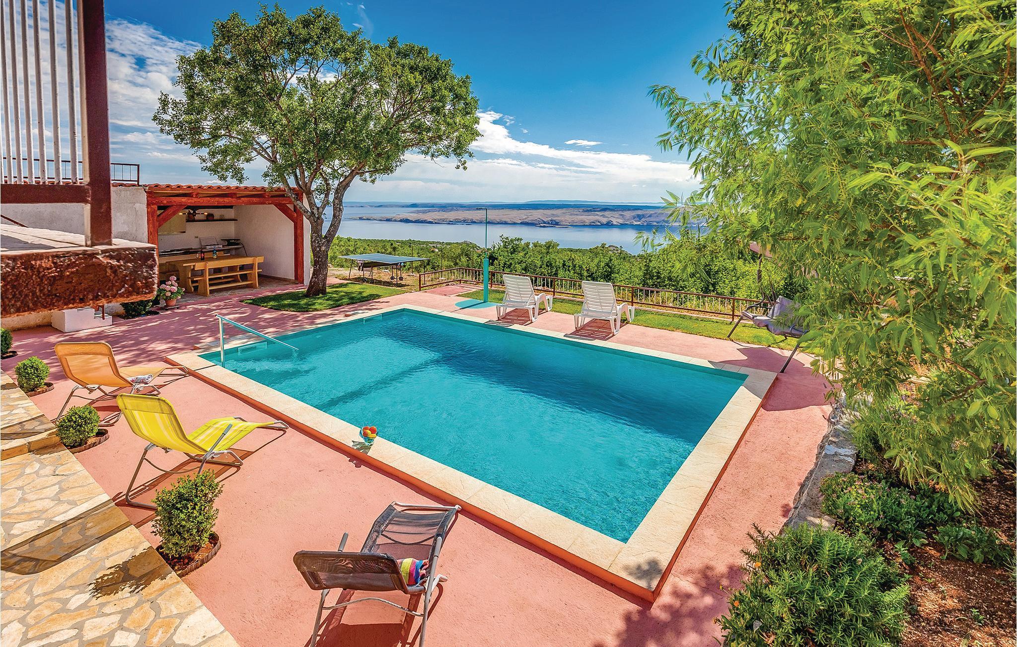 Am Berghang des Velebits in unmittelbarer Nähe des Nationalparks „Sjeverni (nördlicher)Velebit“ liegt dieses Ferienhaus in ca. 250 m Meereshöhe. Es bietet Ihnen Ausblick auf das Meer und die Inseln Rab und Pag. Genießen Sie die unberührte Natur und die saubere Luft. Das Ferienhaus ist funktionell eingerichtet und die Etagen sind mit einer Außentreppe verbunden. Erfrischen Sie sich im Swimmingpool, oder entdecken Sie zahlreiche versteckte Badestrände mit kristallklarem sauberem Meer, nur ca. 10 Fahrminuten entfernt. Unternehmen Sie mit der Fähre Ausflüge auf die Insel Rab und Pag oder zu den Nationalparks Paklenica und Plitwitzer Seen.