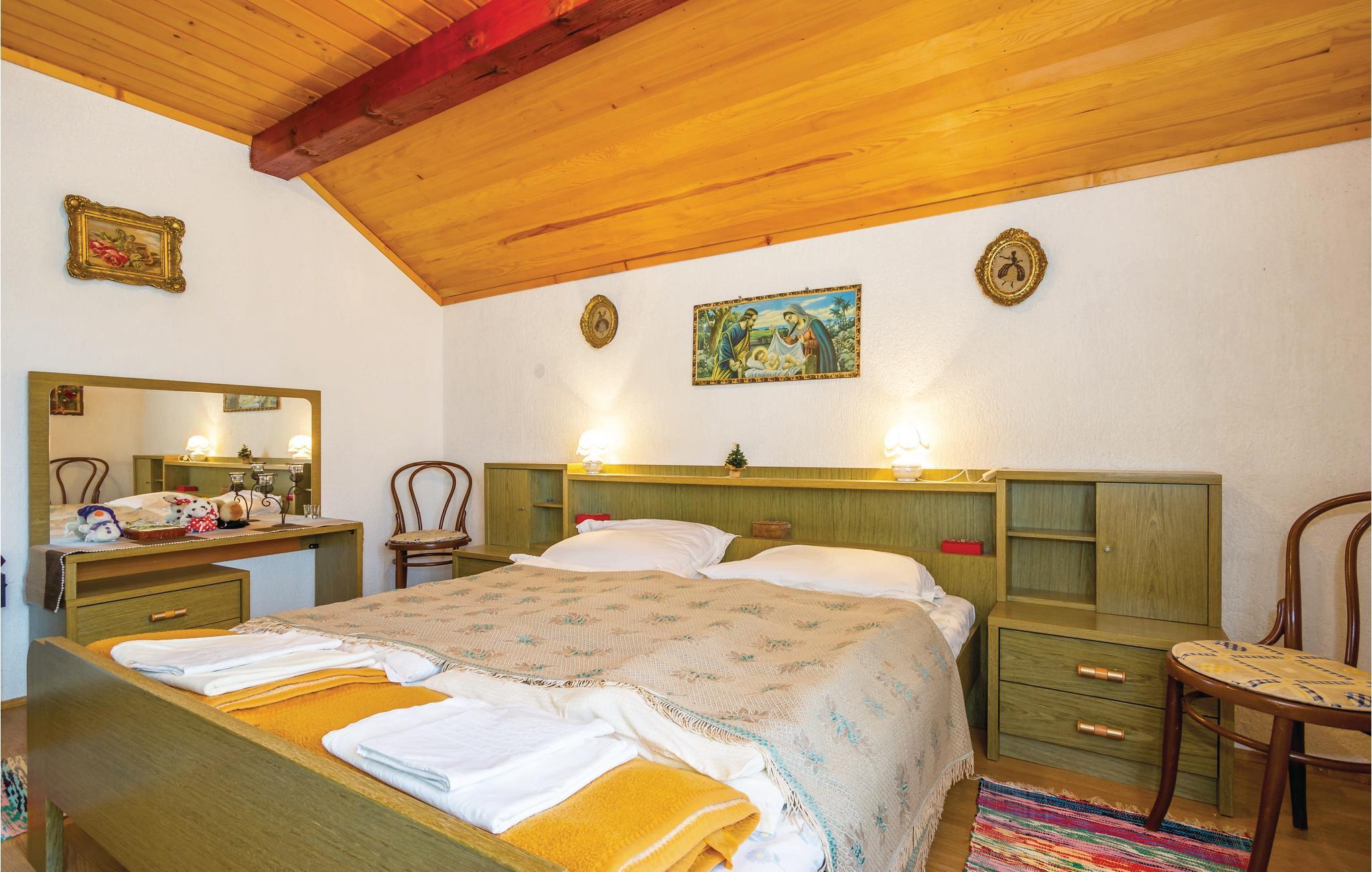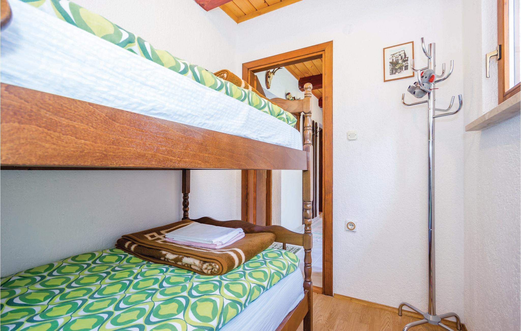 Nicht weit von Senj liegt der kleine Ort Zukalj mit diesem kleinen Haus. Im Erdgeschoss ist eine Garage mit Bodenbearbeitungsmaschinen, im Obergeschoss liegt die einfach eingerichtete Ferienwohnung. Hier können Sie ungestört in einer ruhigen Natur entspannen. Zukalj liegt ca. 1000 m über den Meeresspiegel und ist ideal für einen Urlaub während der heißen Sommertage. Wenn Sie das Verlangen nach gesellschaftlichen Ereignissen haben, finden Sie diese im 20 km entfernten Senj. Diese Gegend ist der Eingang zum Nationalpark Nord-Velebit. Vor Ort verläuft ein Radweg, aber auch Wandern und Fotografieren sind hier beliebte Aktivitäten.