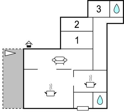 Badezimmer (nr. 1) - WC. Warmes und kaltes Wasser. Dusche