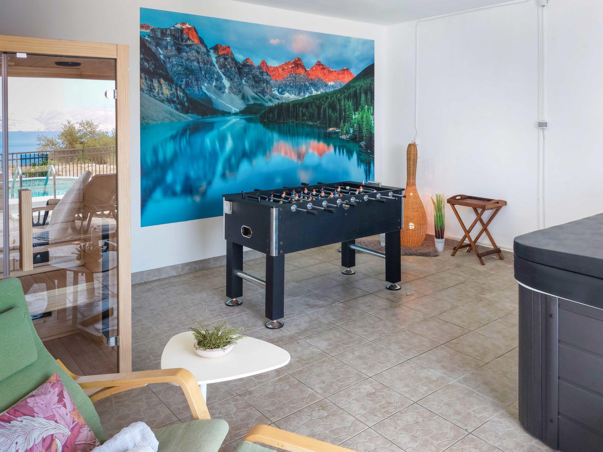 Schönes Einfamilienhaus "Villa Sunset view", auf 3 Stockwerken, Baujahr 2023. 2.3 km vom Zentrum von Senj, sonnige Lage auf einem Hügel, 1.1 km vom Meer, 1.1 km vom Strand, in einer Sackgasse. Zur Alleinbenutzung: Grundstück 760 m2 (eingezäunt) mit Pflanzen, Schwimmbad eckig (8 x 4 m, 140 cm tief, saisonale Verfügbarkeit: 01.Mai. - 30.Okt.). Dusche/WC im Poolbereich, Sprudelbad, Terrasse (70 m2), Gartenmöbel, Grillhaus. Im Hause: Internetzugang, Sauna, Tischfussball, Zentralheizung, Heizung nur verfügbar von 01.Okt. - 01.Mai.. Parkplatz (für 3 Autos) beim Haus auf dem Grundstück. Einkaufsgeschäft 700 m, Supermarkt 2.6 km, Restaurant 2 km, Bar 2 km, Bushaltestelle 2.1 km, Kieselstrand 1.1 km (klein), betonierter Strand 2.3 km. Tennis 2 km, Sportzentrum 2 km. Nahe gelegene Sehenswürdigkeiten: Tvrdava Nehaj 1.2 km. Jugendgruppen nur auf Anfrage.
